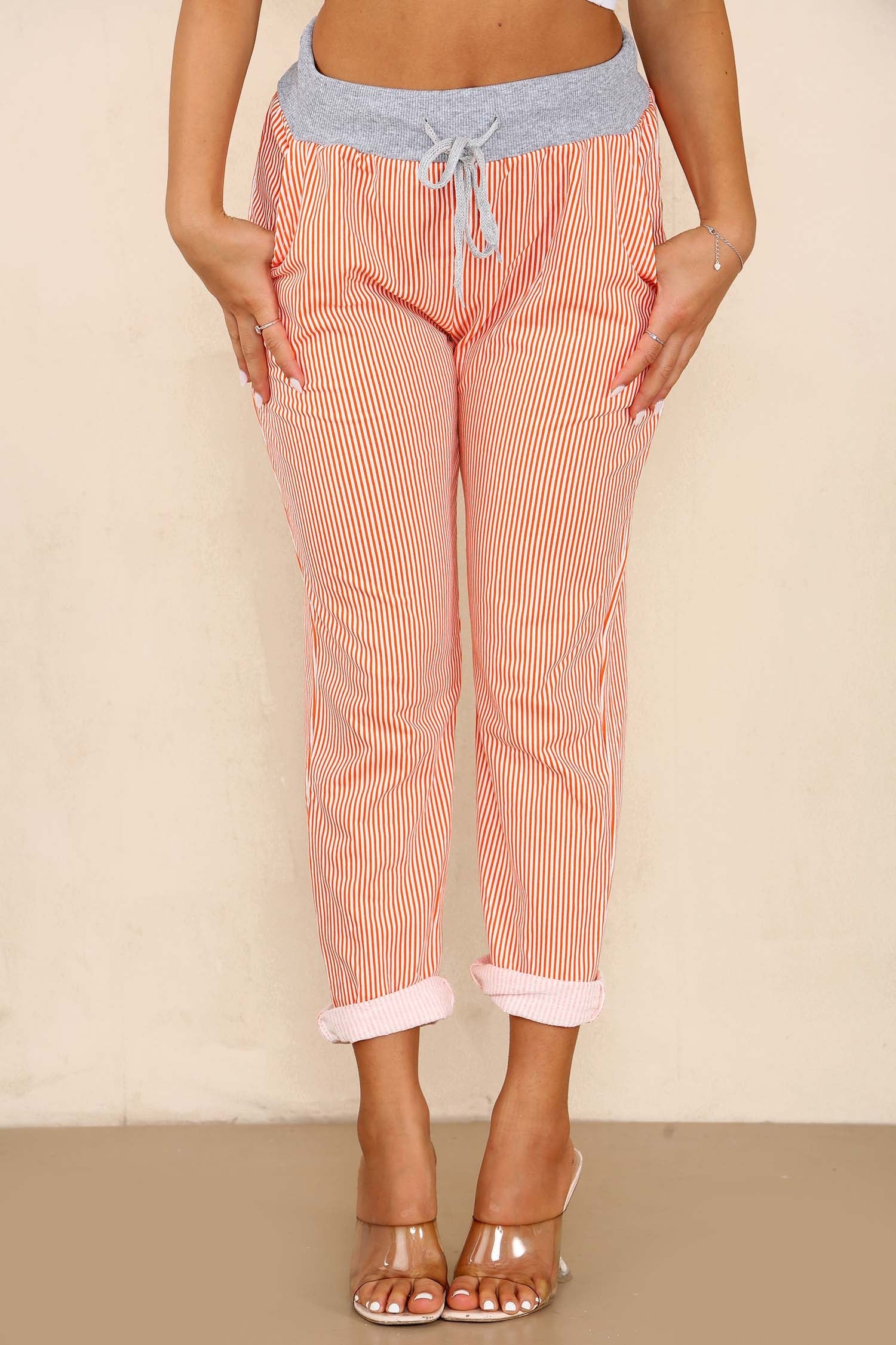Plus Size Italian Thin Stripes Print Drawstring Cotton Joggers