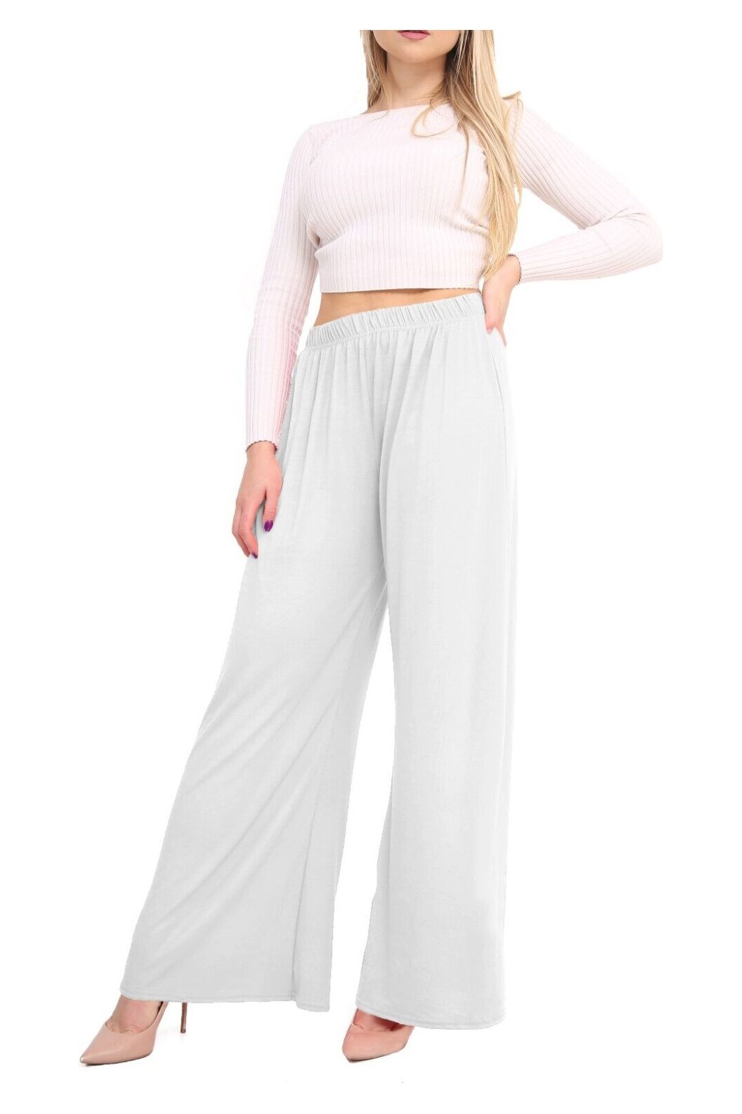 Plus Size Wide Leg Flared Plain Palazzo Trouser