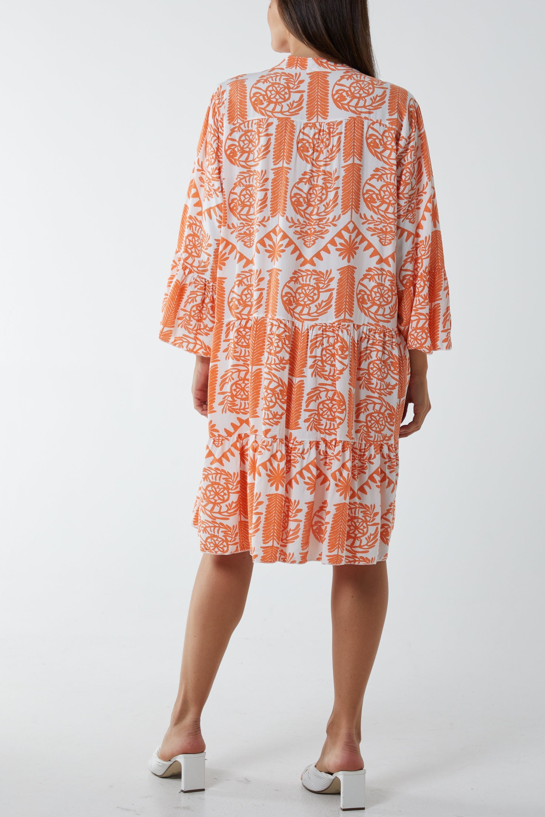 Tile Print Elasticated Neck Midi Dress