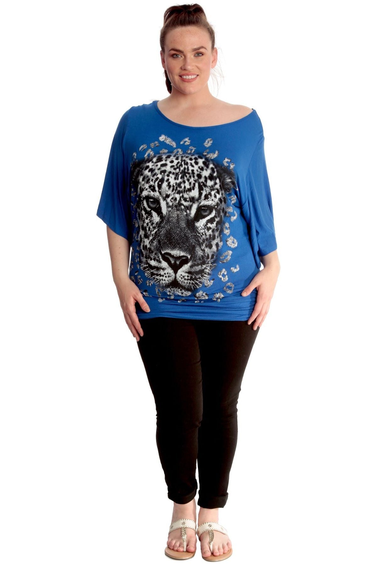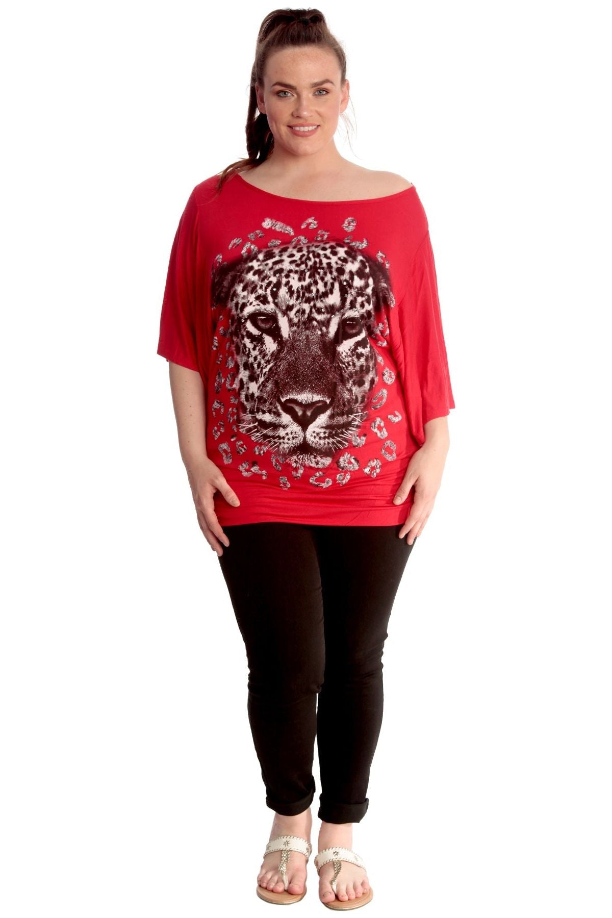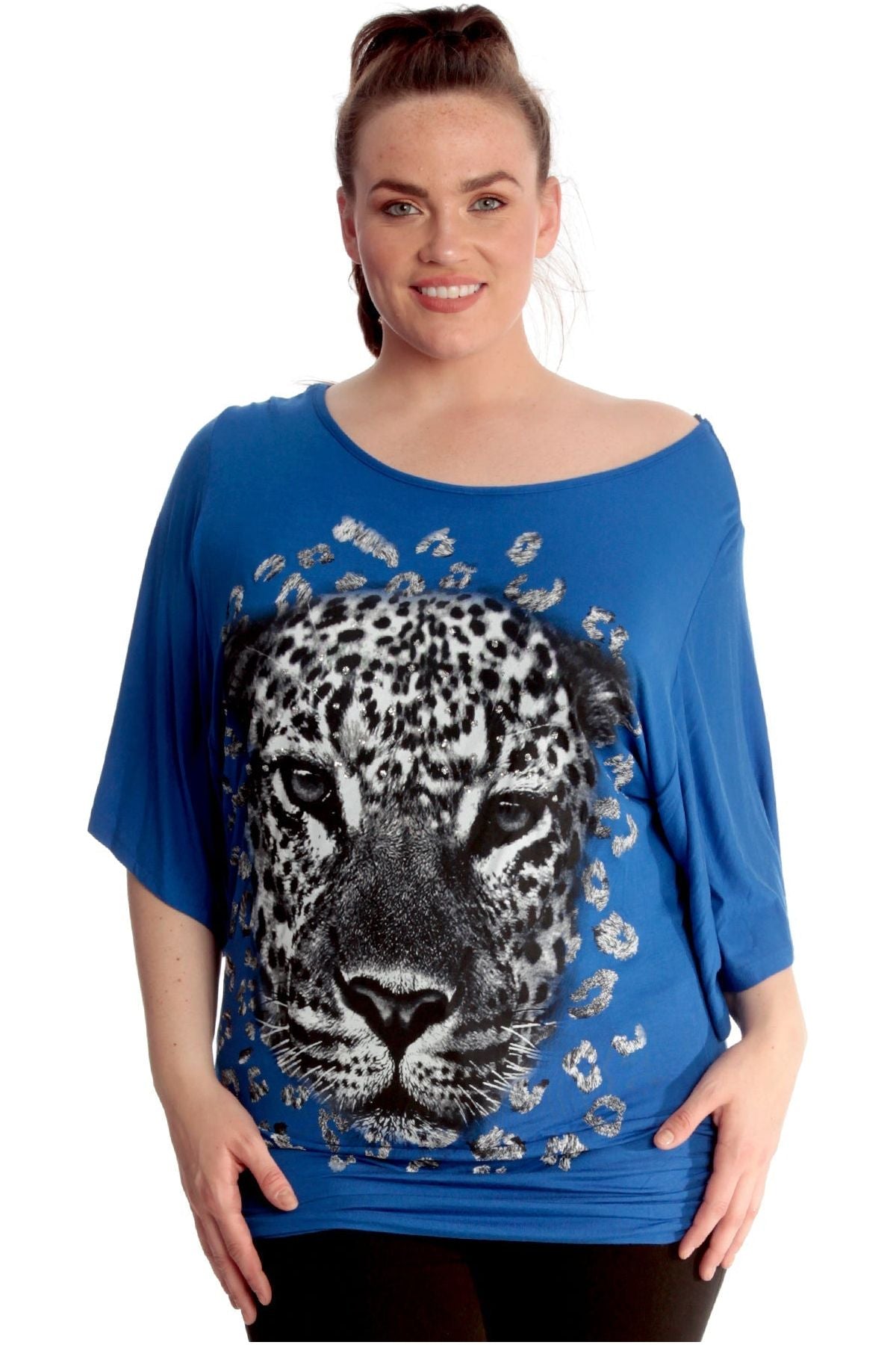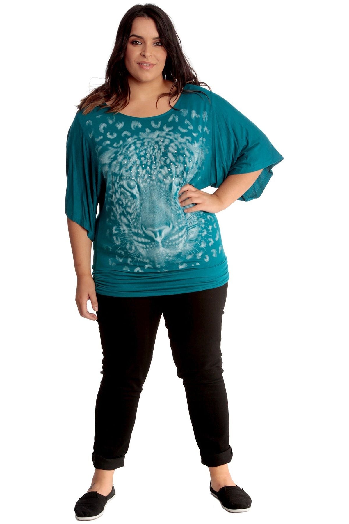 Tiger Print Glitter Batwing Top