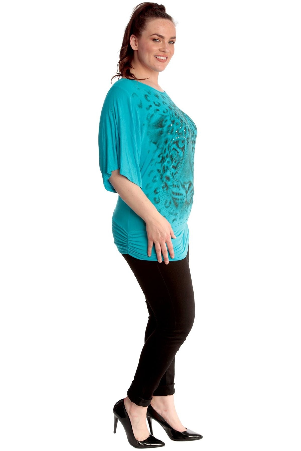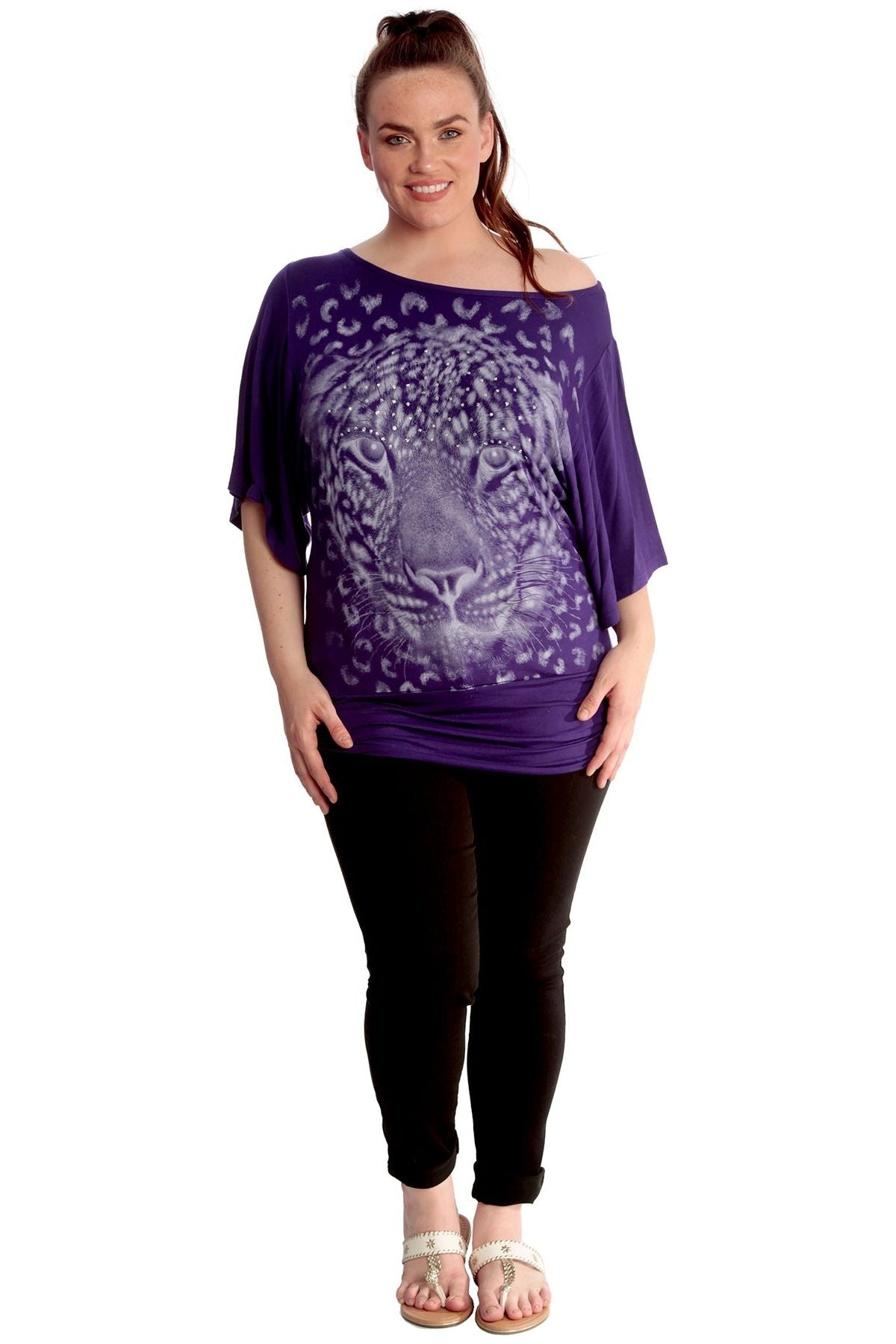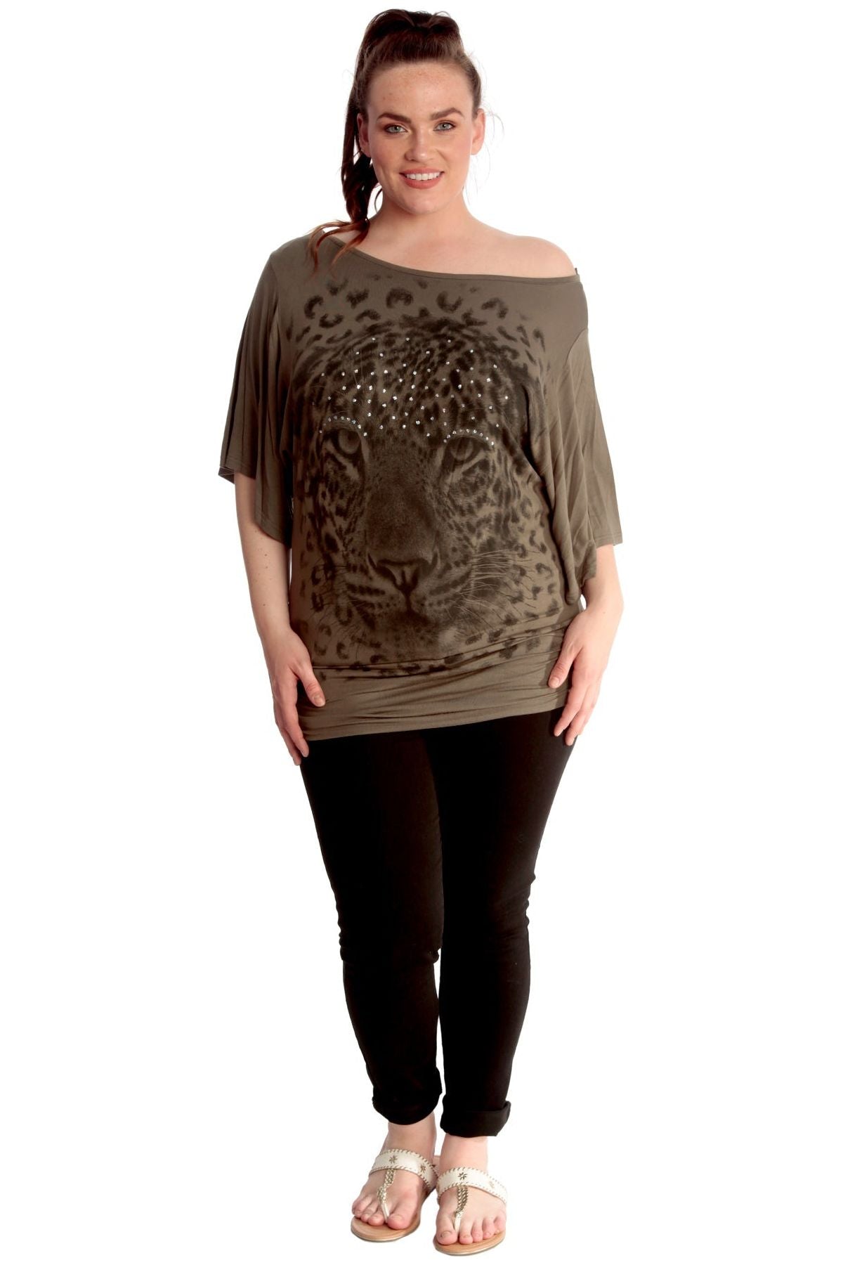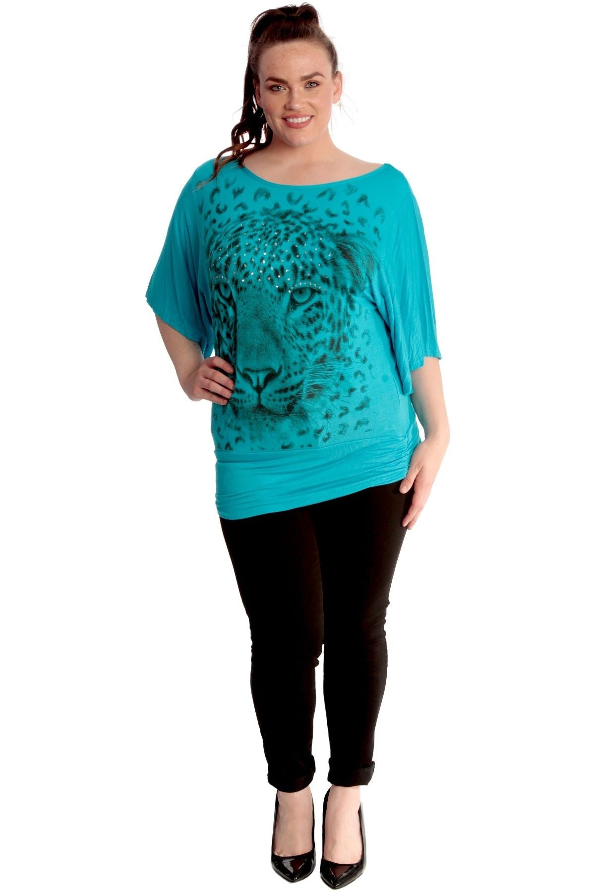 Tiger Print Glitter Batwing Top