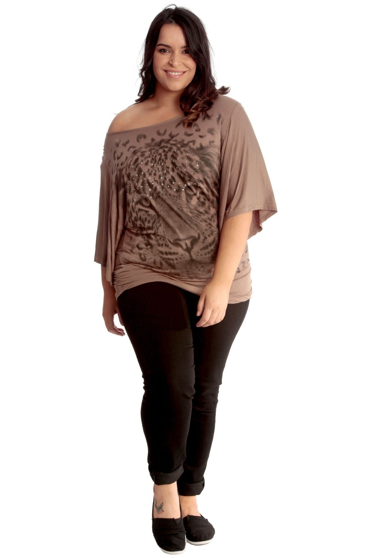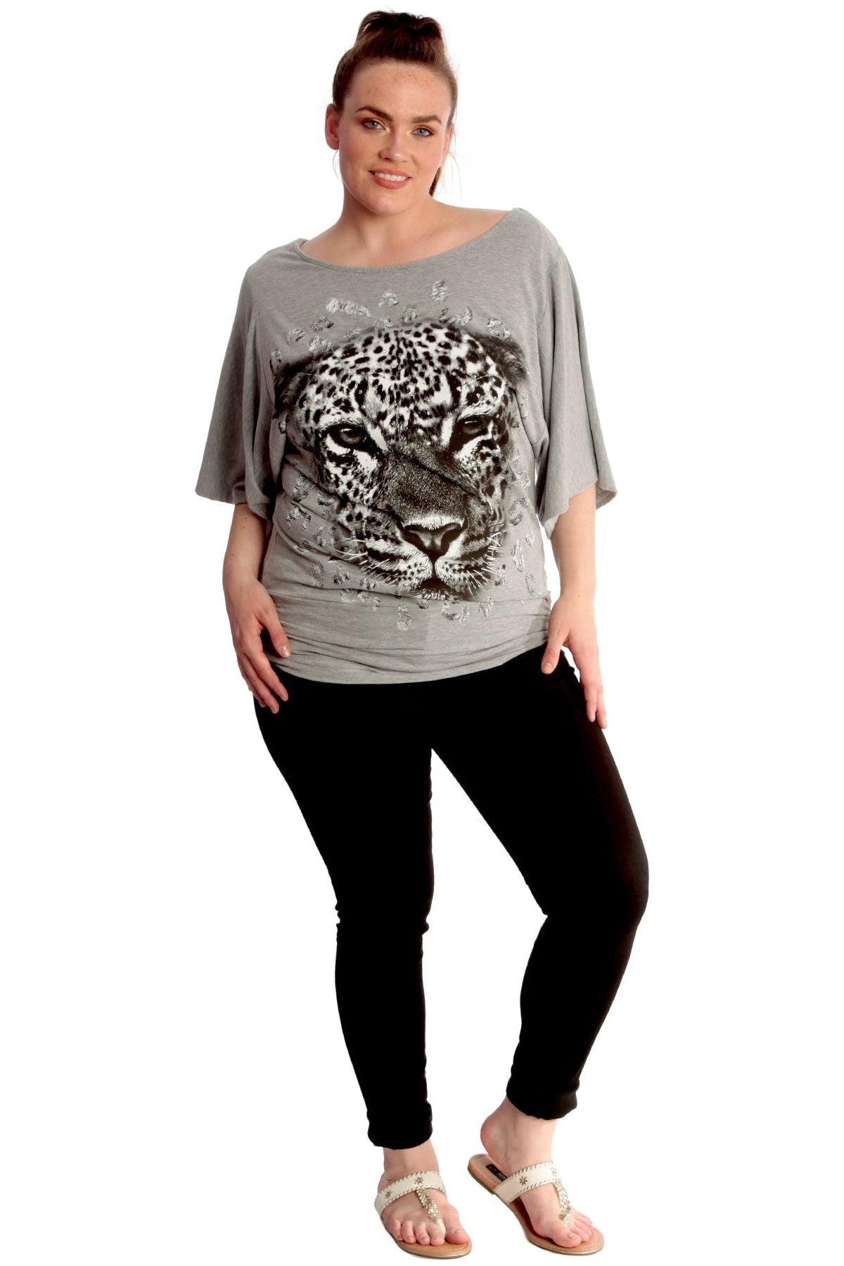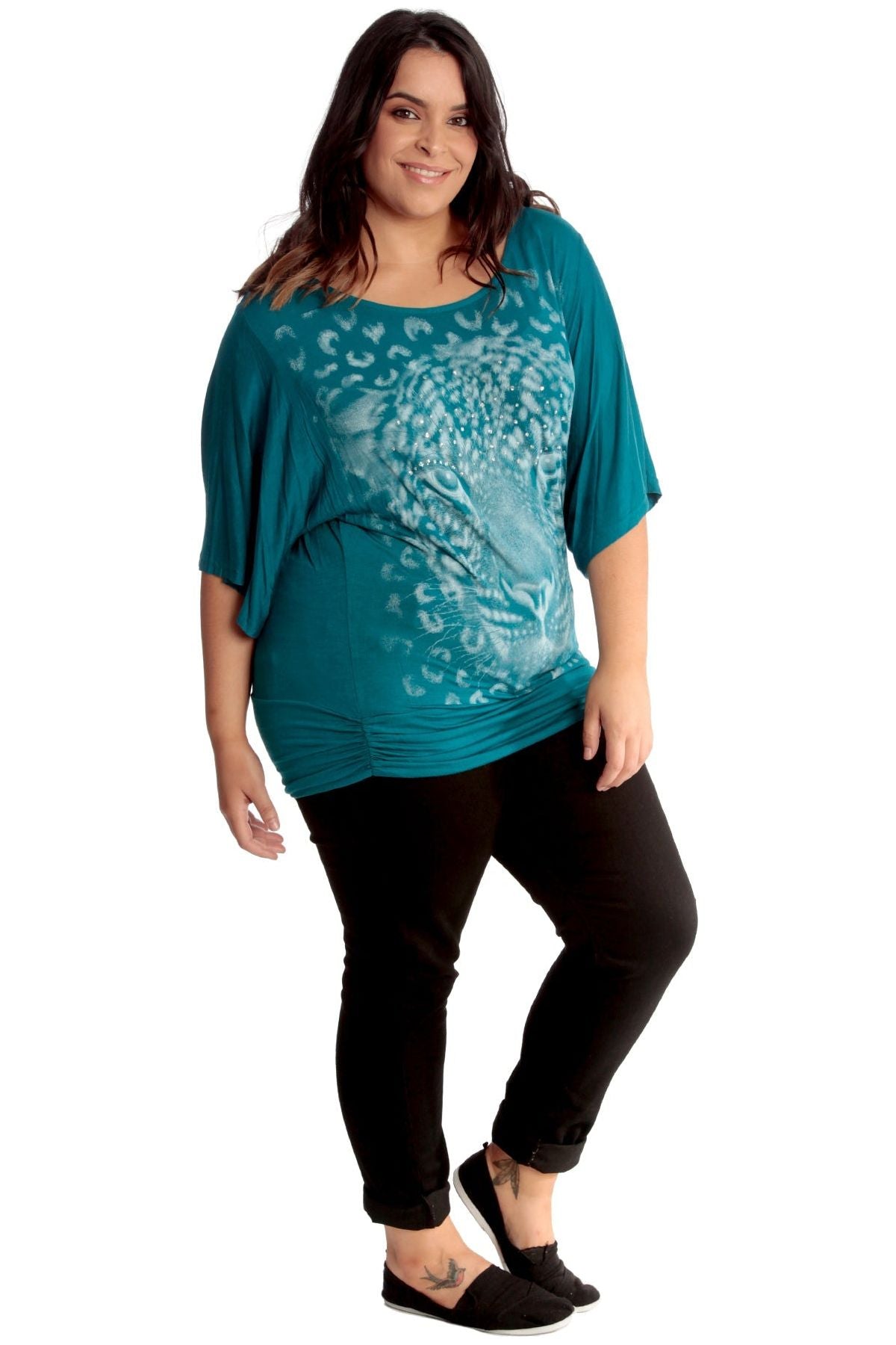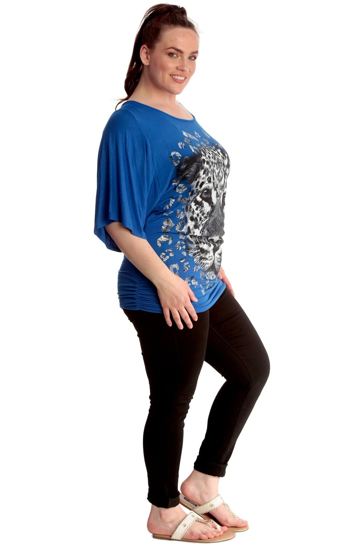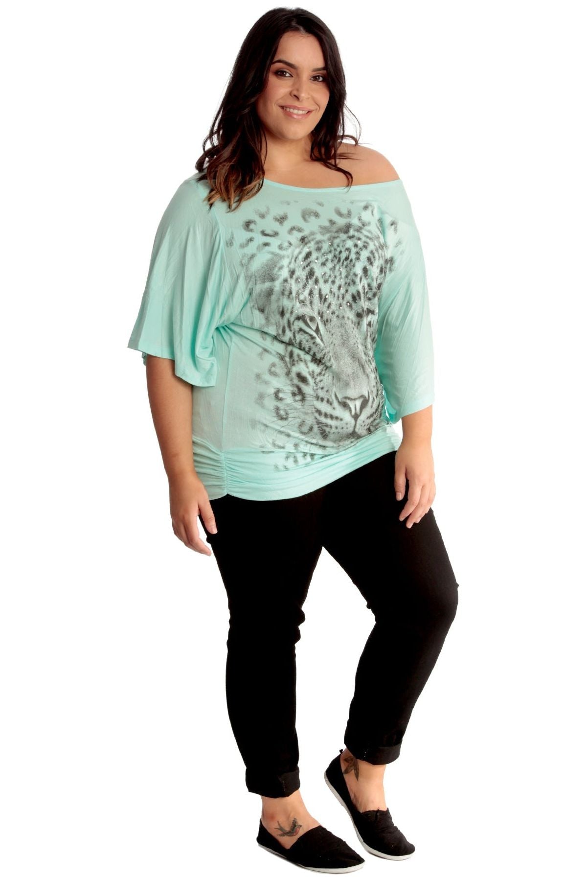 Tiger Print Glitter Batwing Top