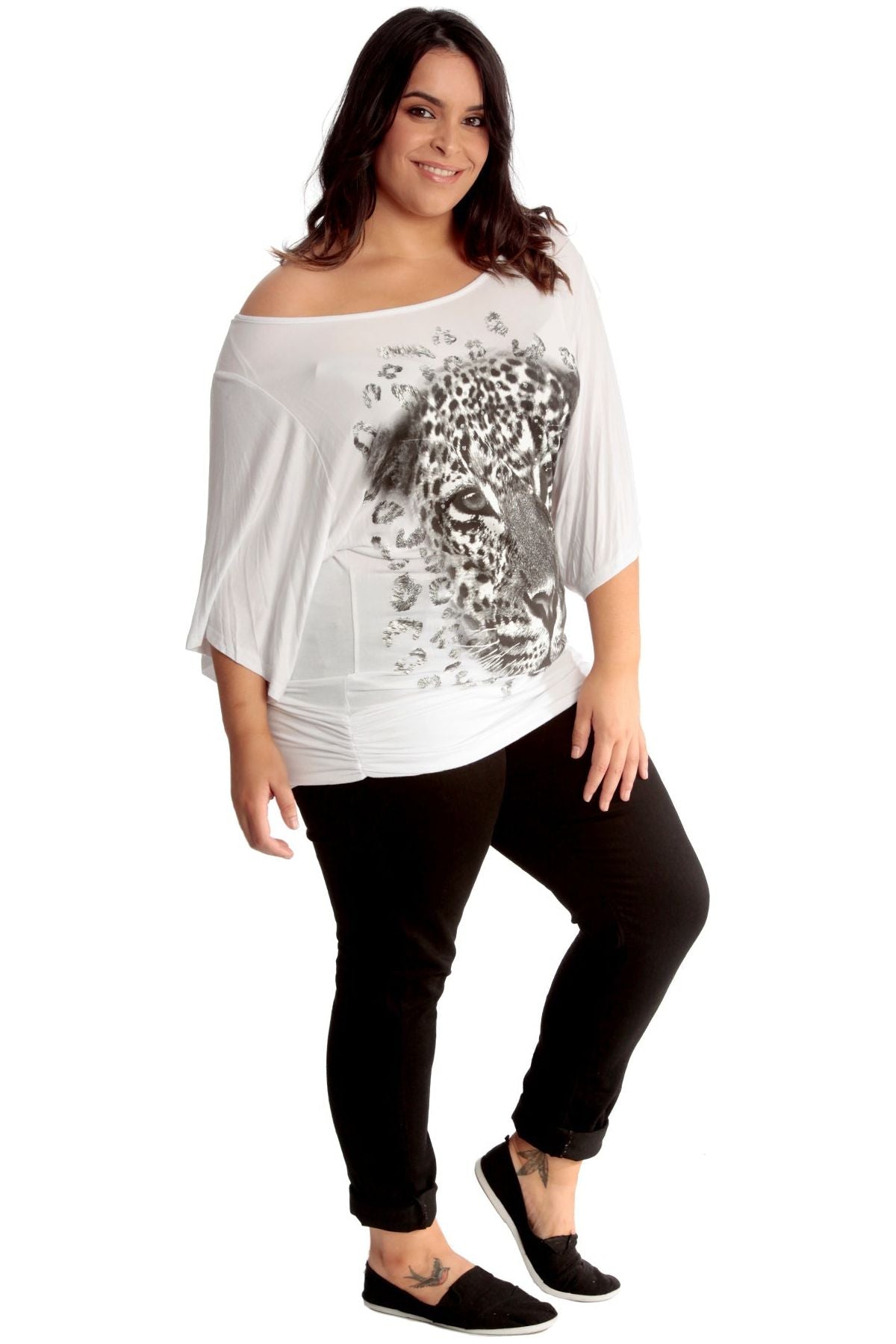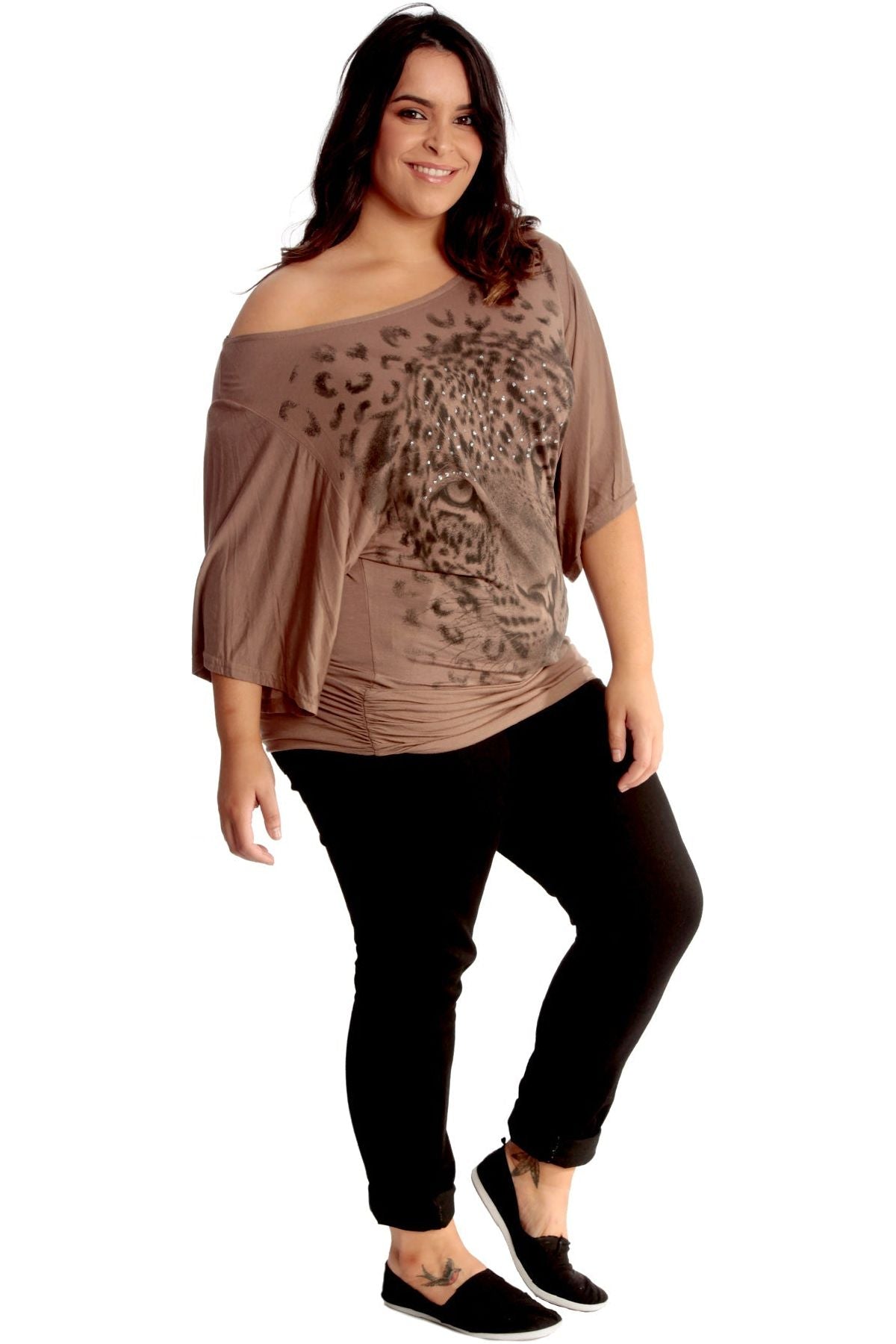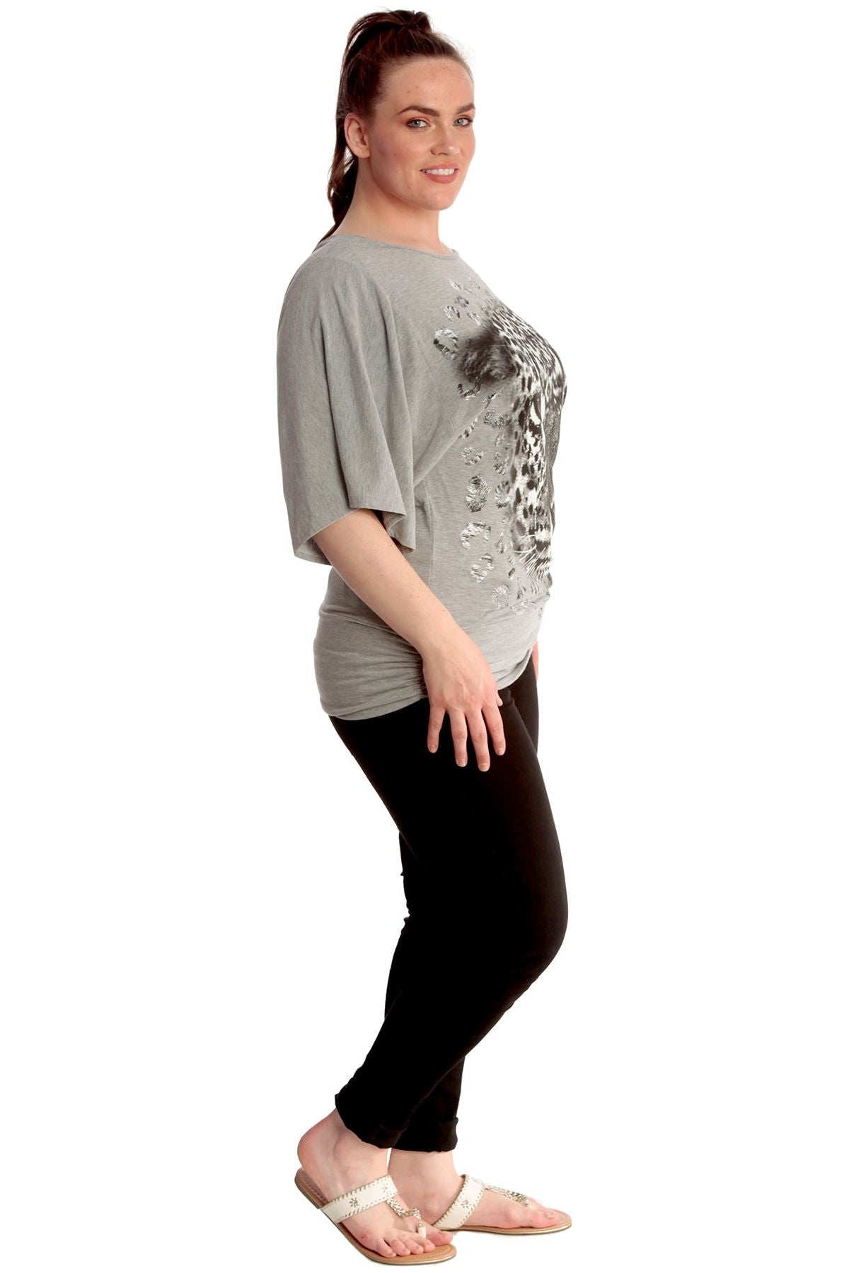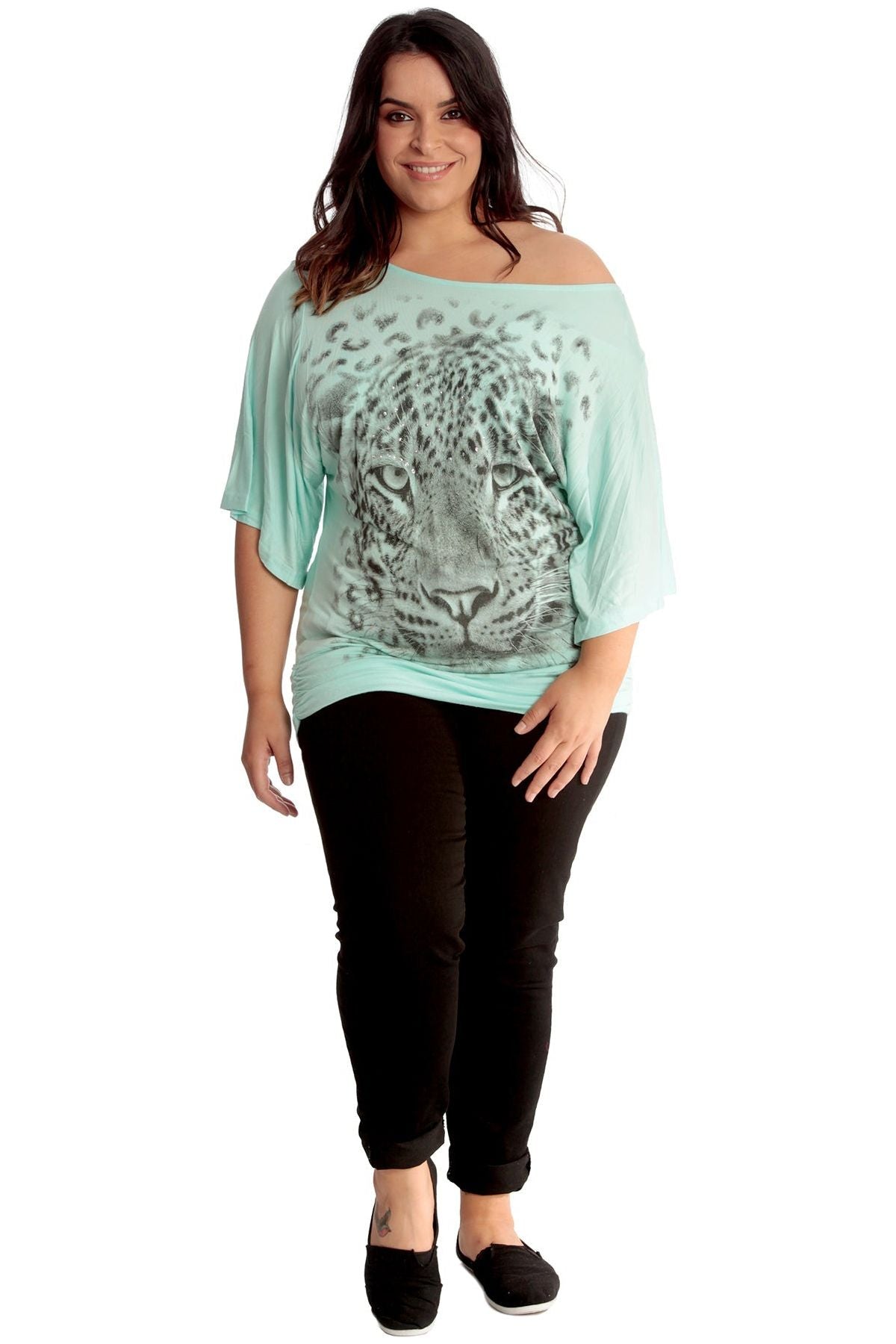 Tiger Print Glitter Batwing Top