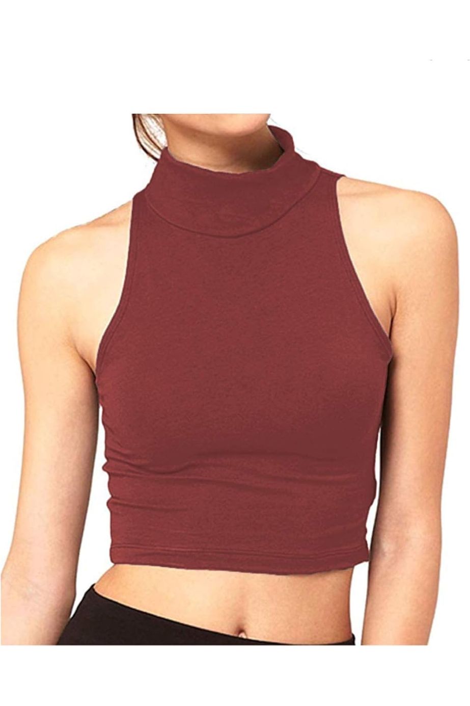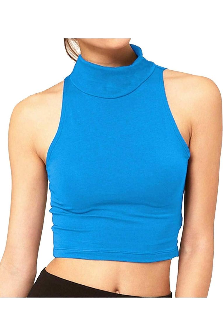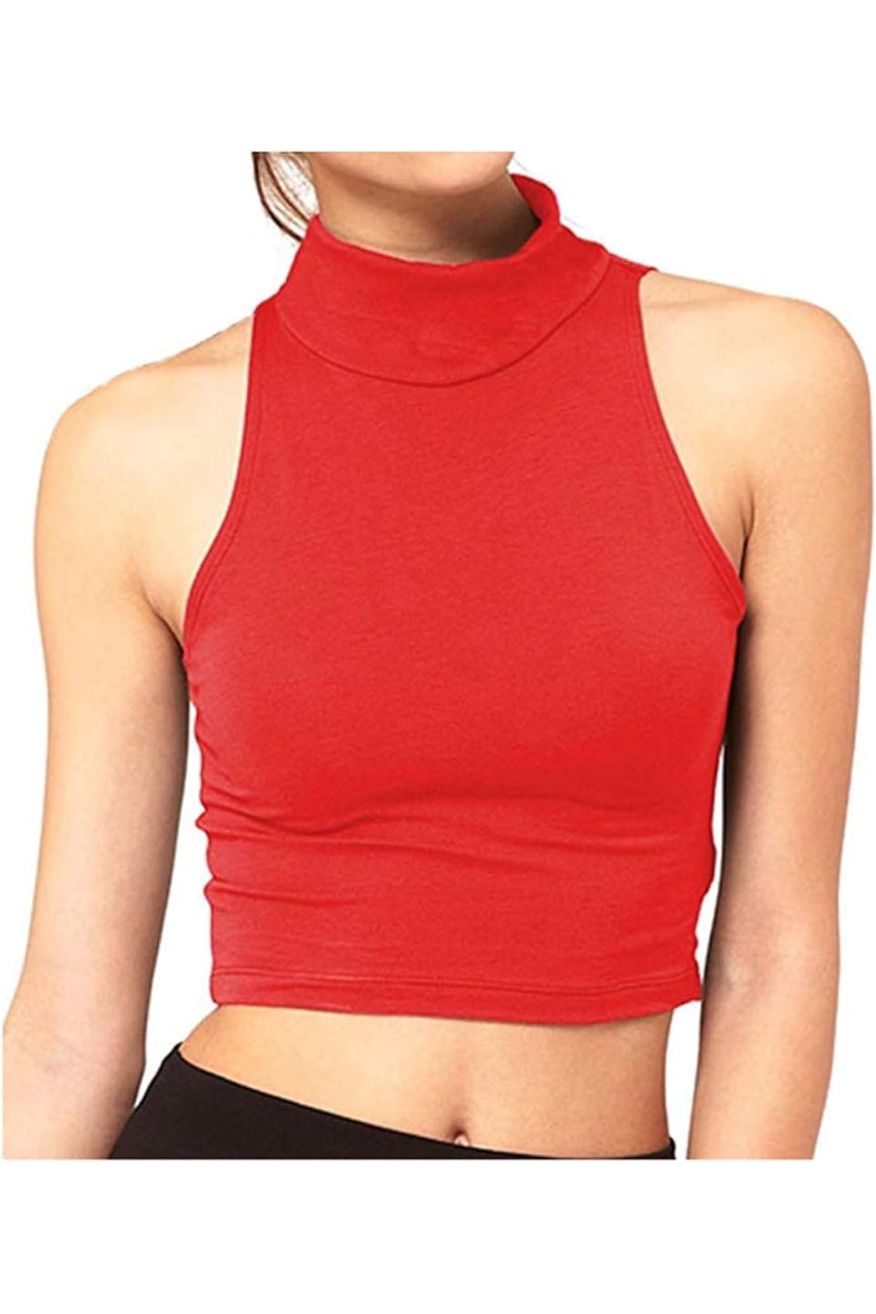 Turtle Neck Sleeveless Crop Top
