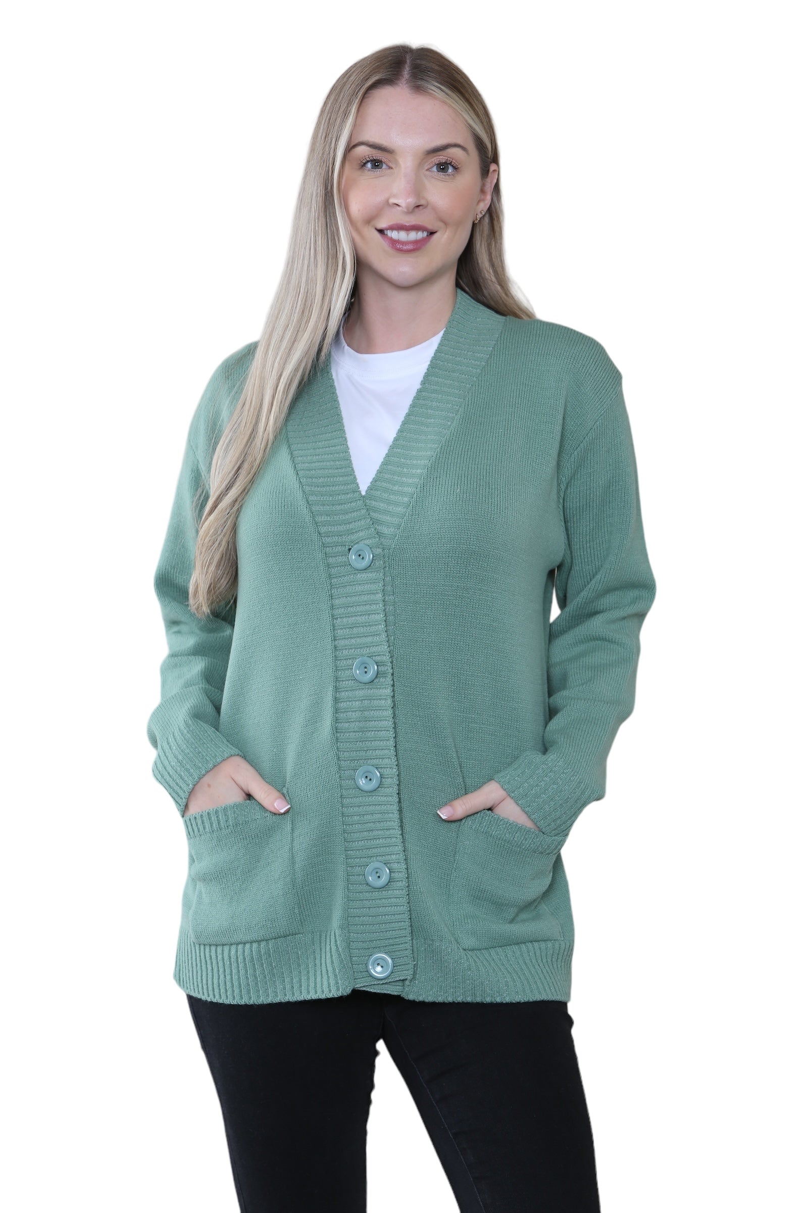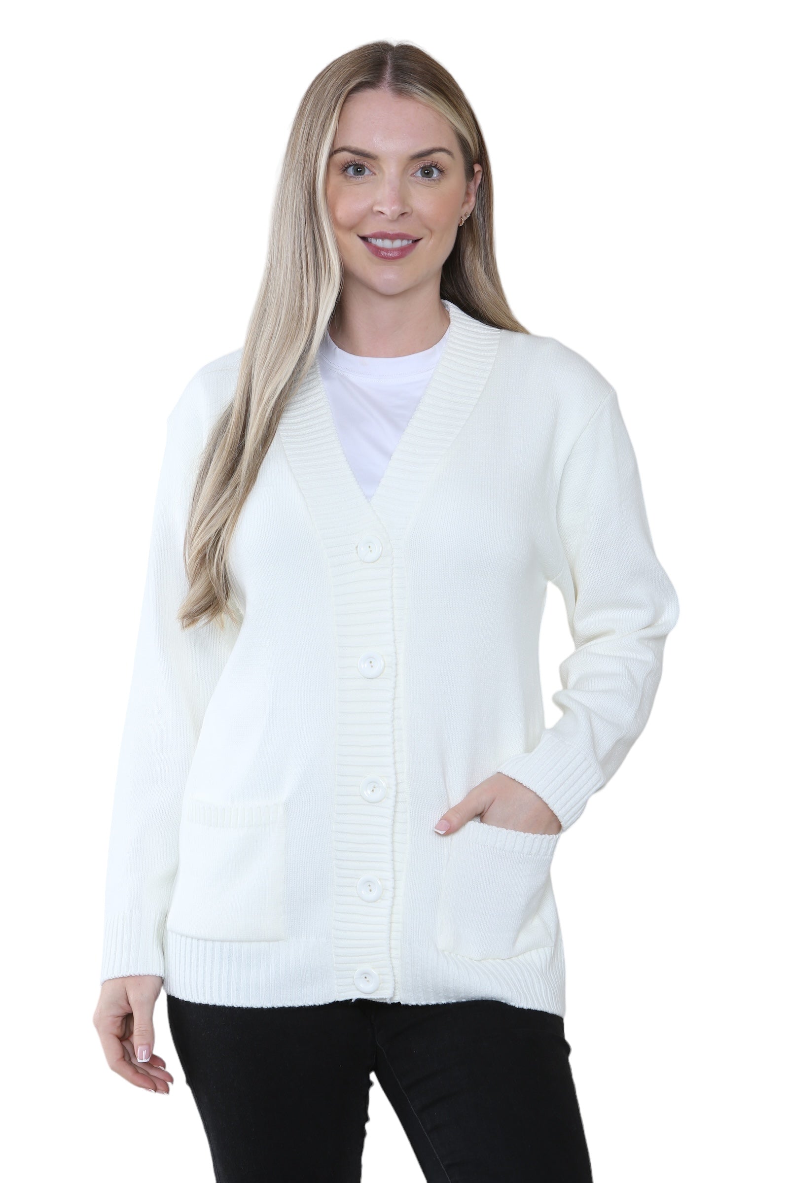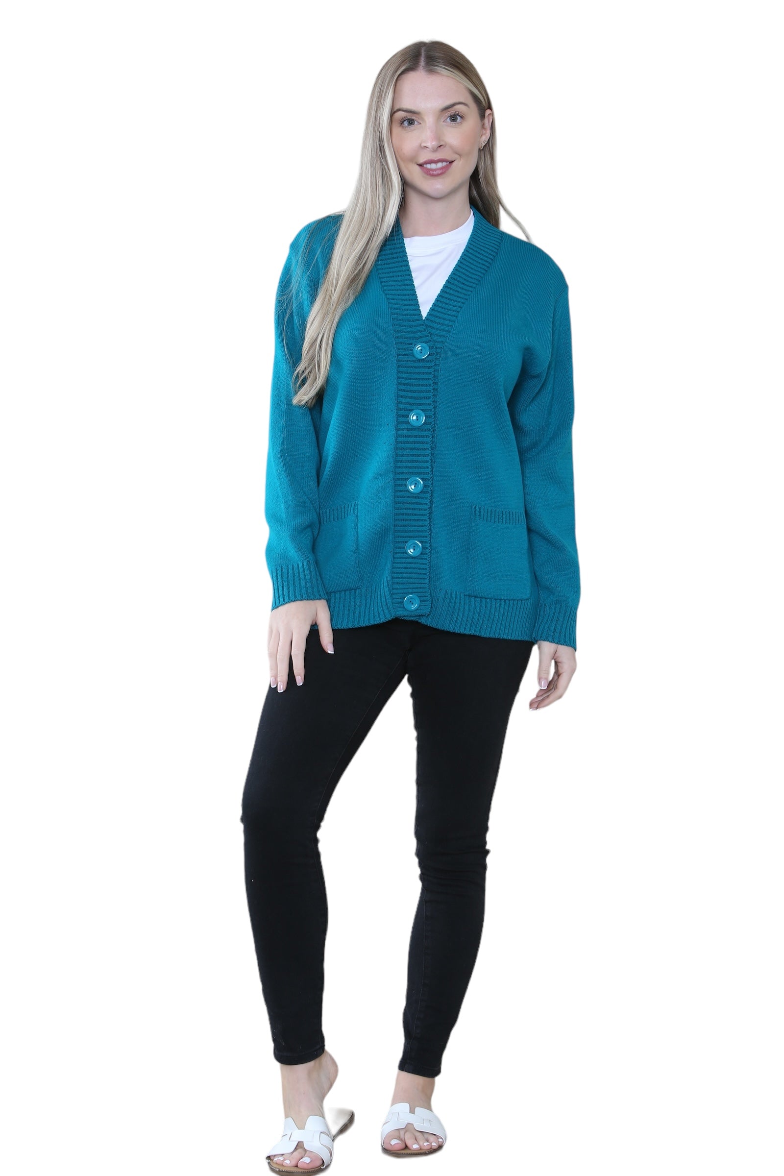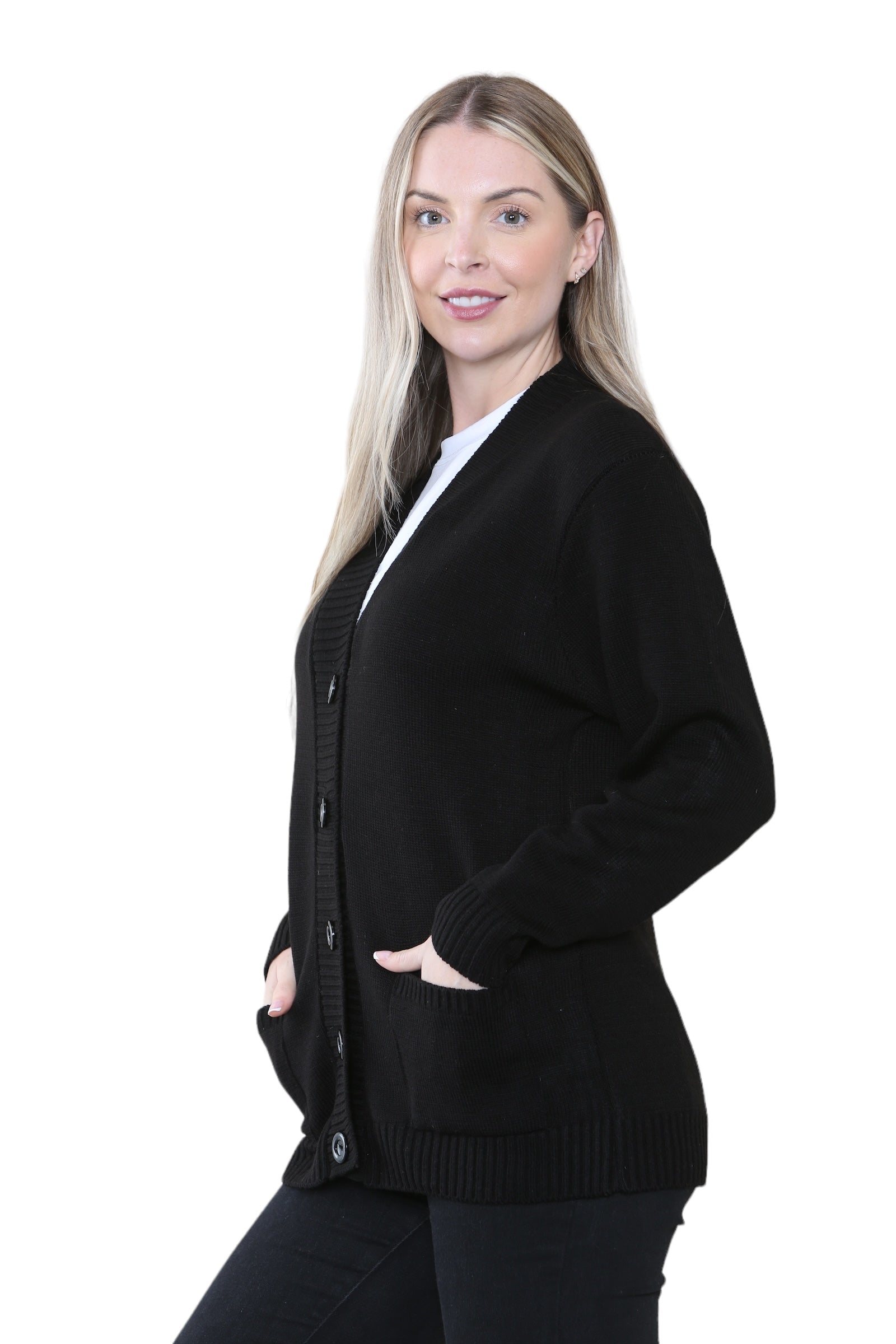 Women's Knitted Winter Cardigan Long Sleeve Warmth with Crew Neck & Ribbed Knit