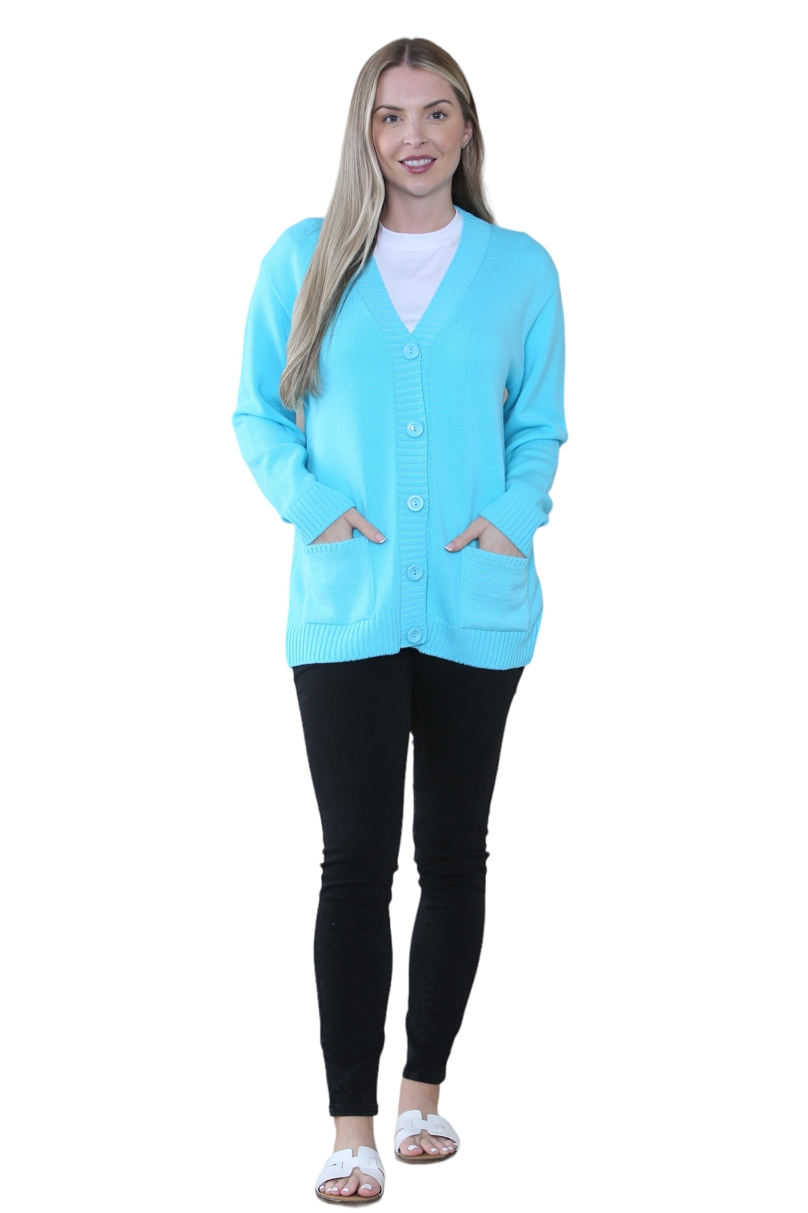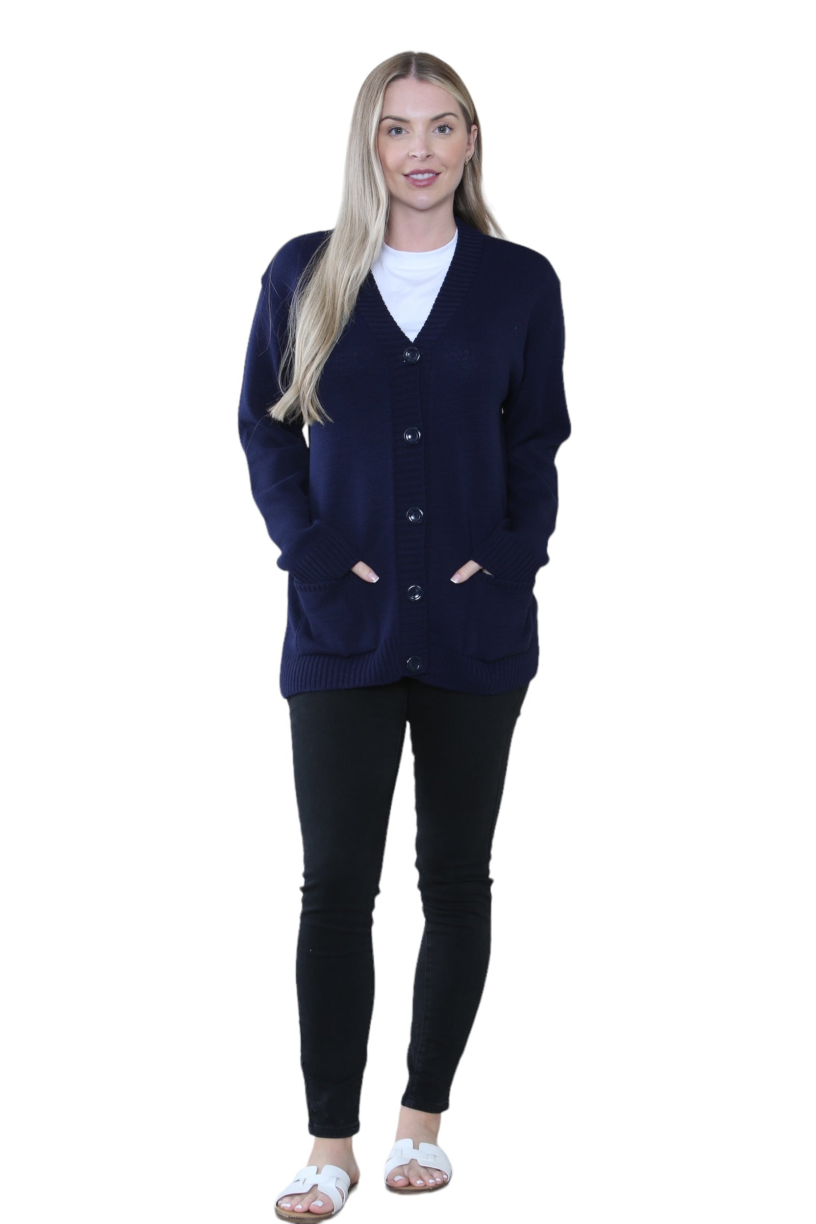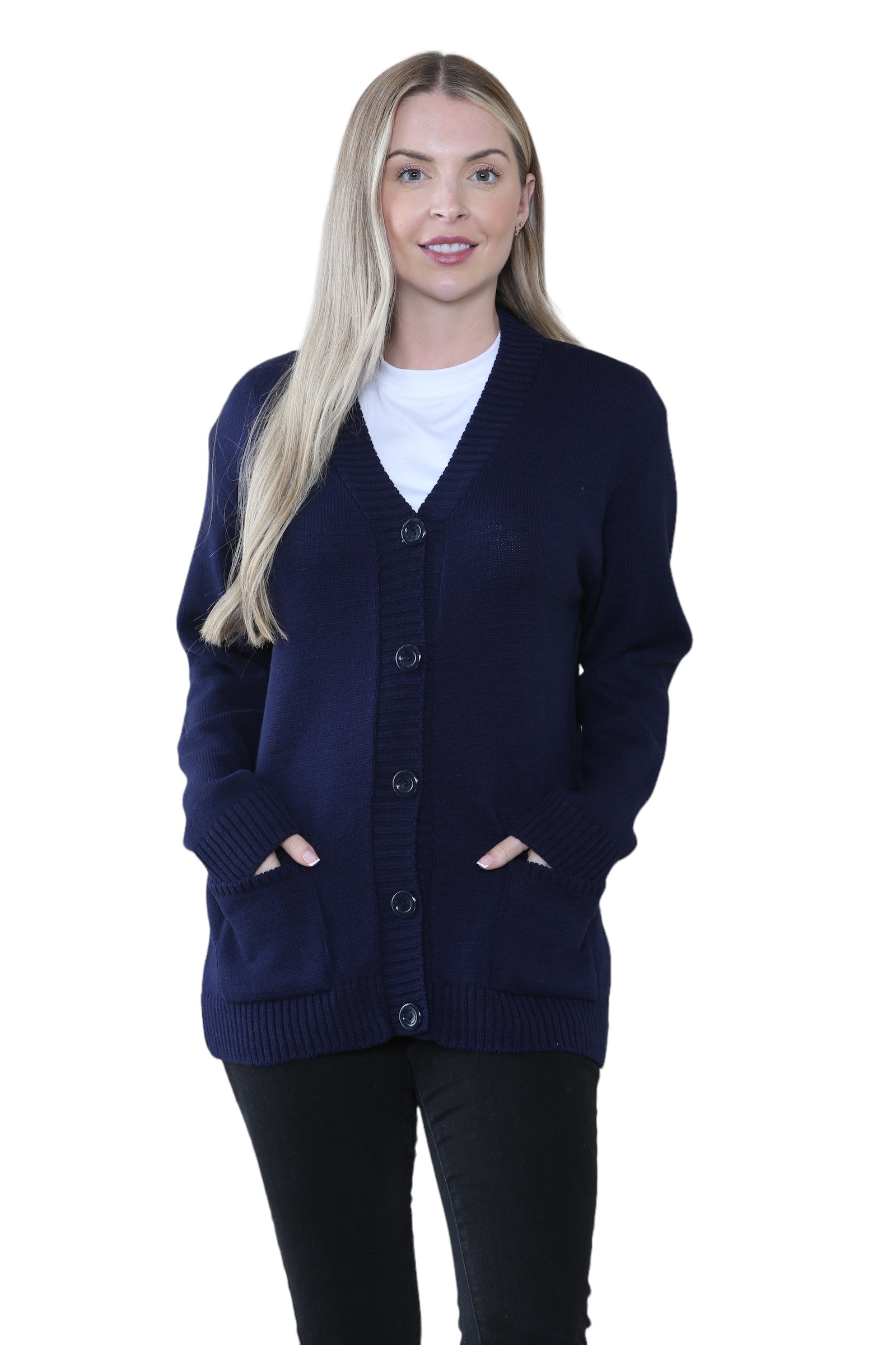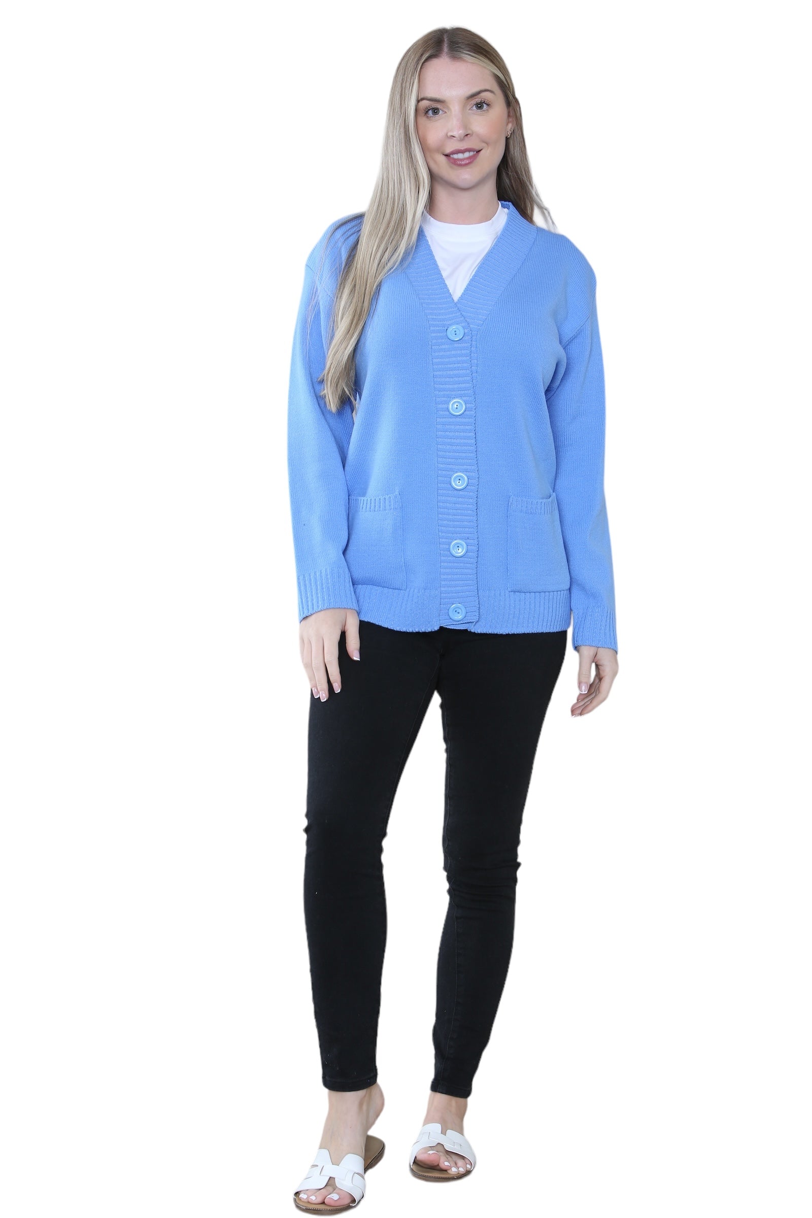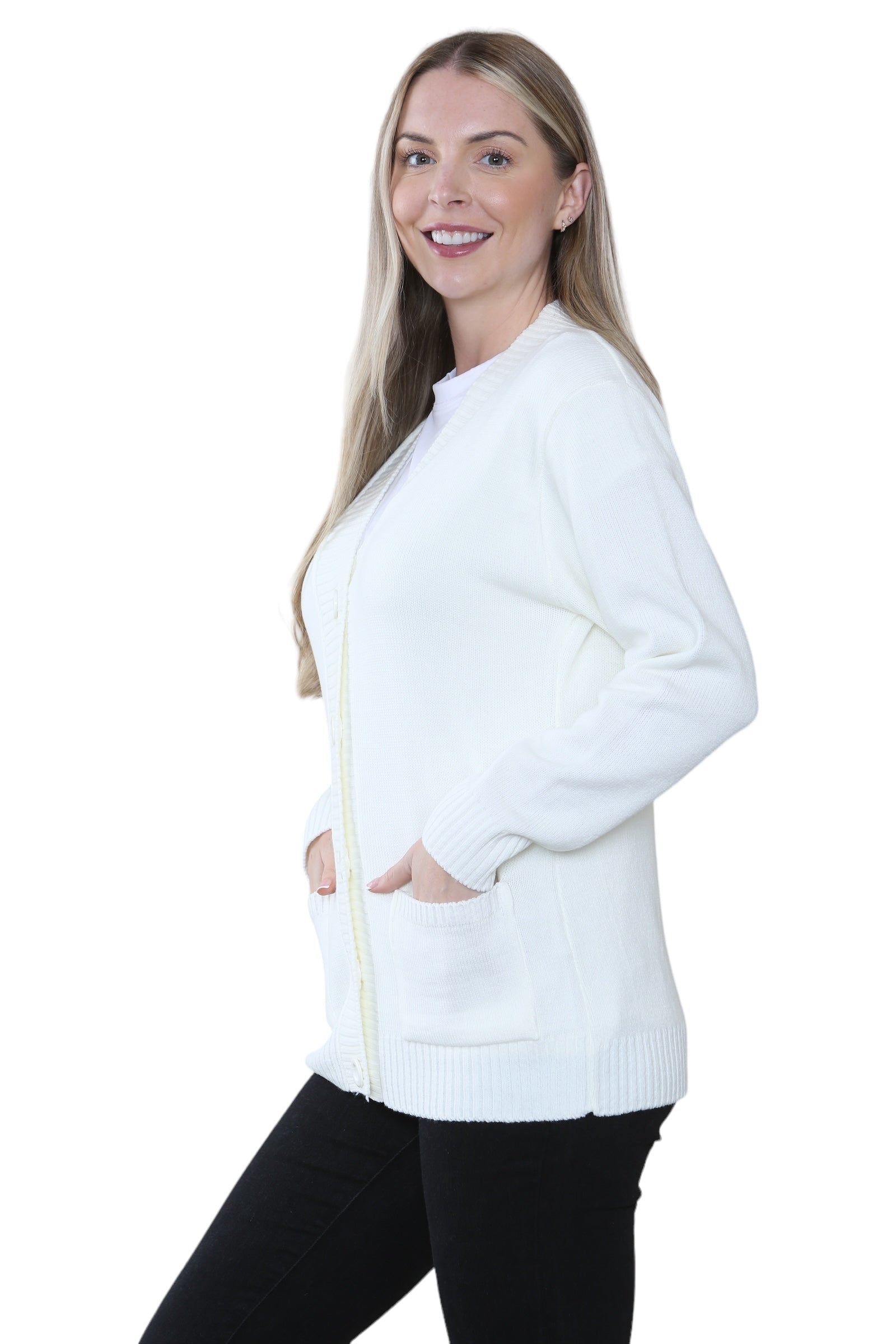 Women's Knitted Winter Cardigan Long Sleeve Warmth with Crew Neck & Ribbed Knit