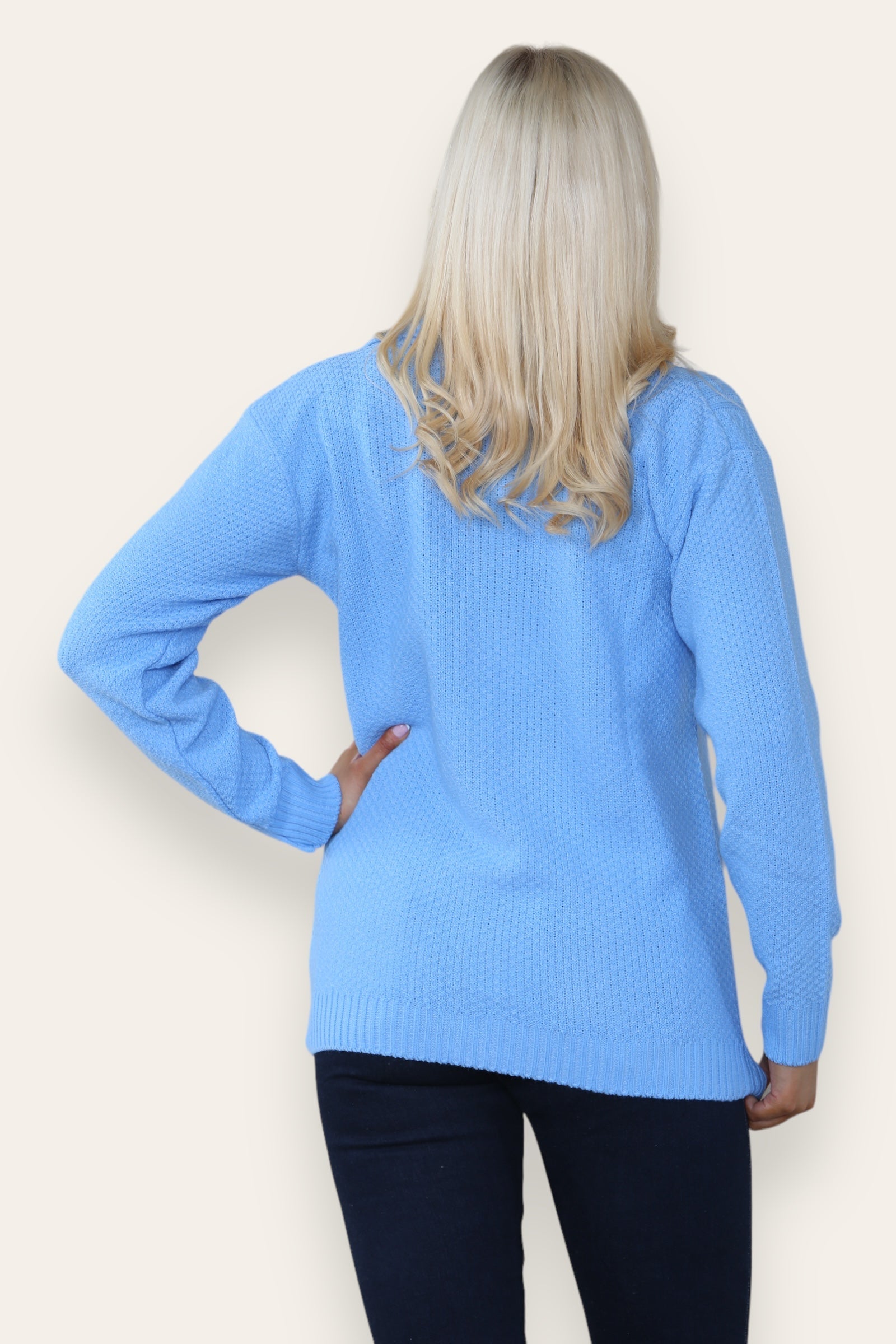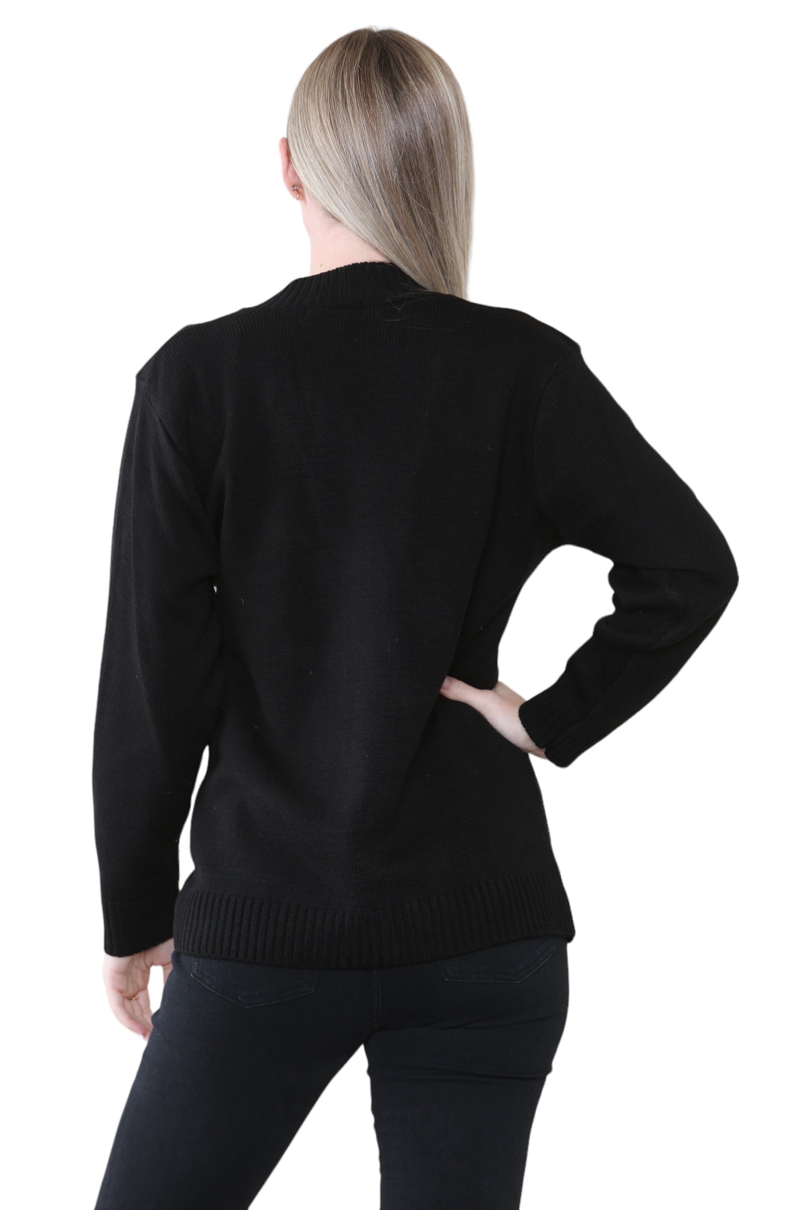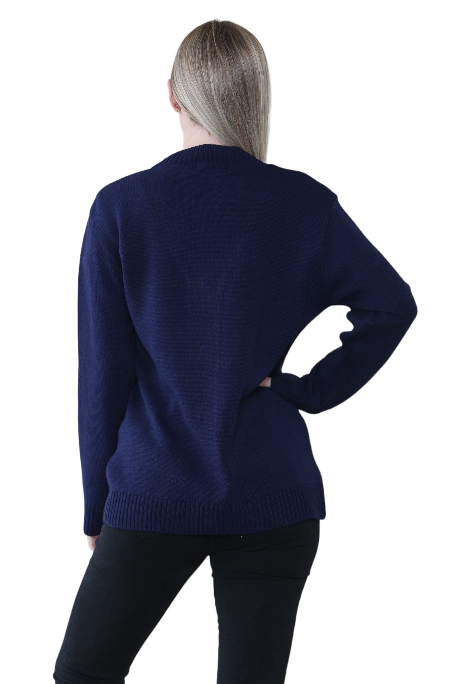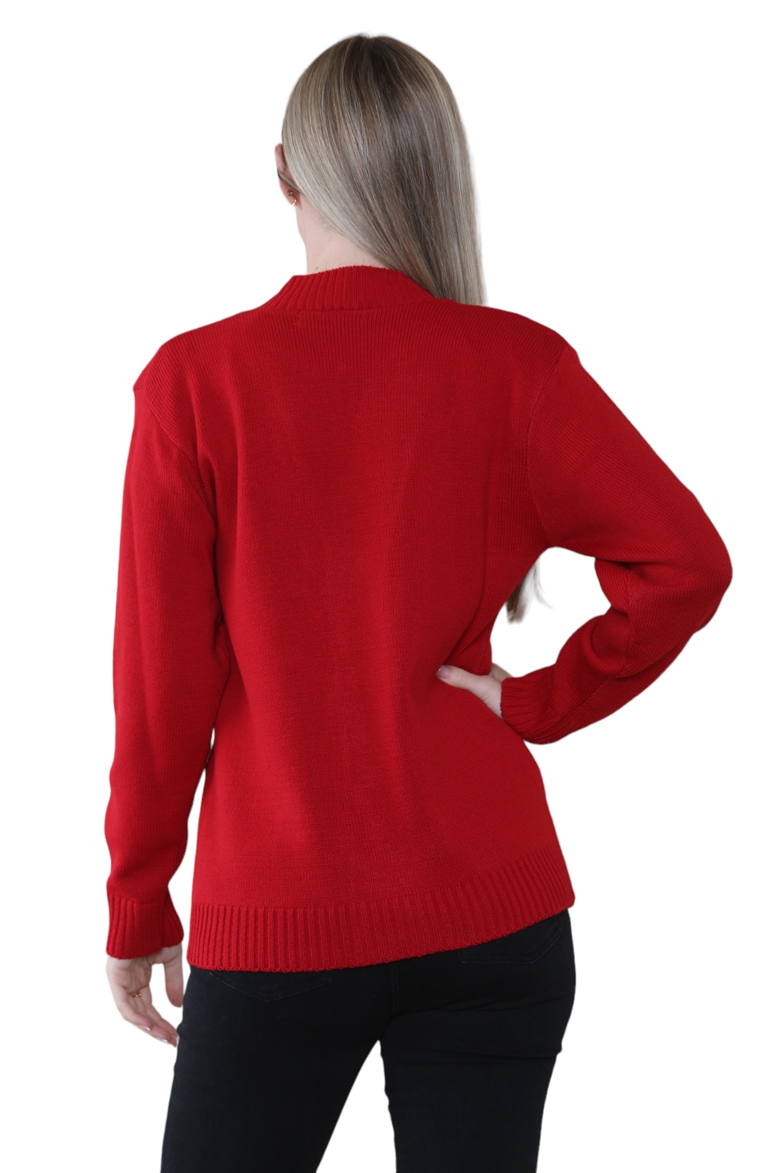 Women's Knitted Winter Cardigan Long Sleeve Warmth with Crew Neck & Ribbed Knit