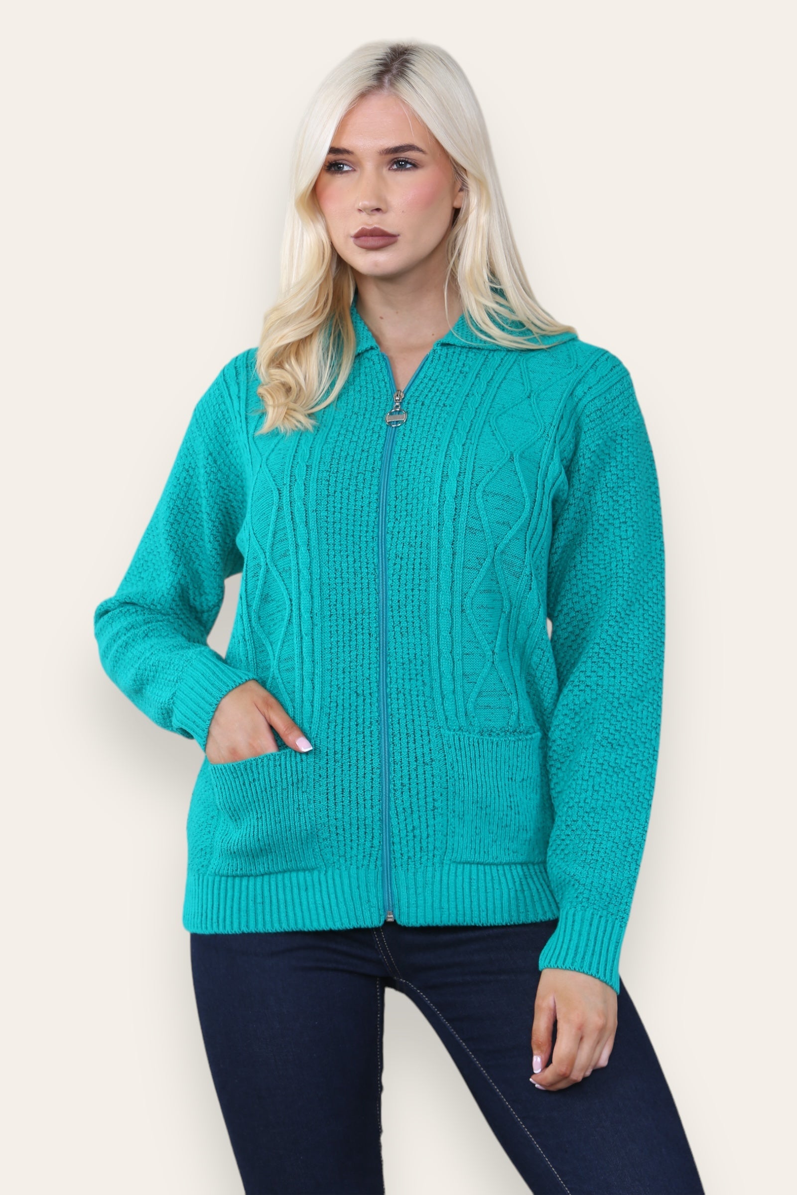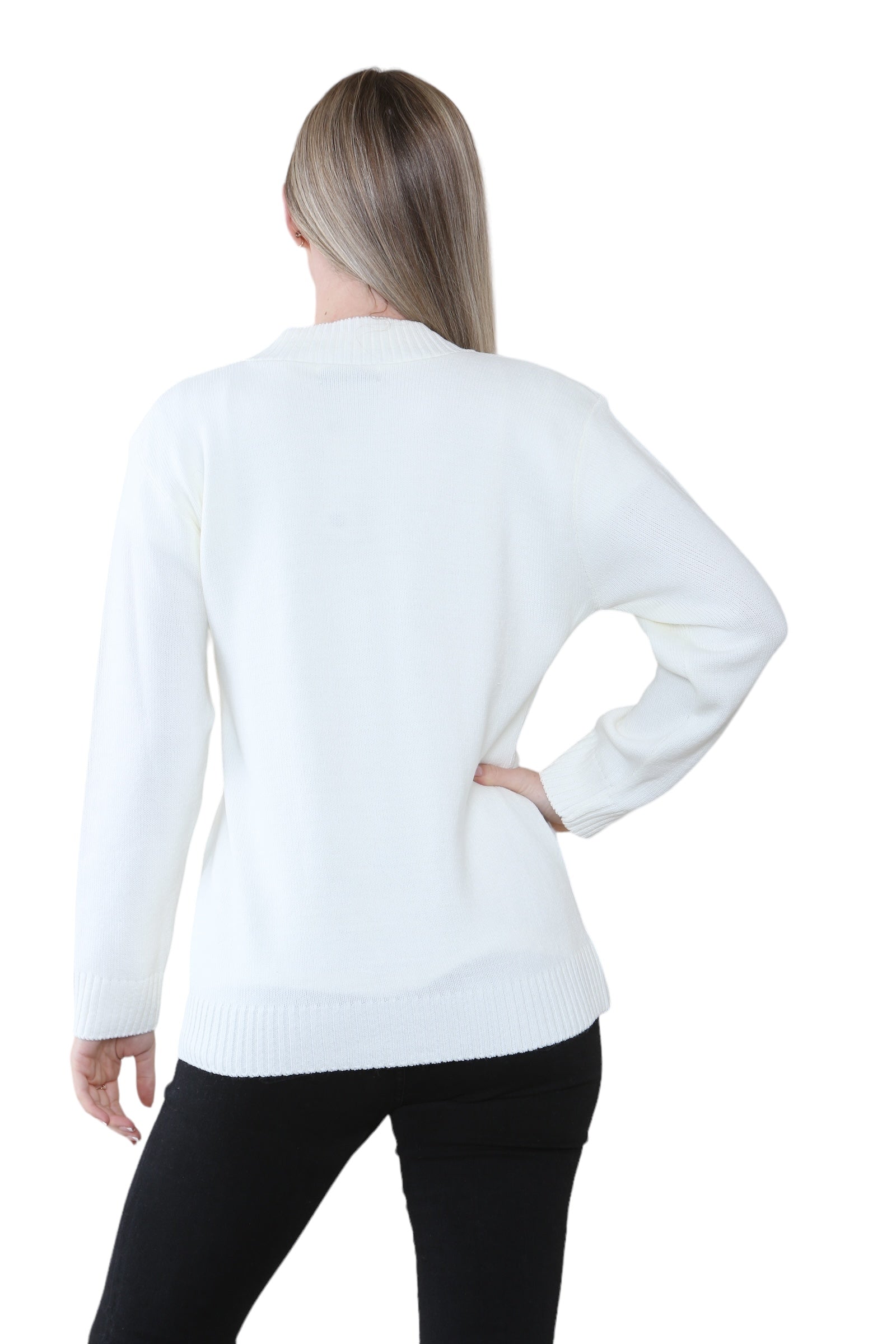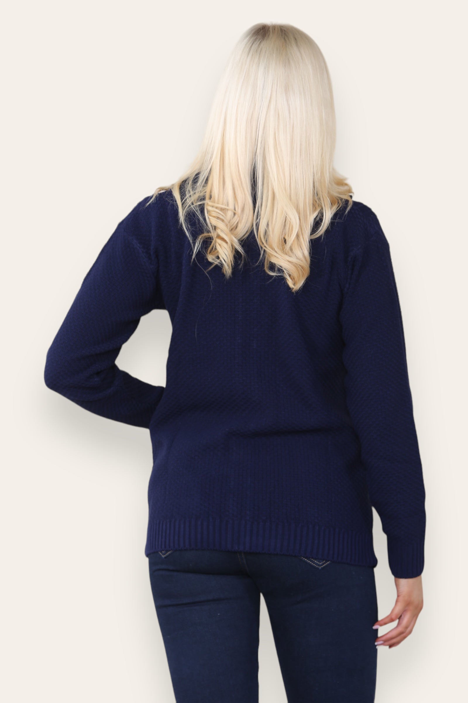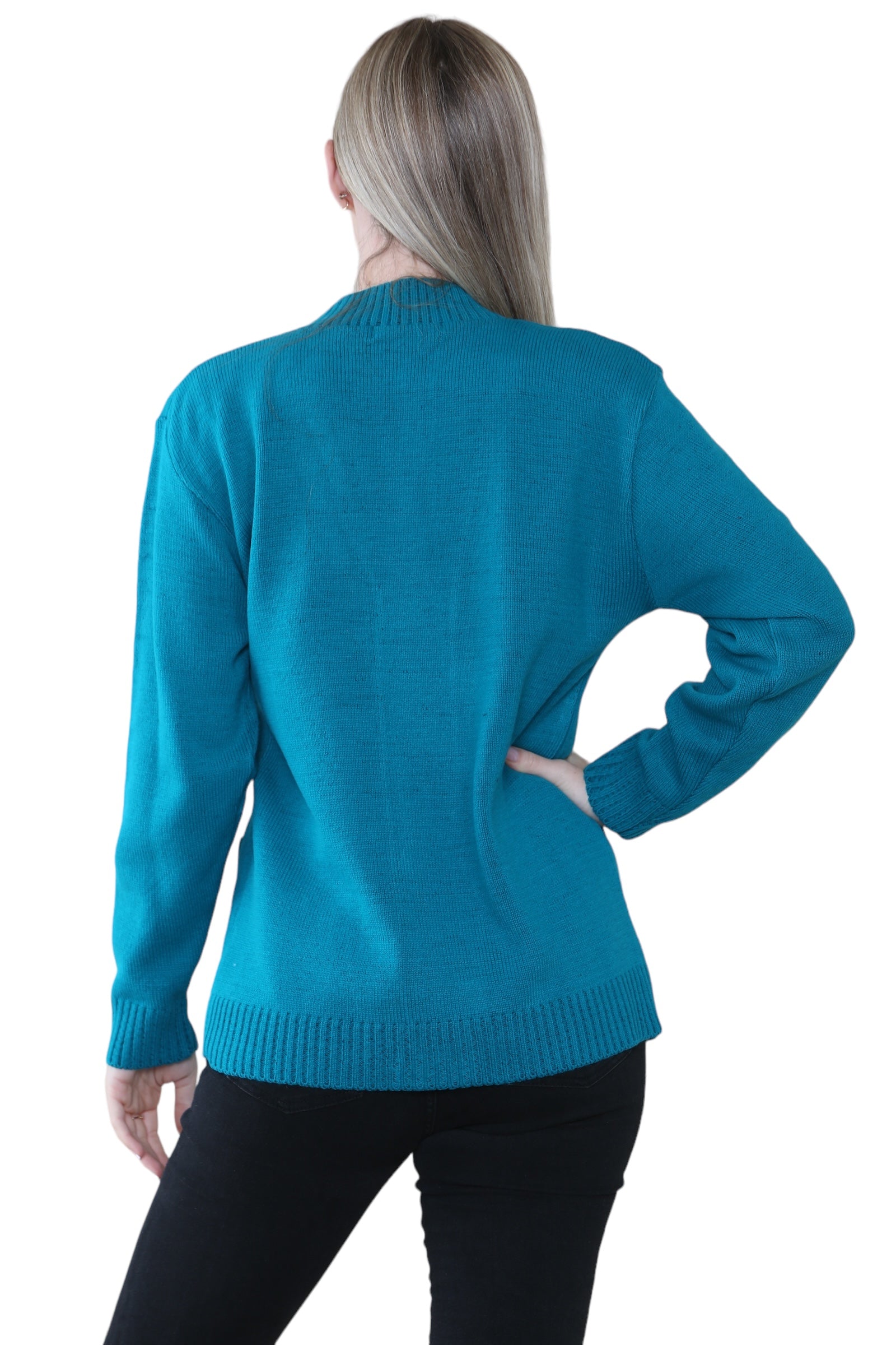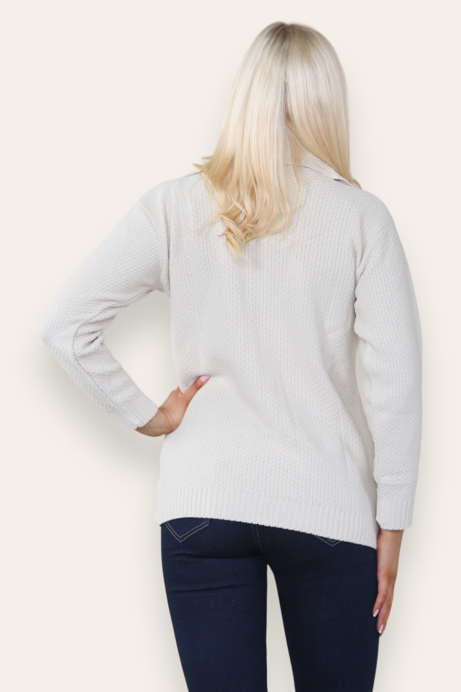 Women's Knitted Winter Cardigan Long Sleeve Warmth with Crew Neck & Ribbed Knit