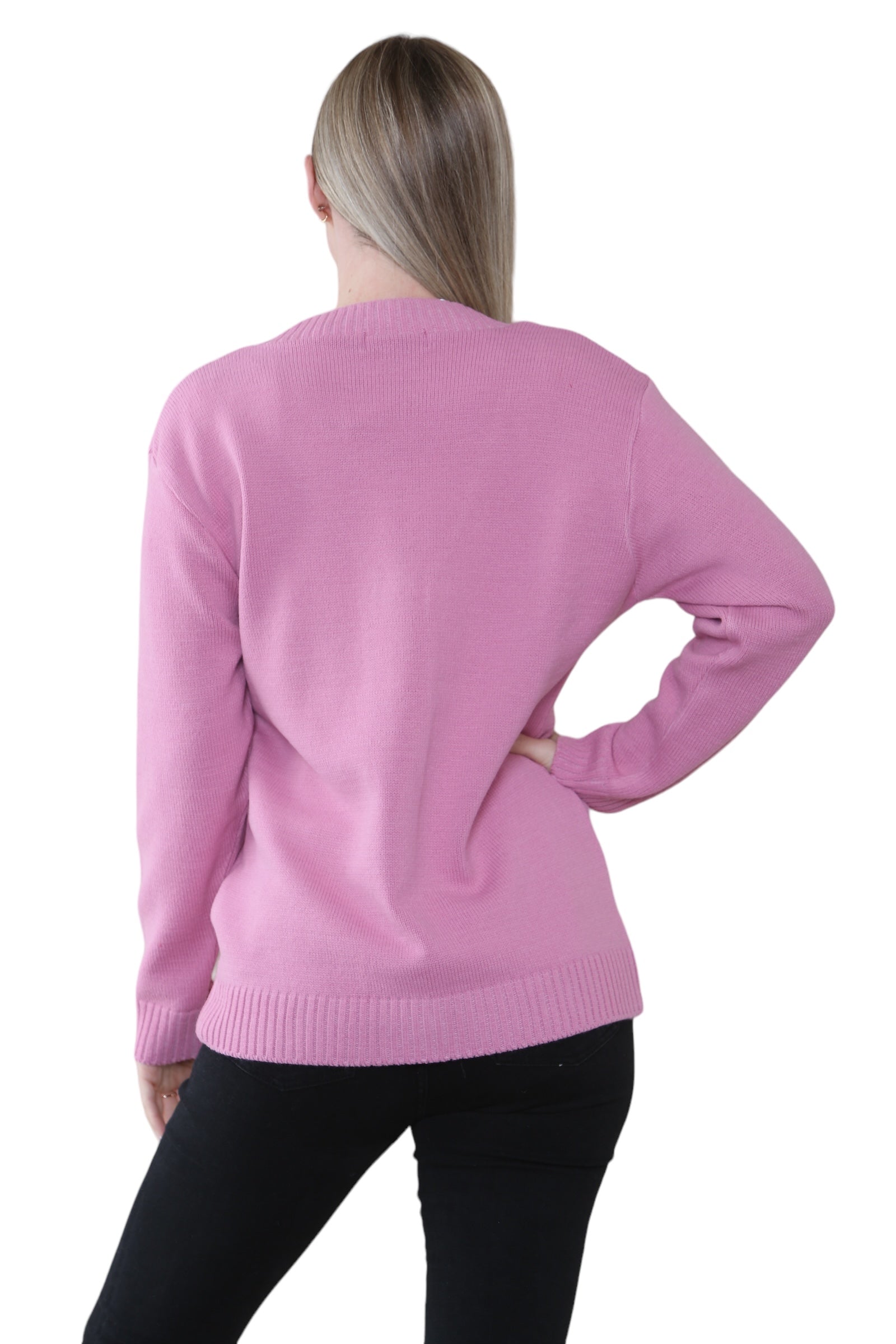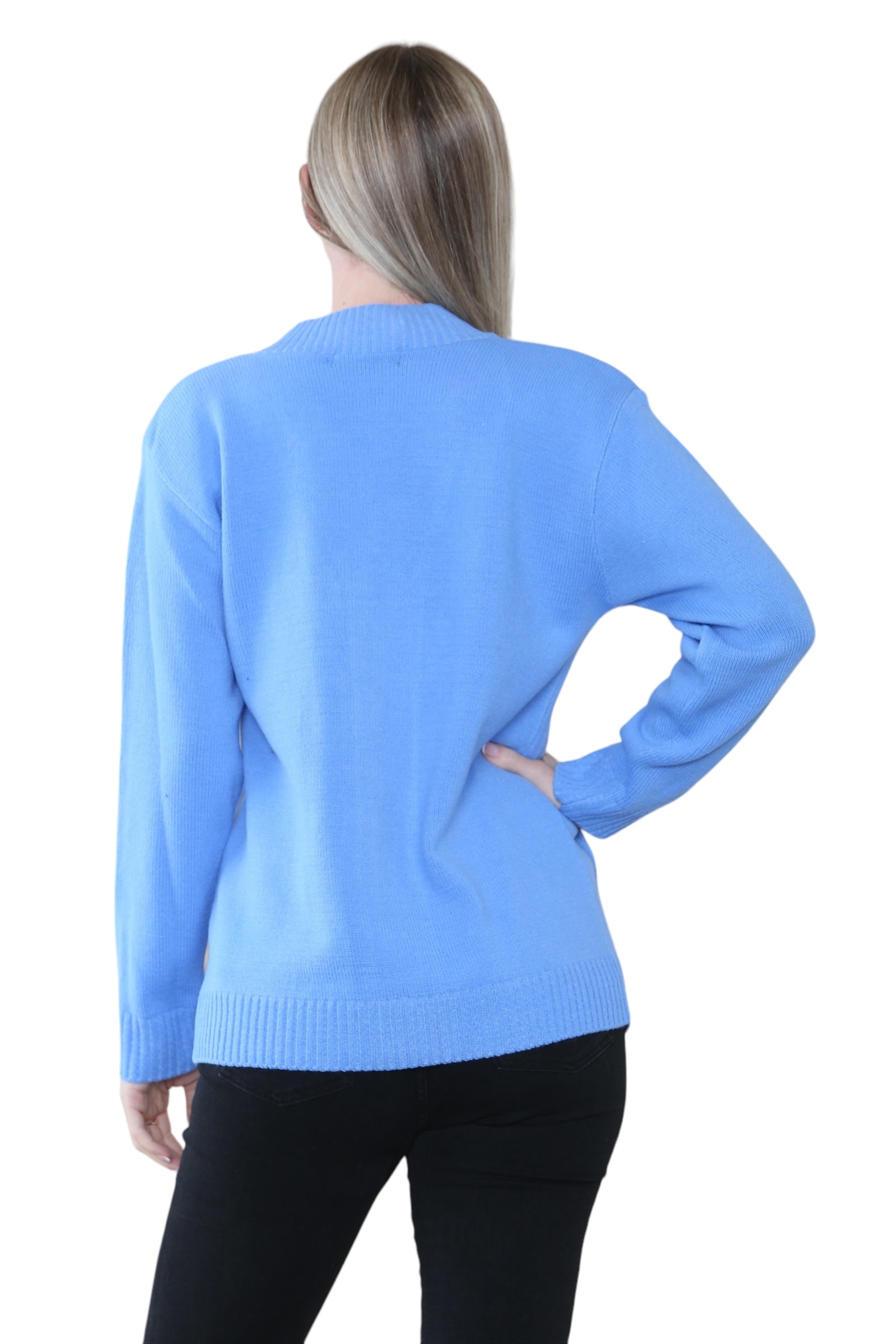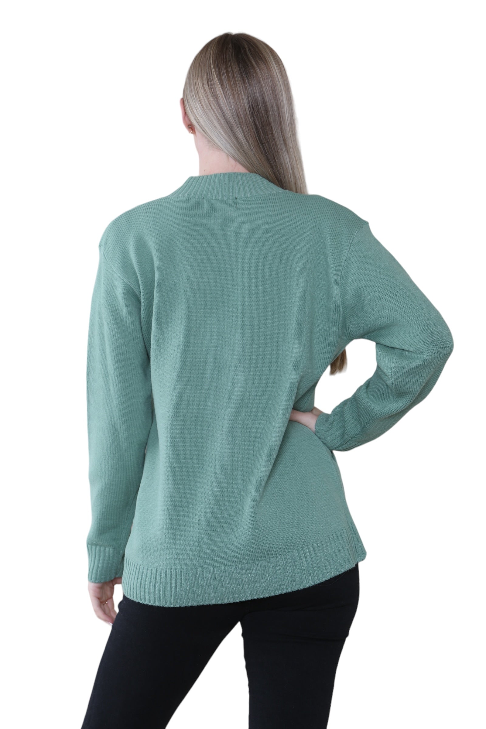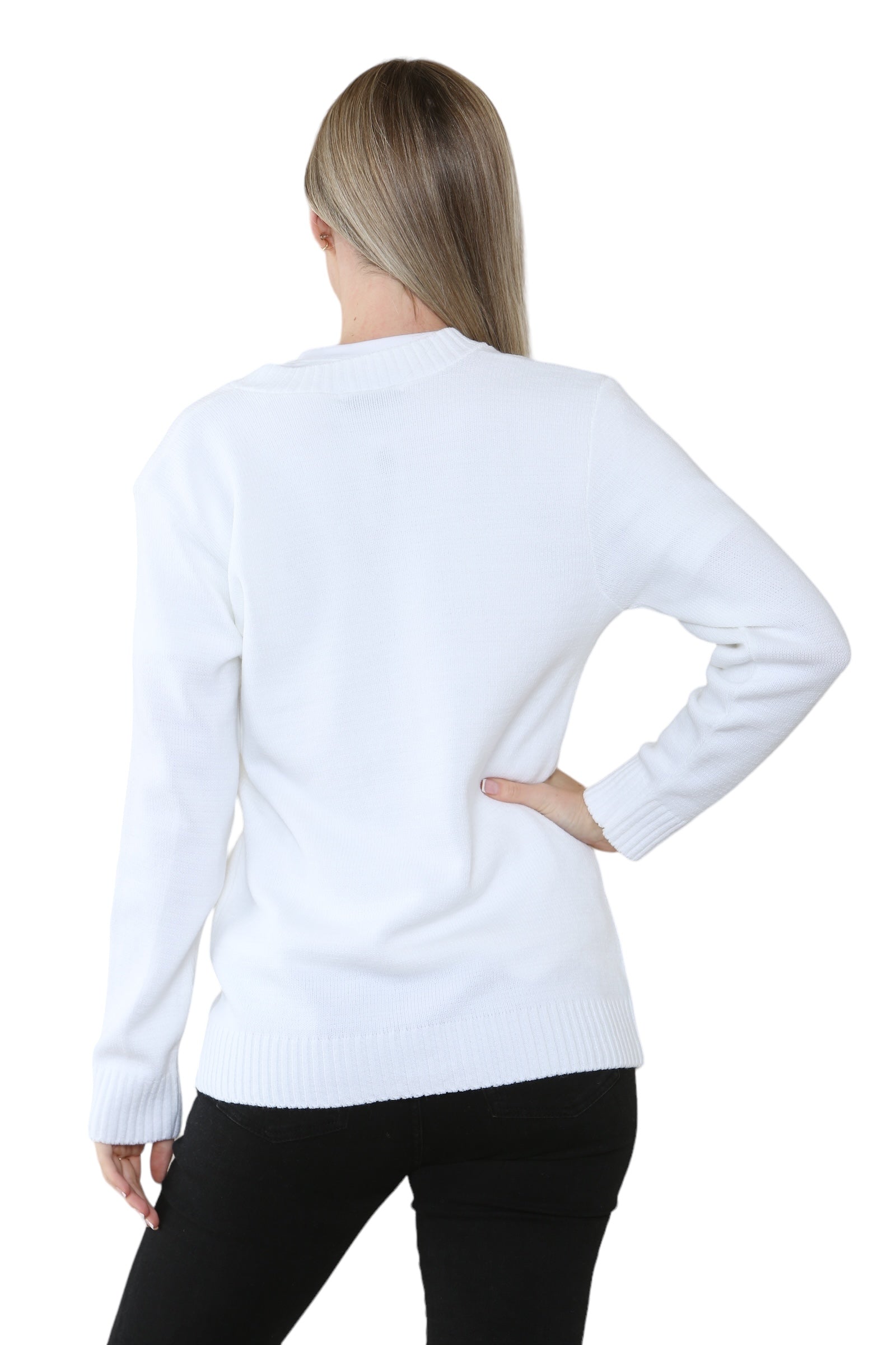 Women's Knitted Winter Cardigan Long Sleeve Warmth with Crew Neck & Ribbed Knit