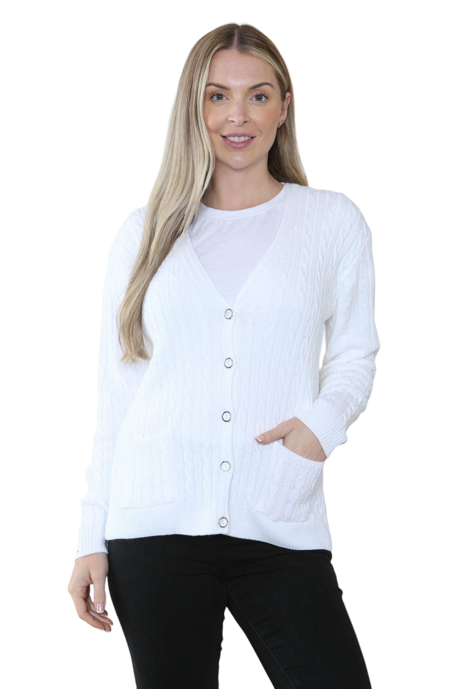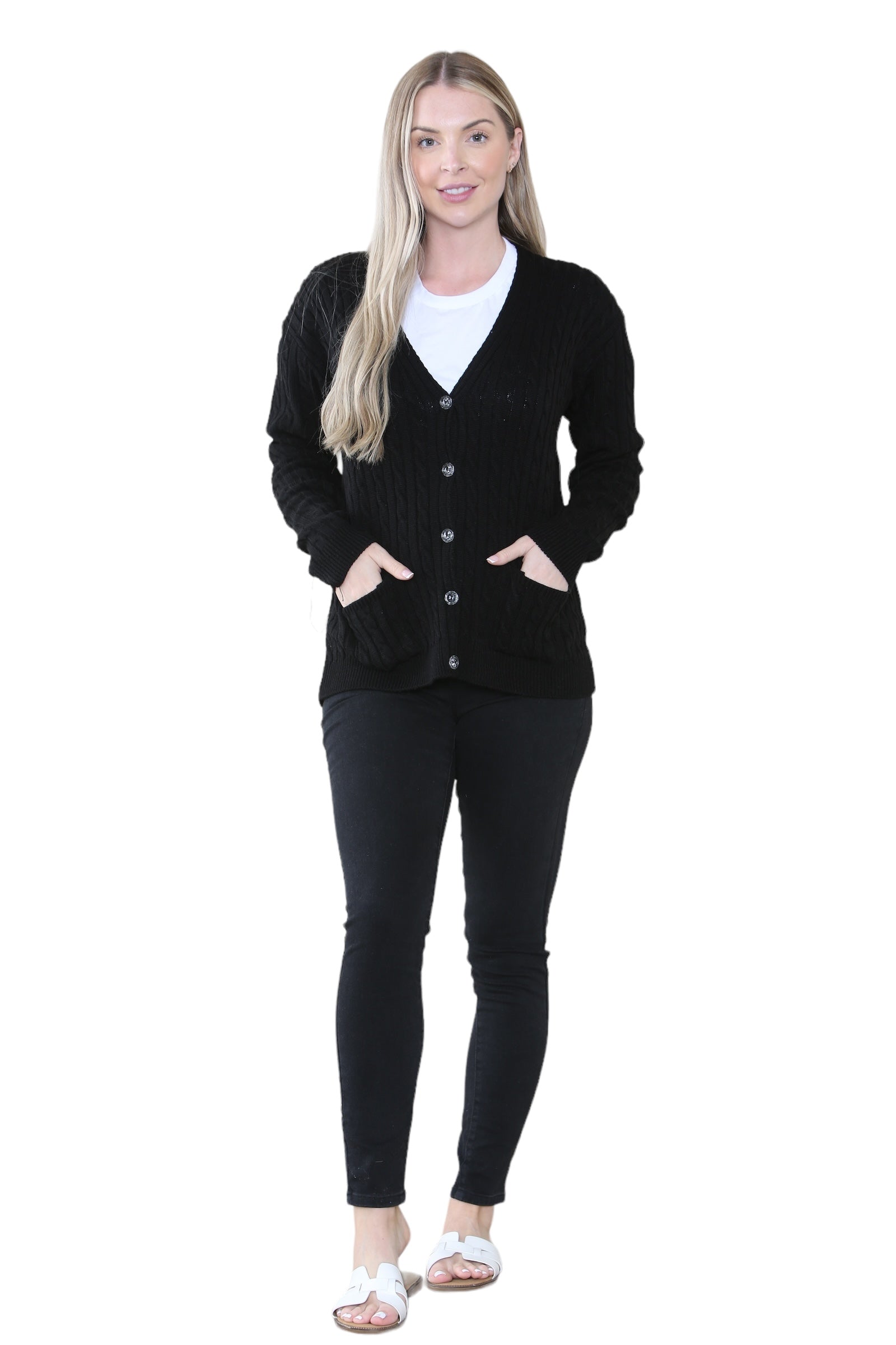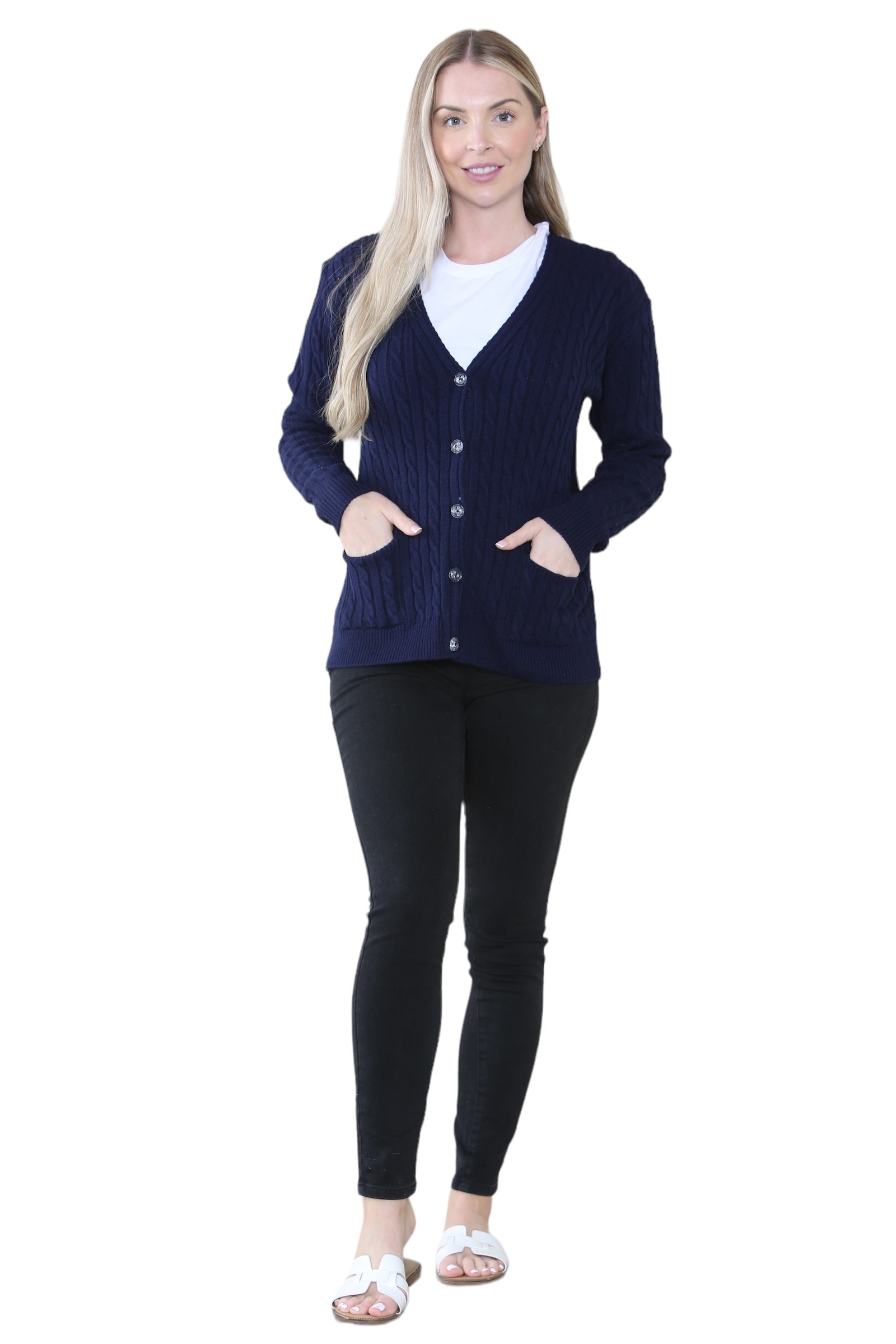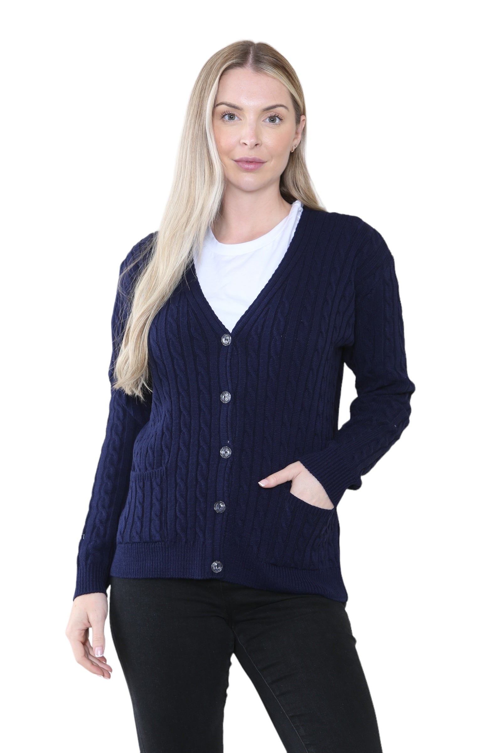 Women Long sleeve V Neck Cable Knit Button Cardigan Knitted Jumper