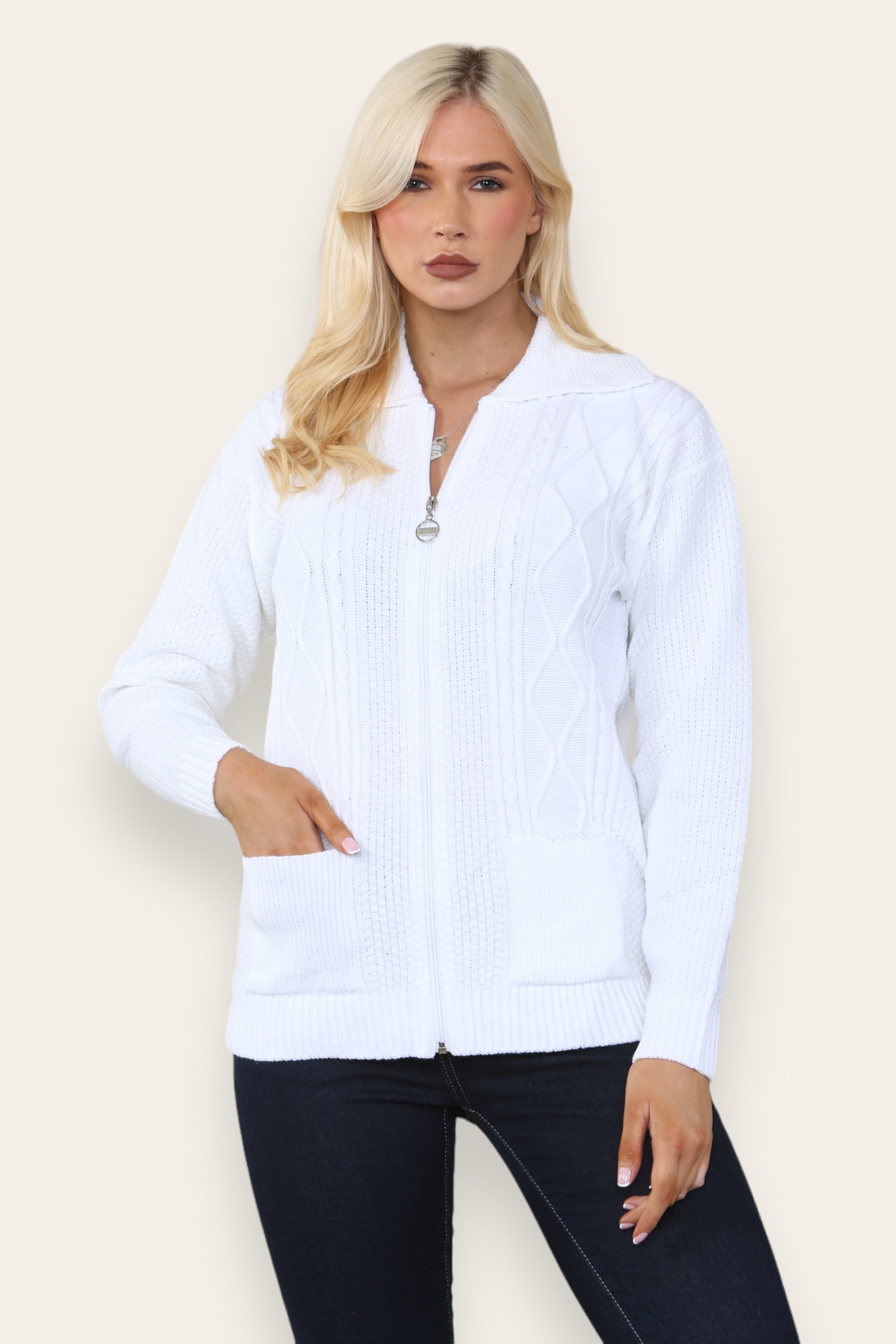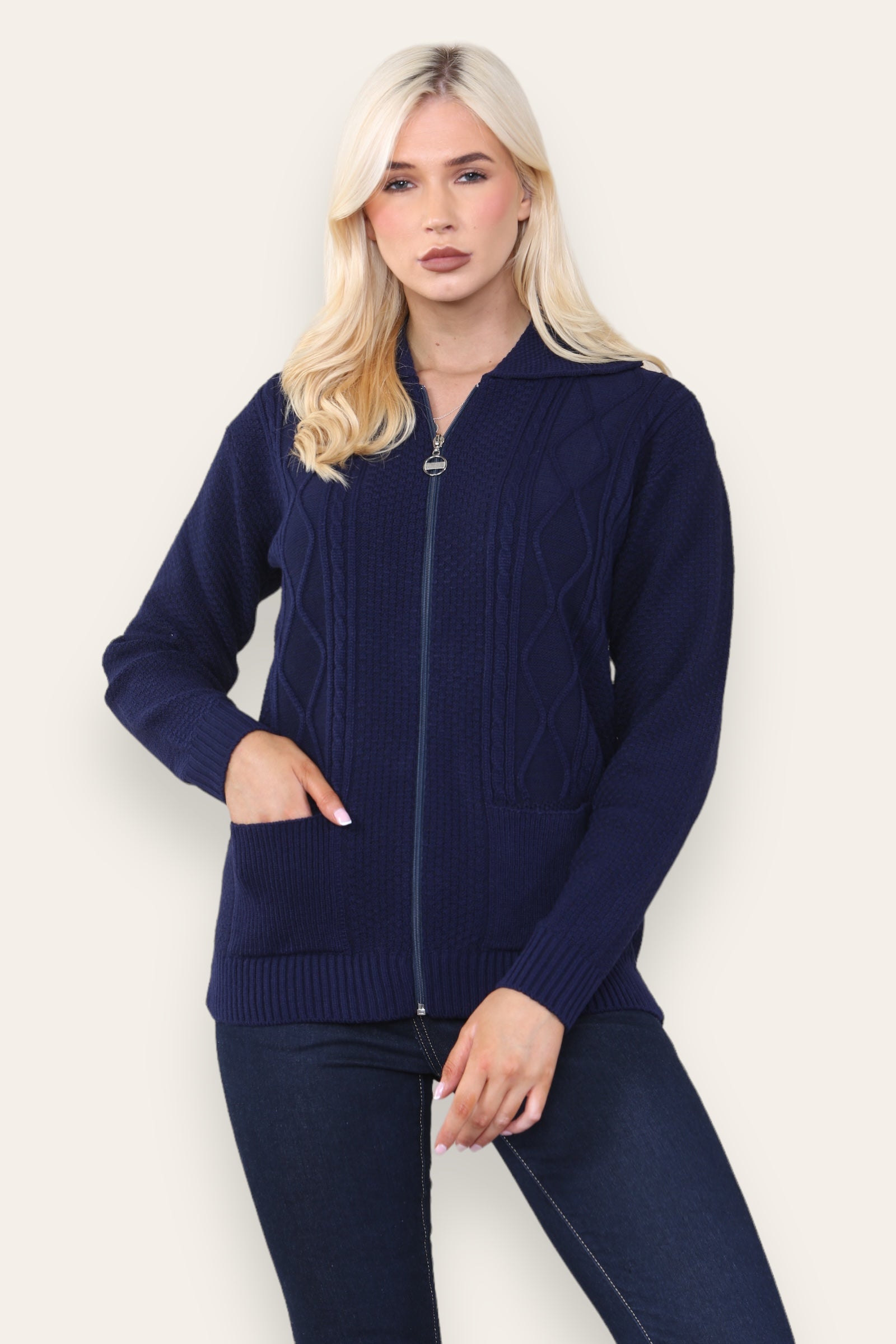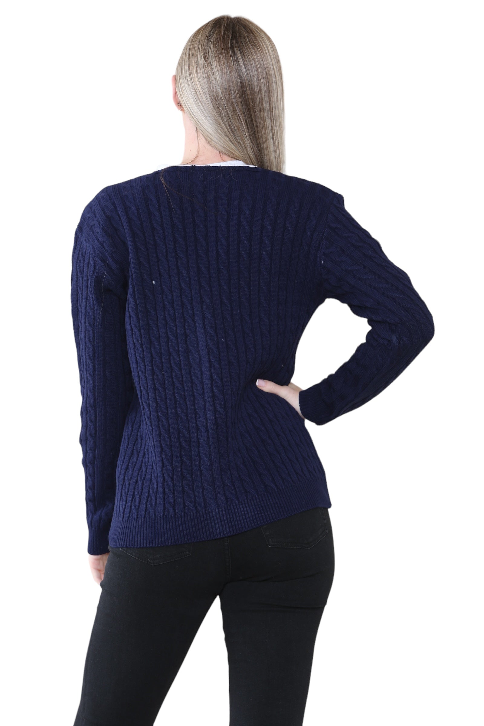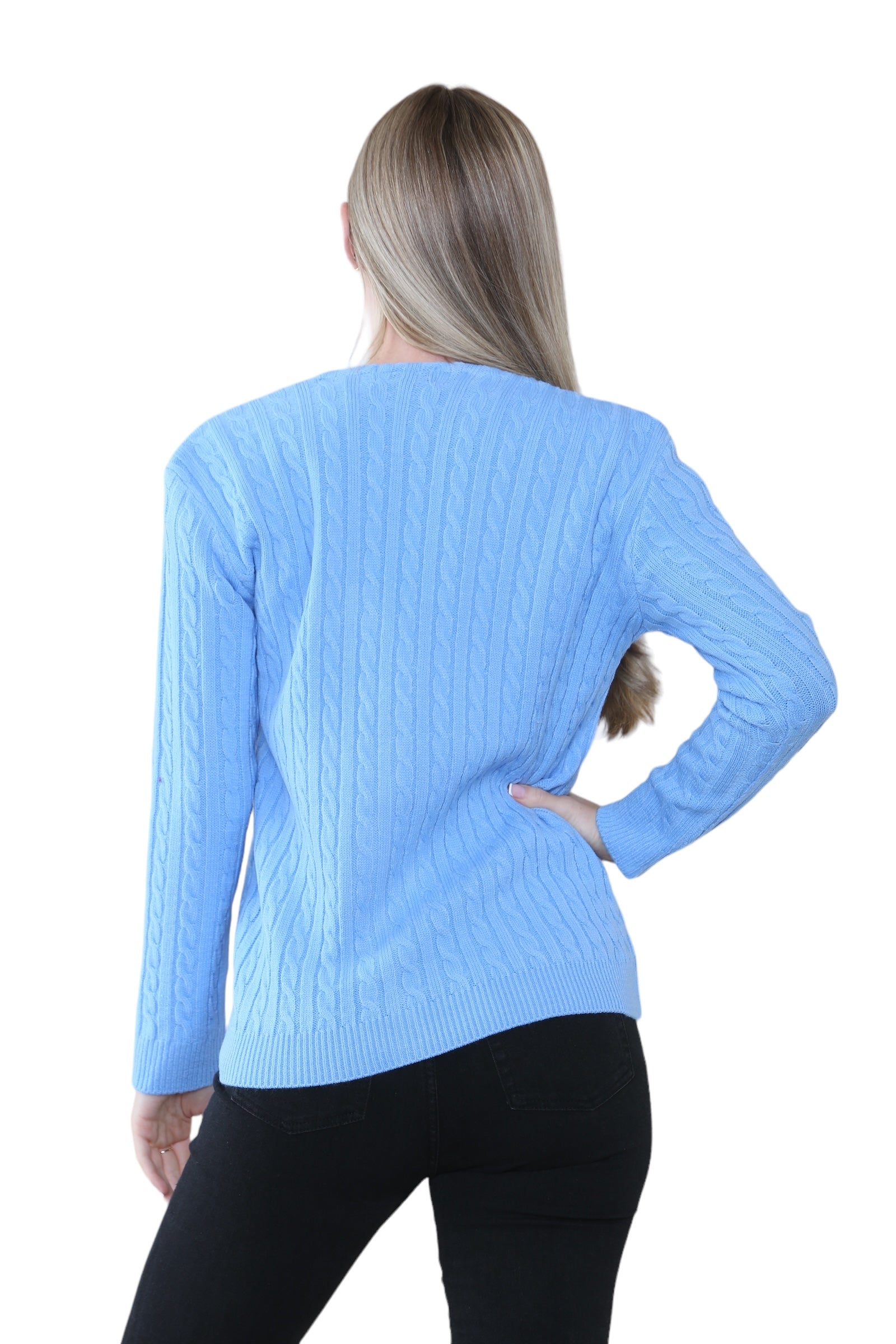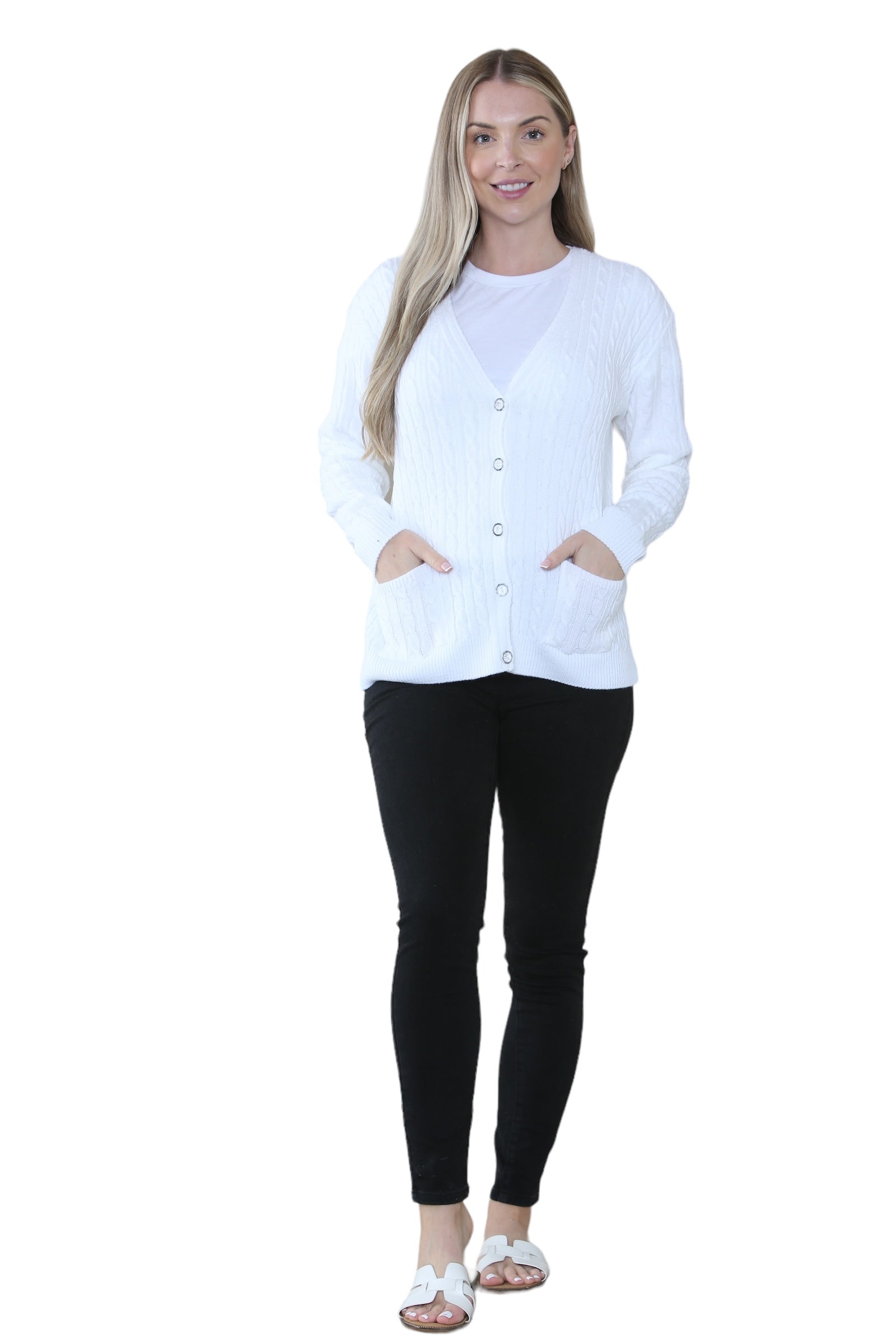 Women Long sleeve V Neck Cable Knit Button Cardigan Knitted Jumper