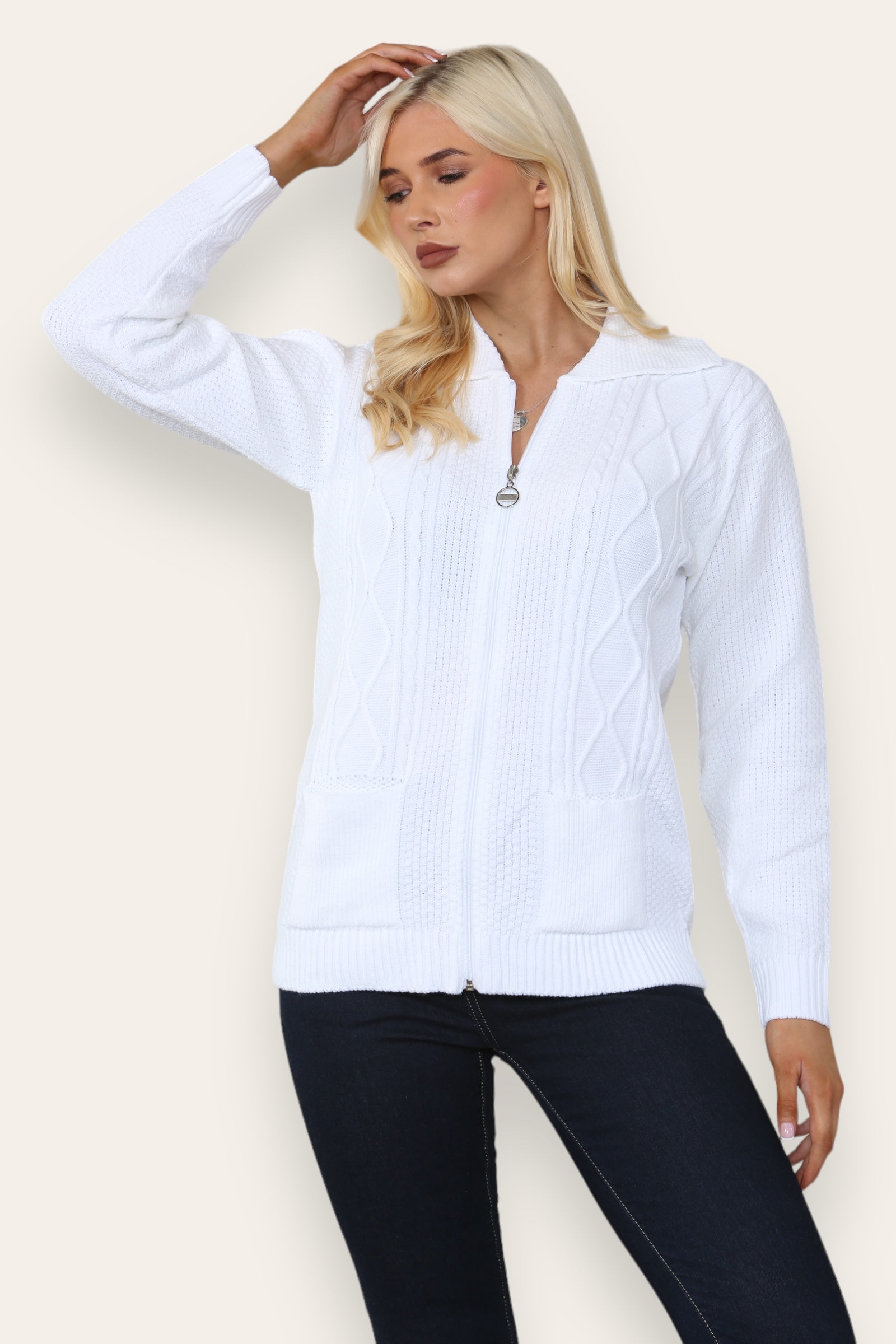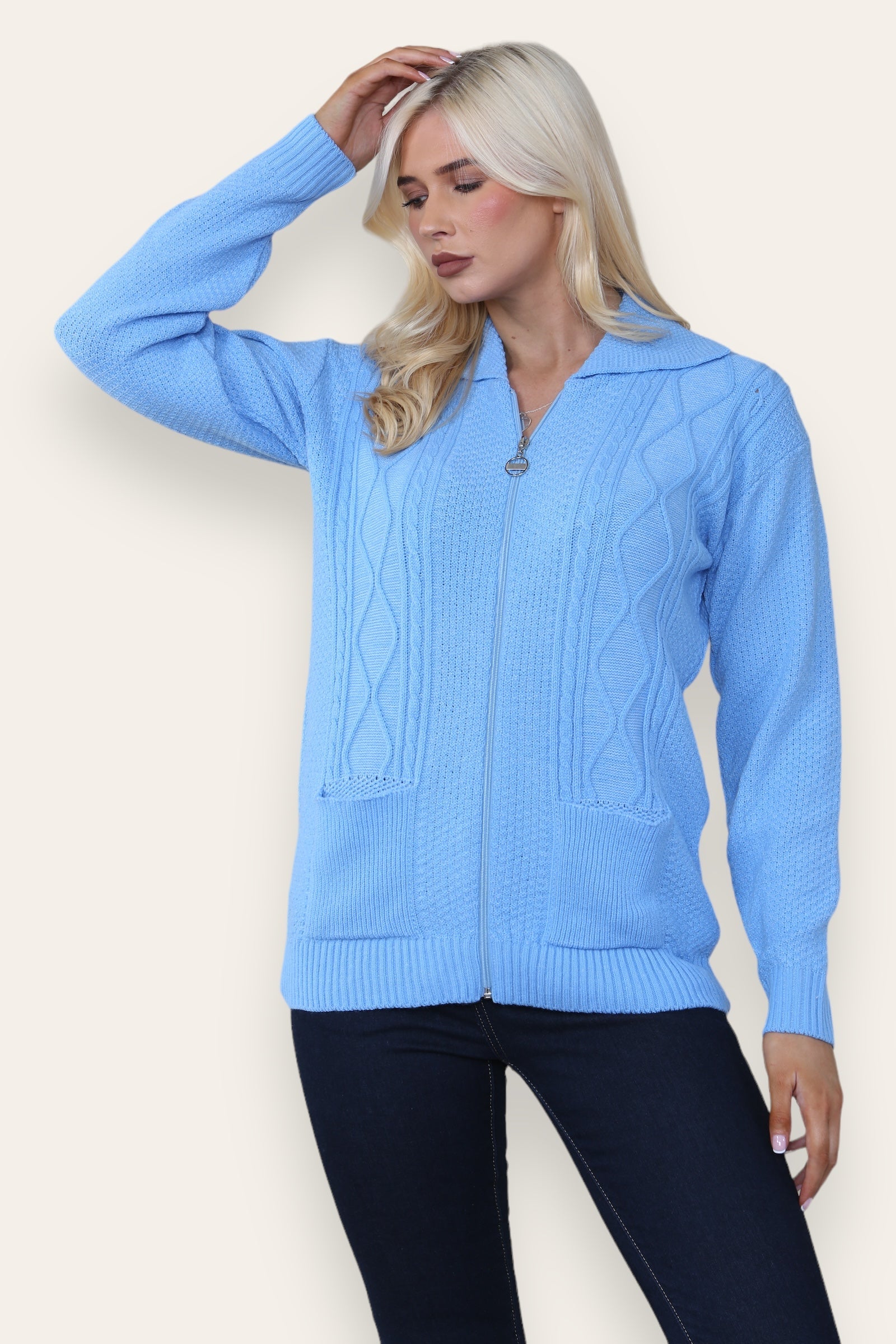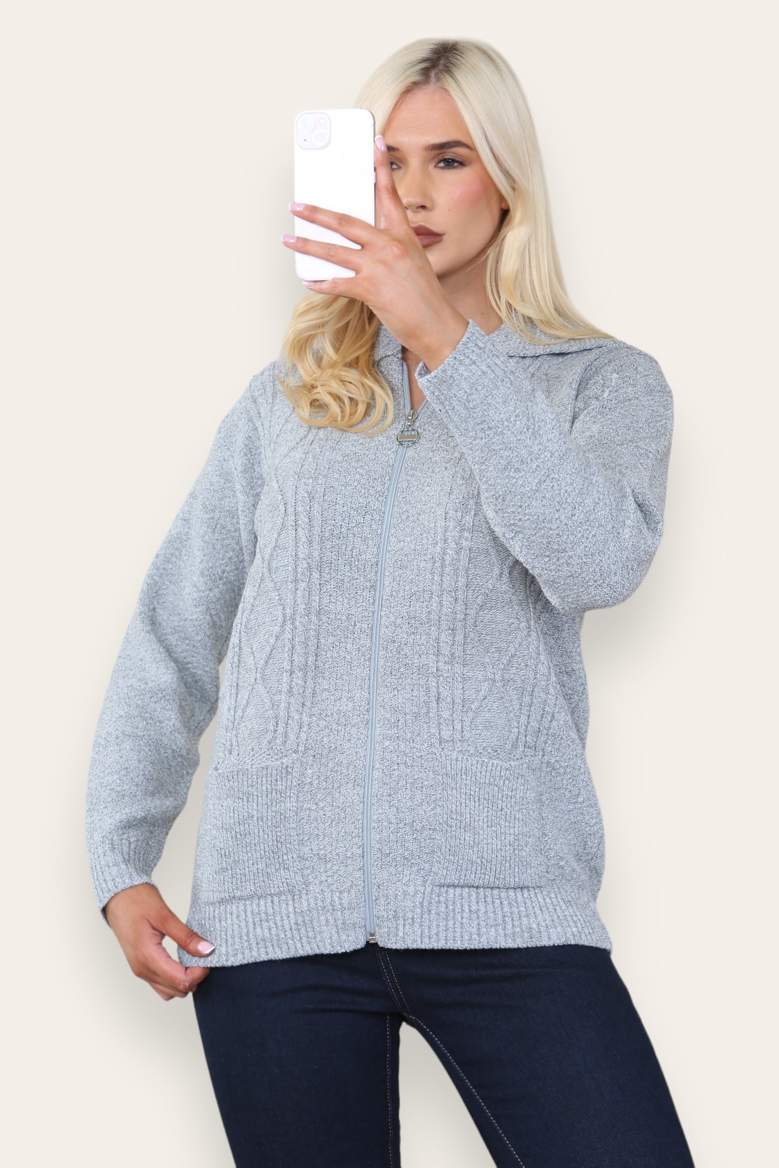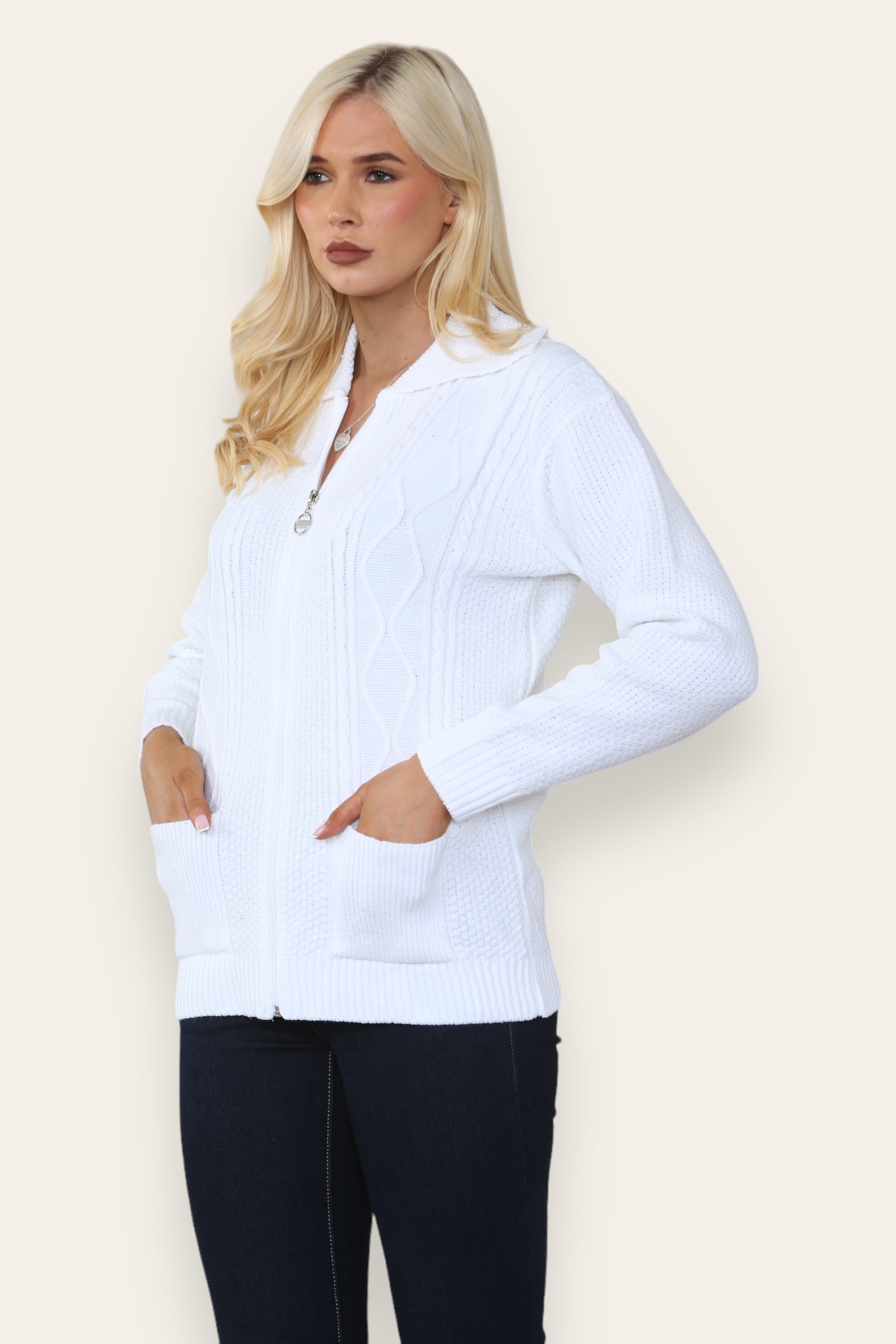 Women Long sleeve V Neck Cable Knit Button Cardigan Knitted Jumper