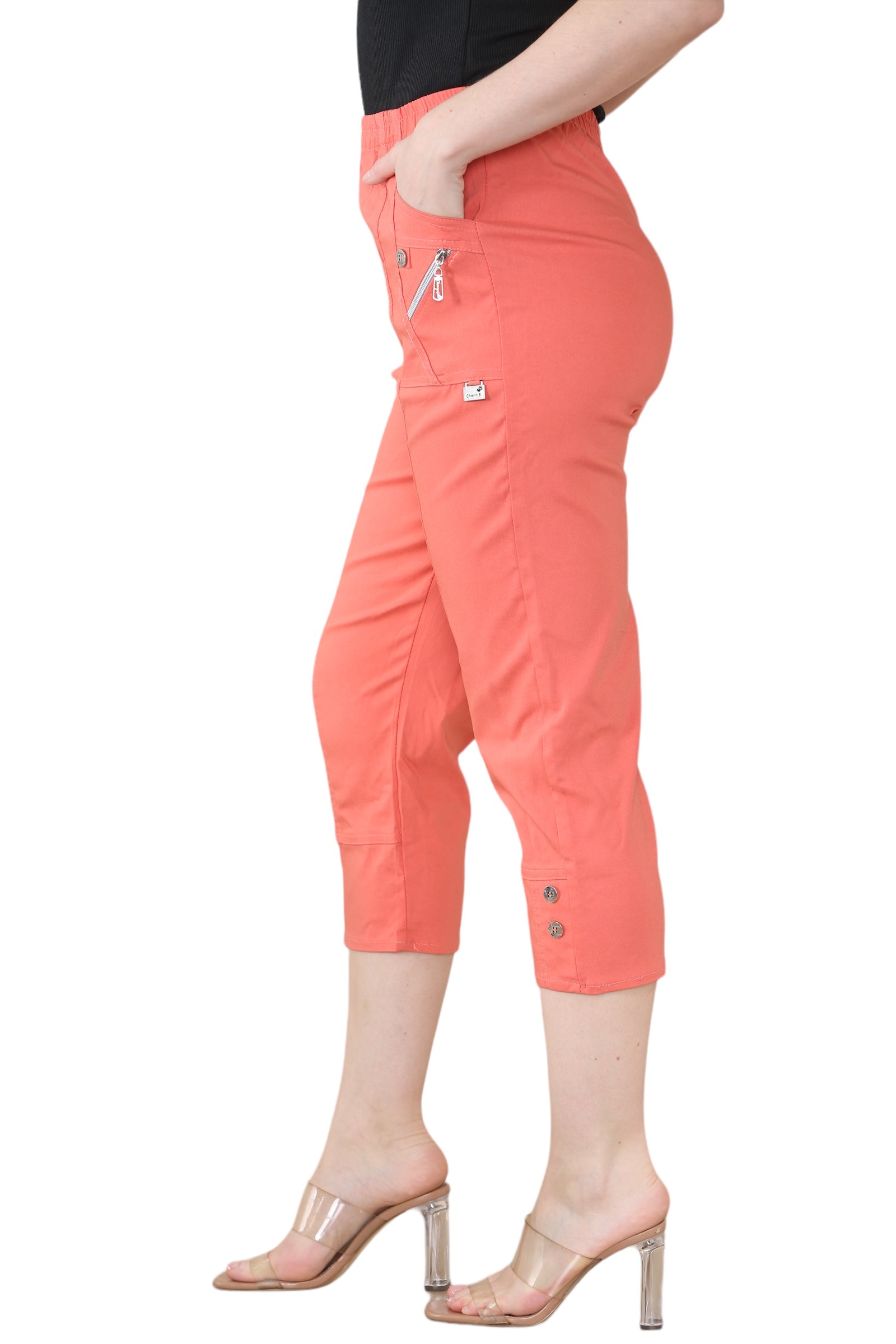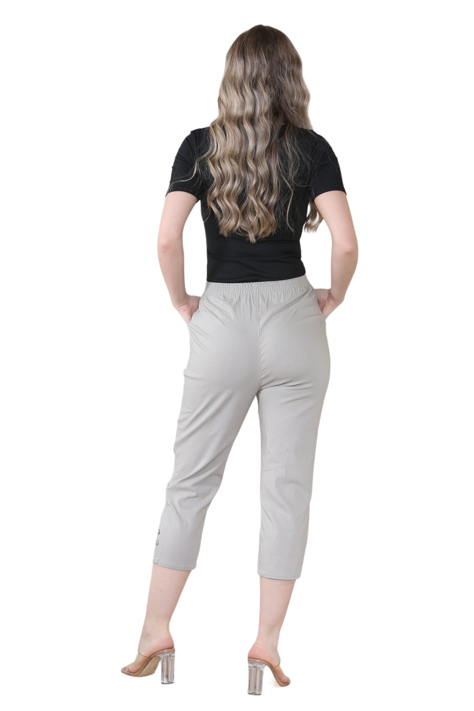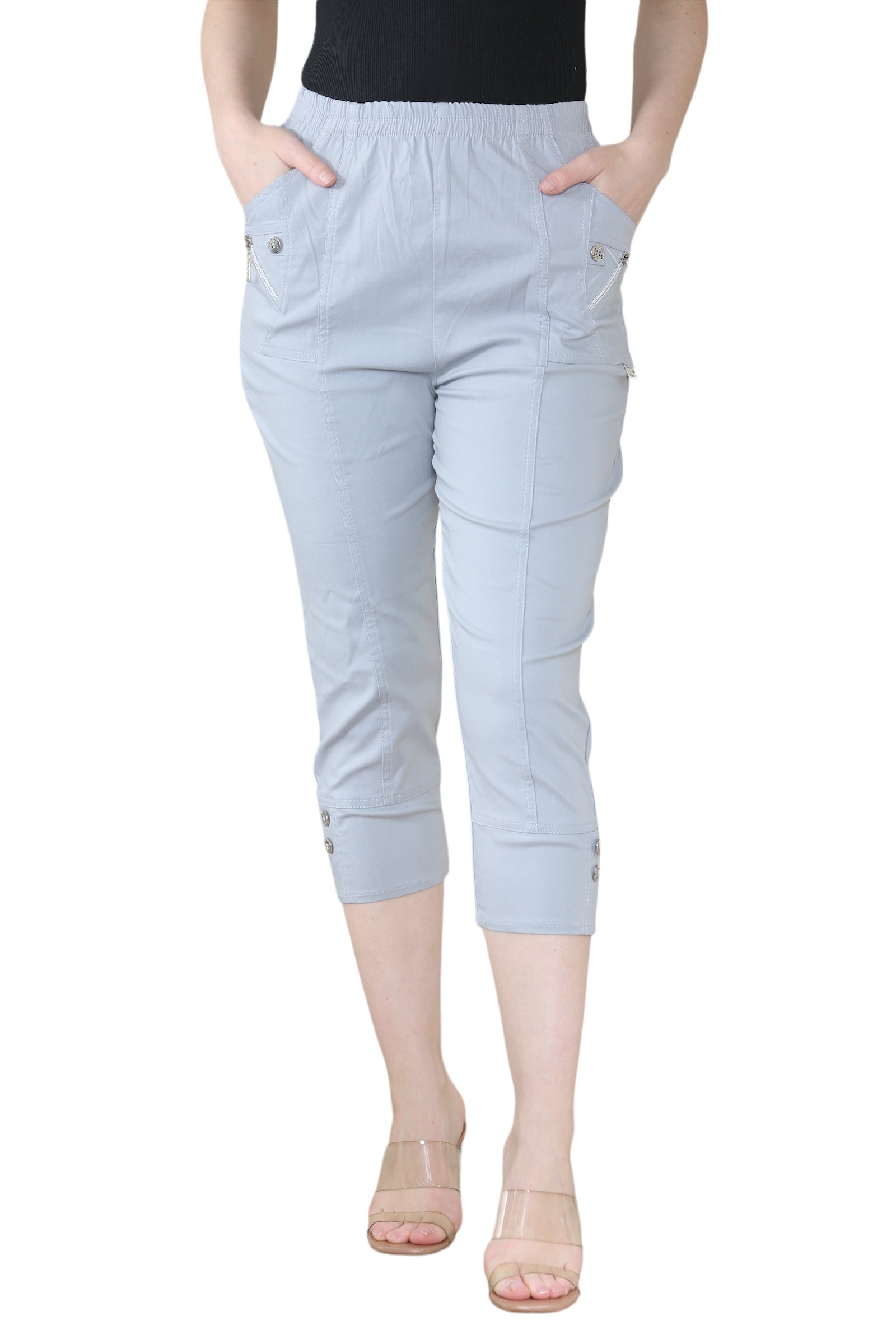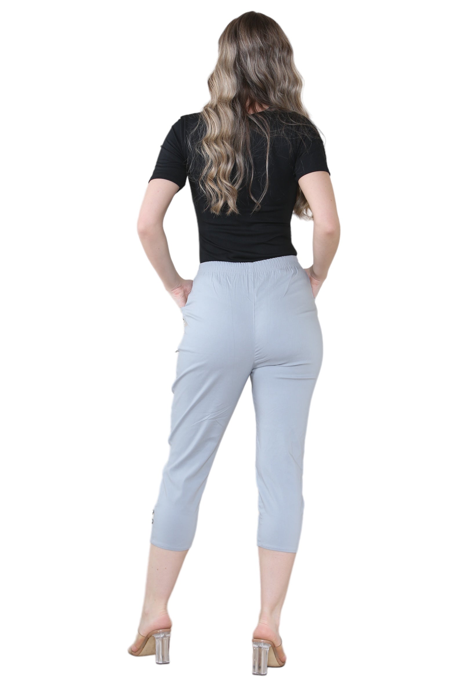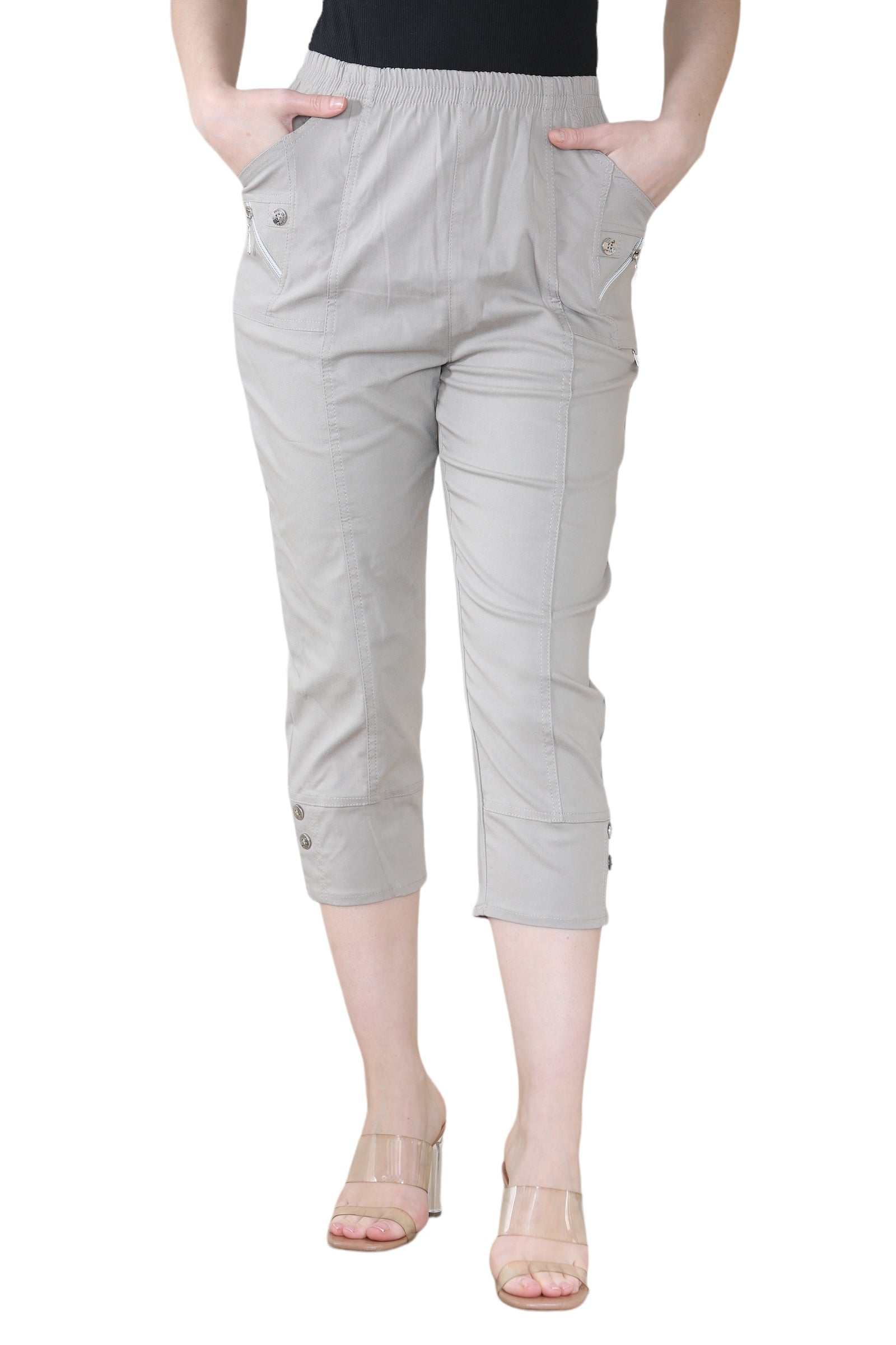 Cargo Pockets Pants Women High Waist Cropped Slim Fit Trouser