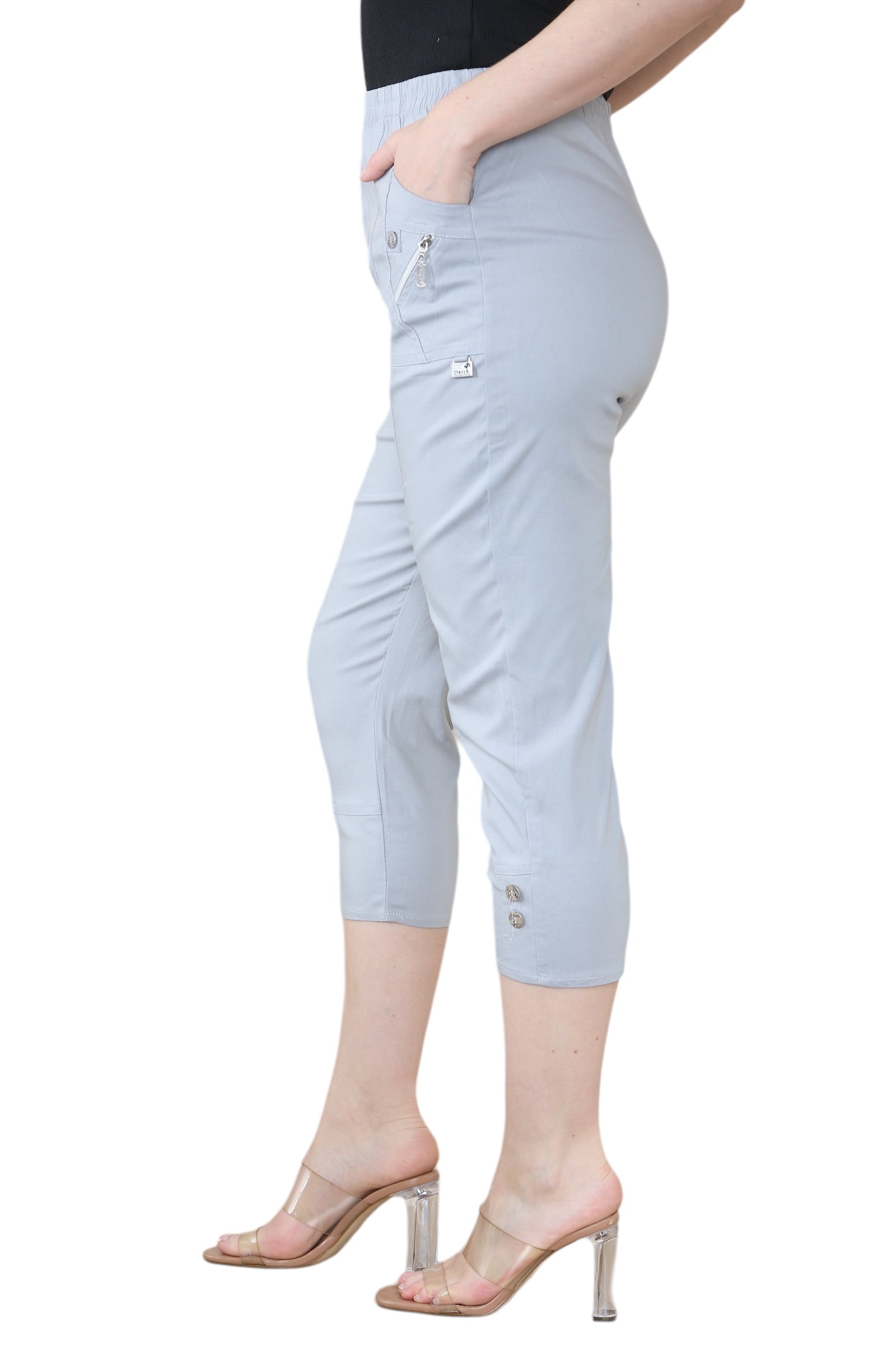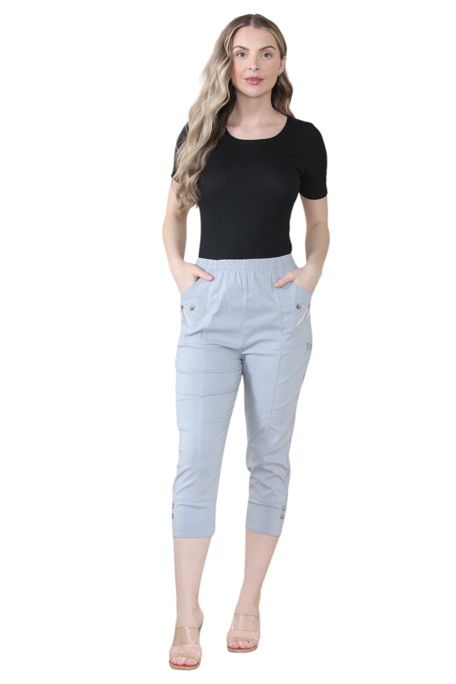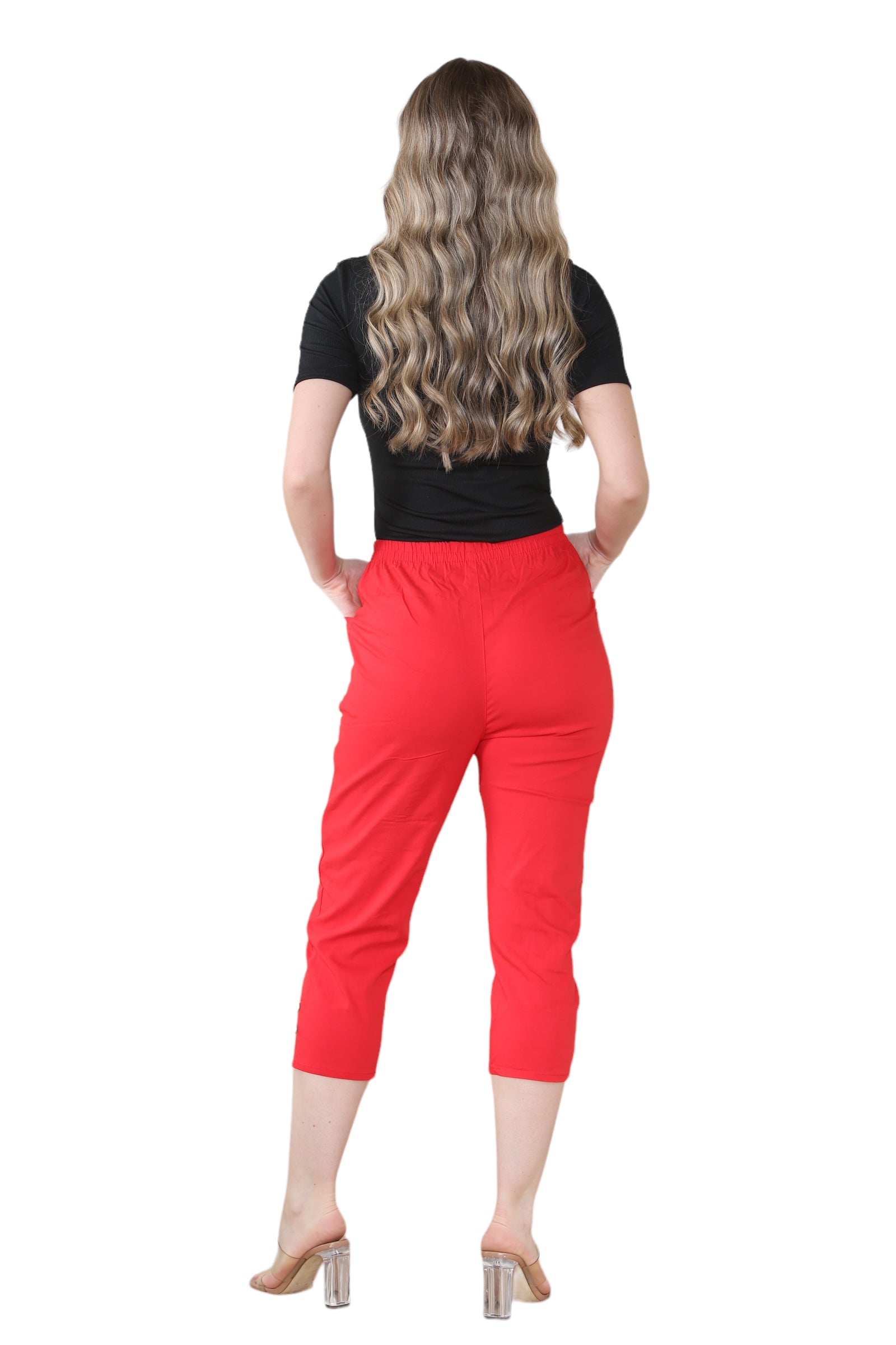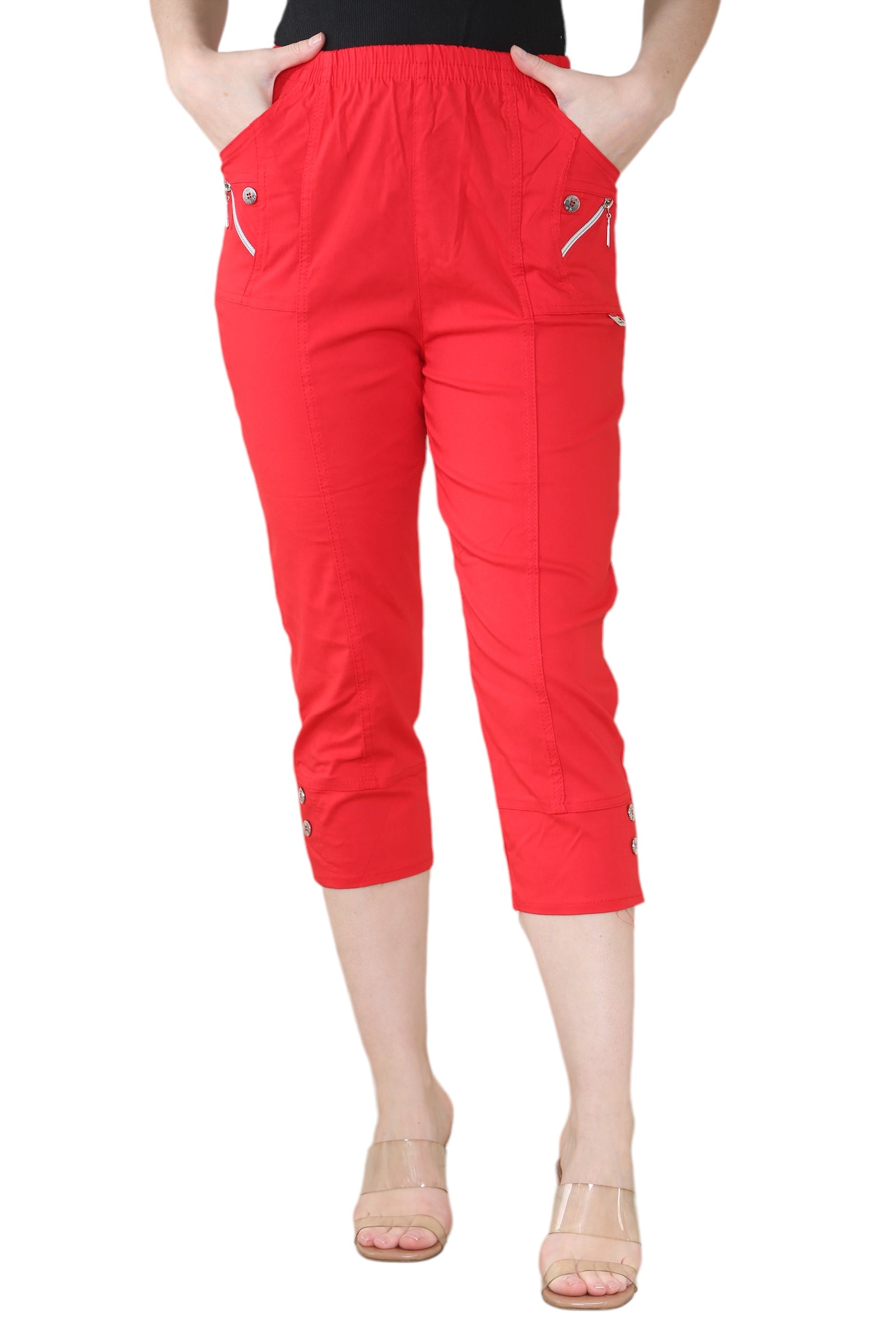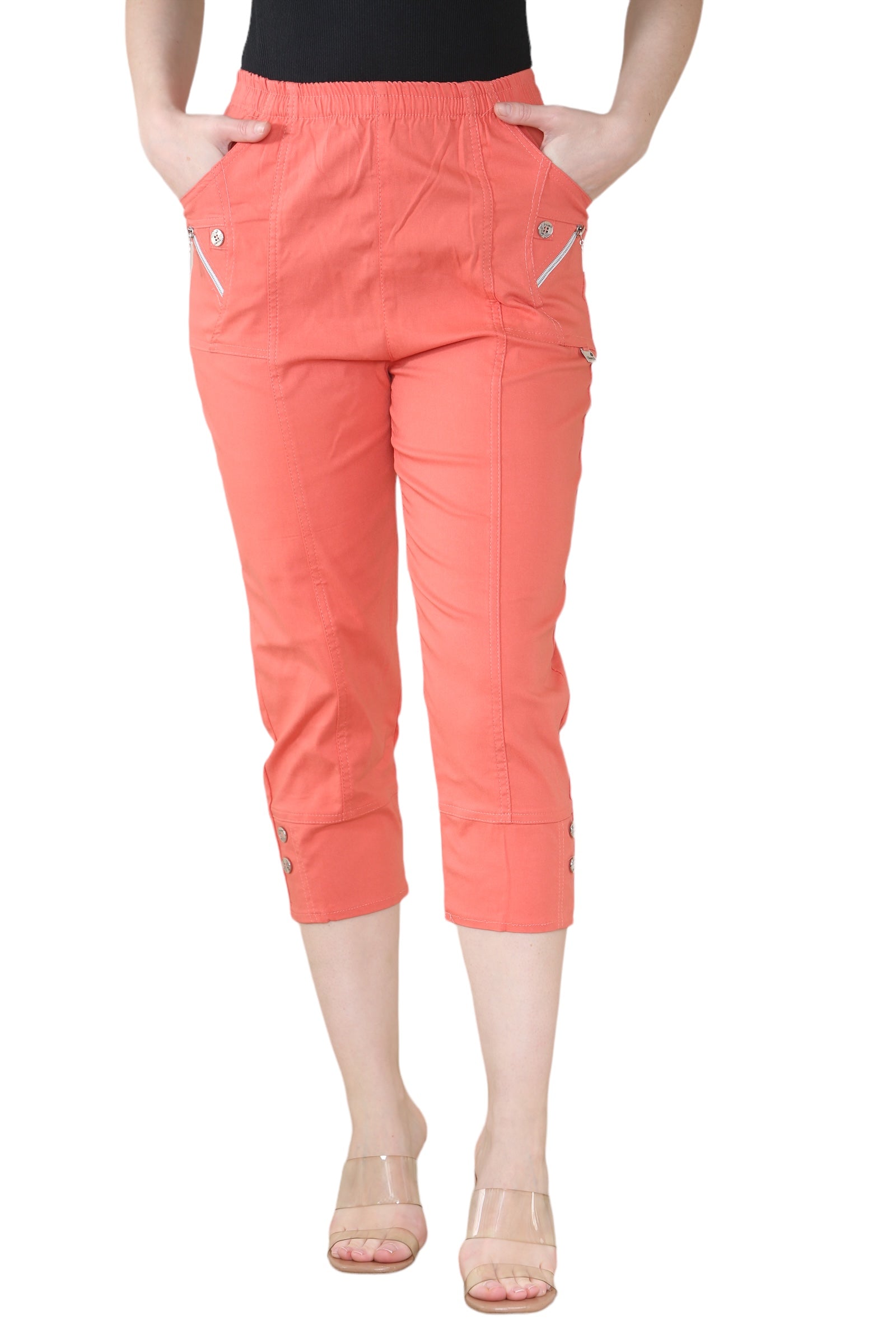Cargo Pockets Pants Women High Waist Cropped Slim Fit Trouser