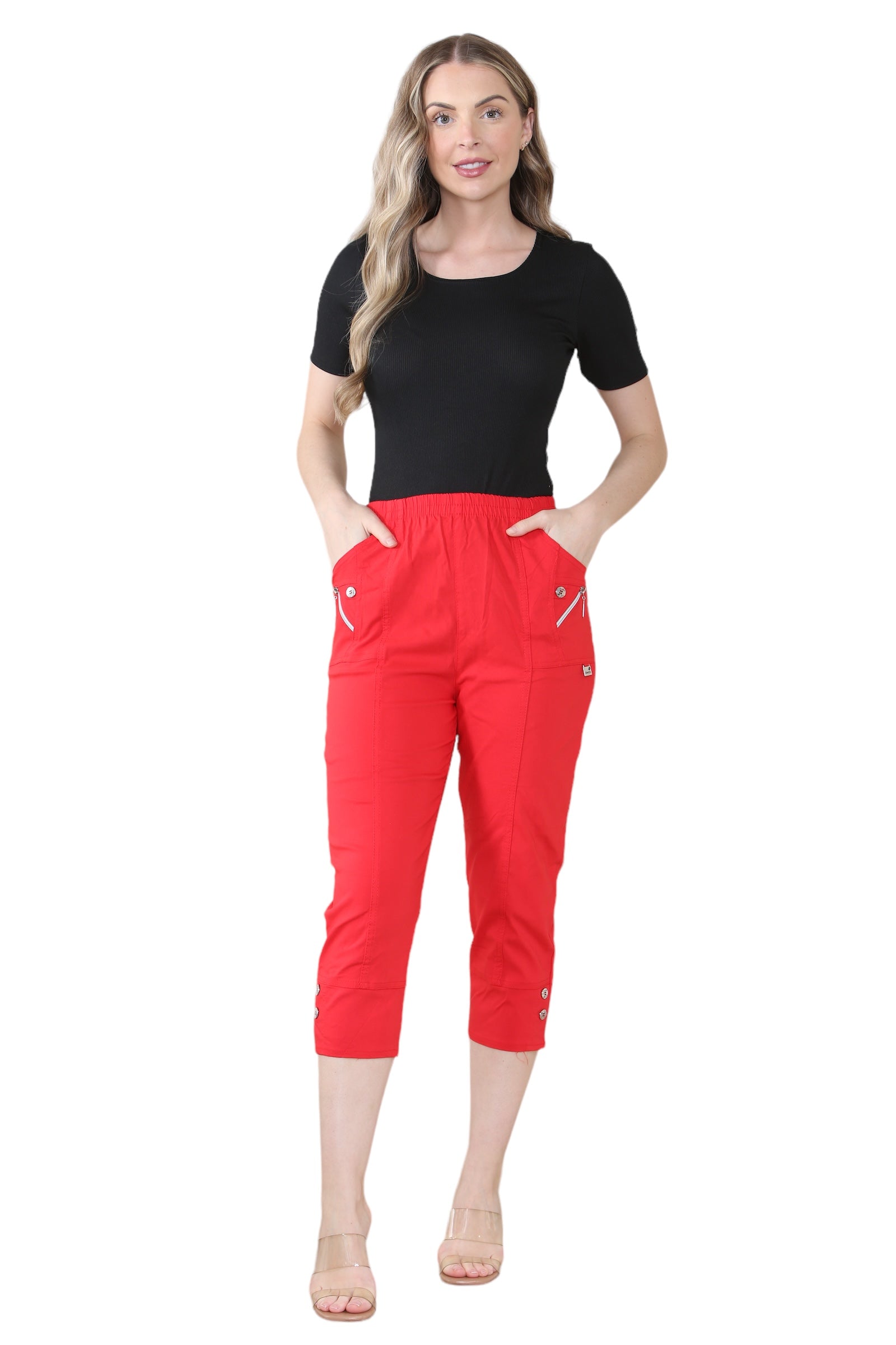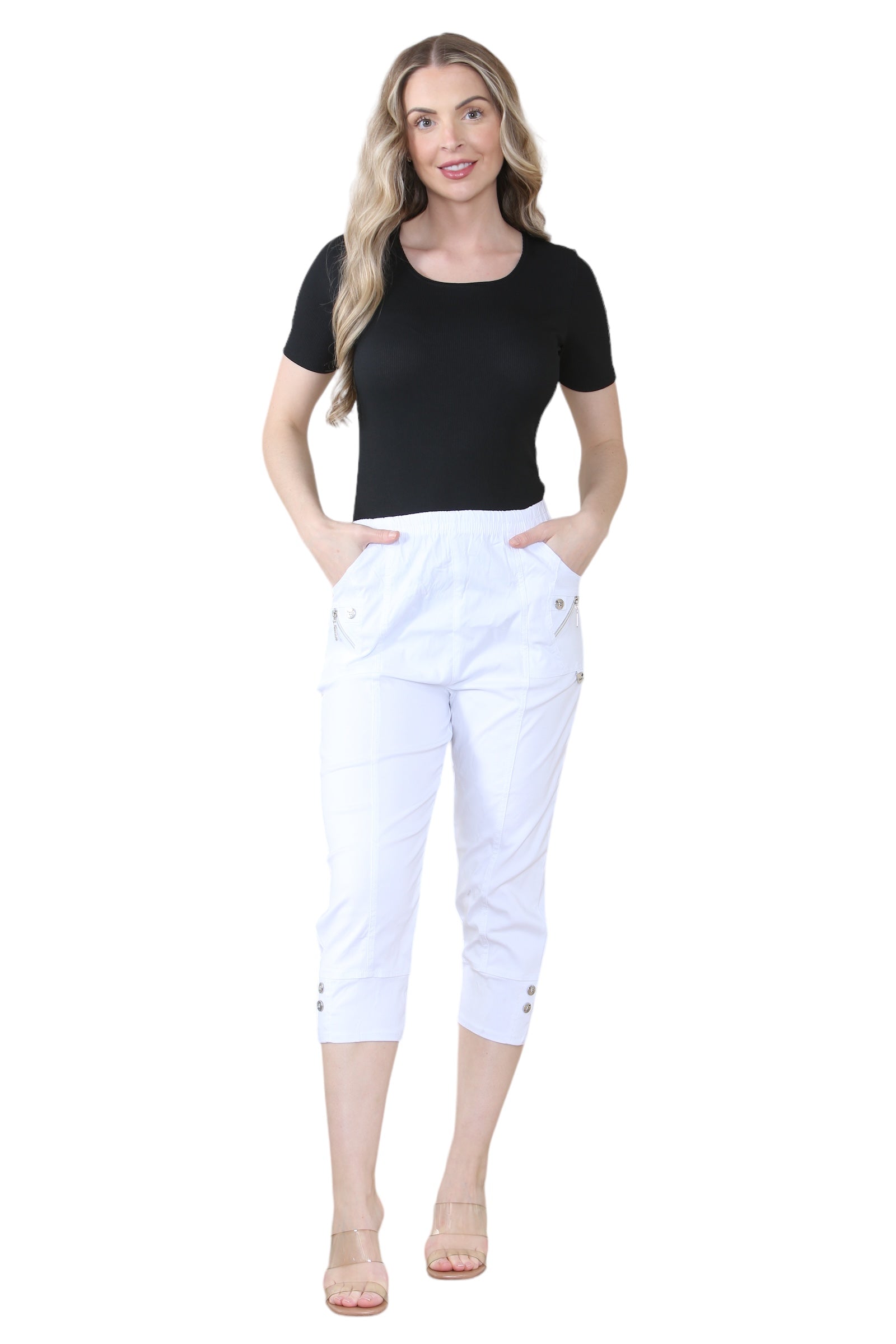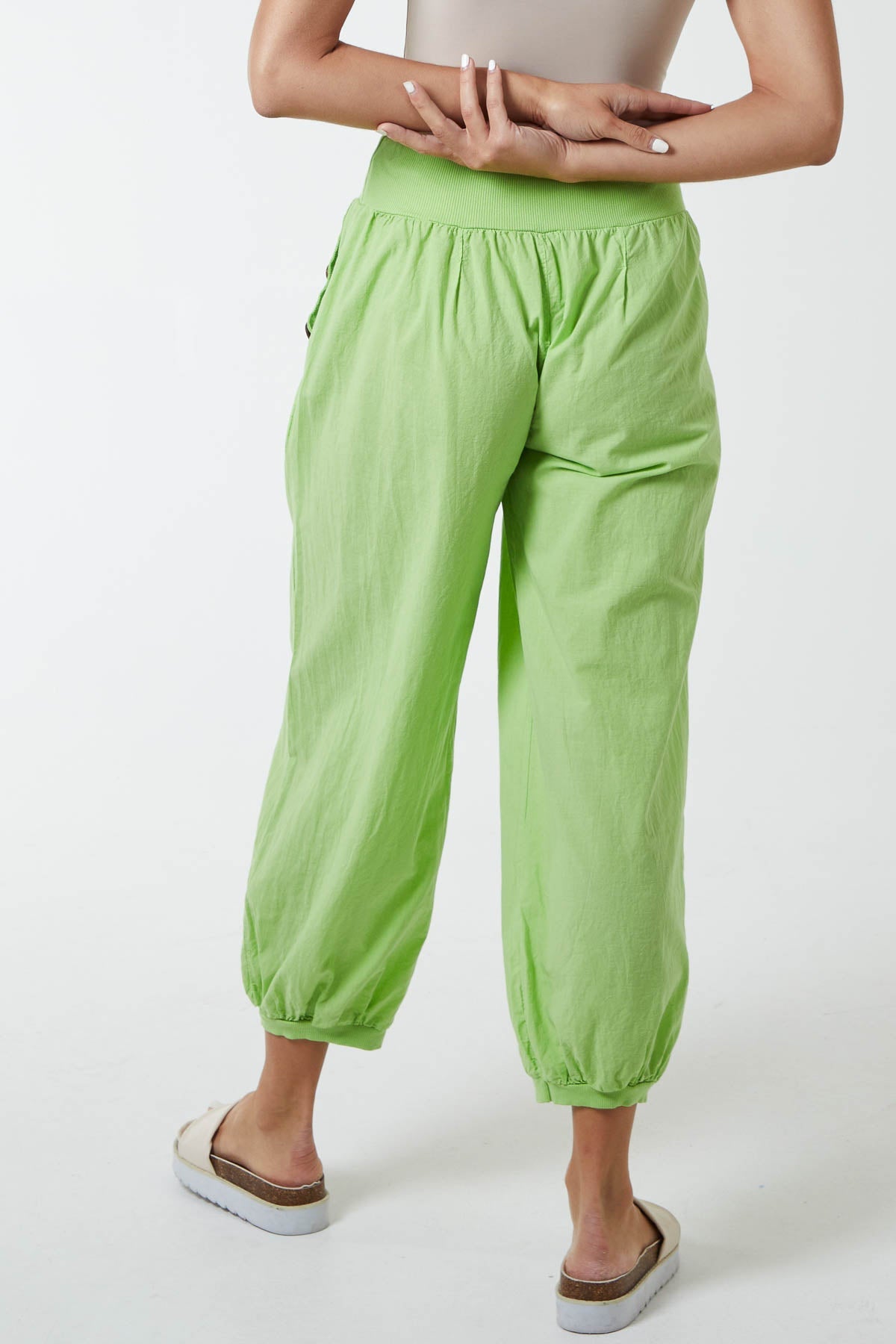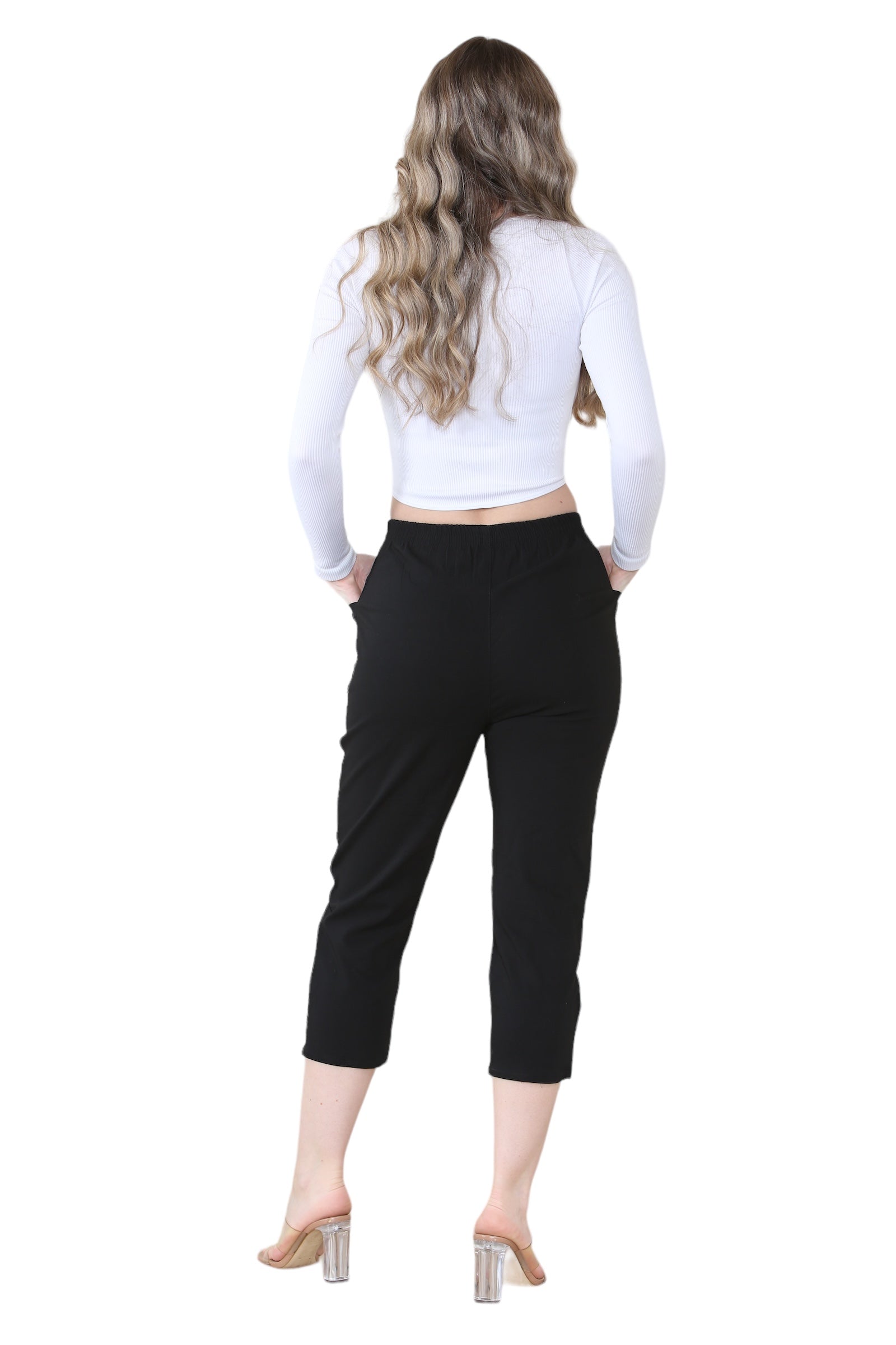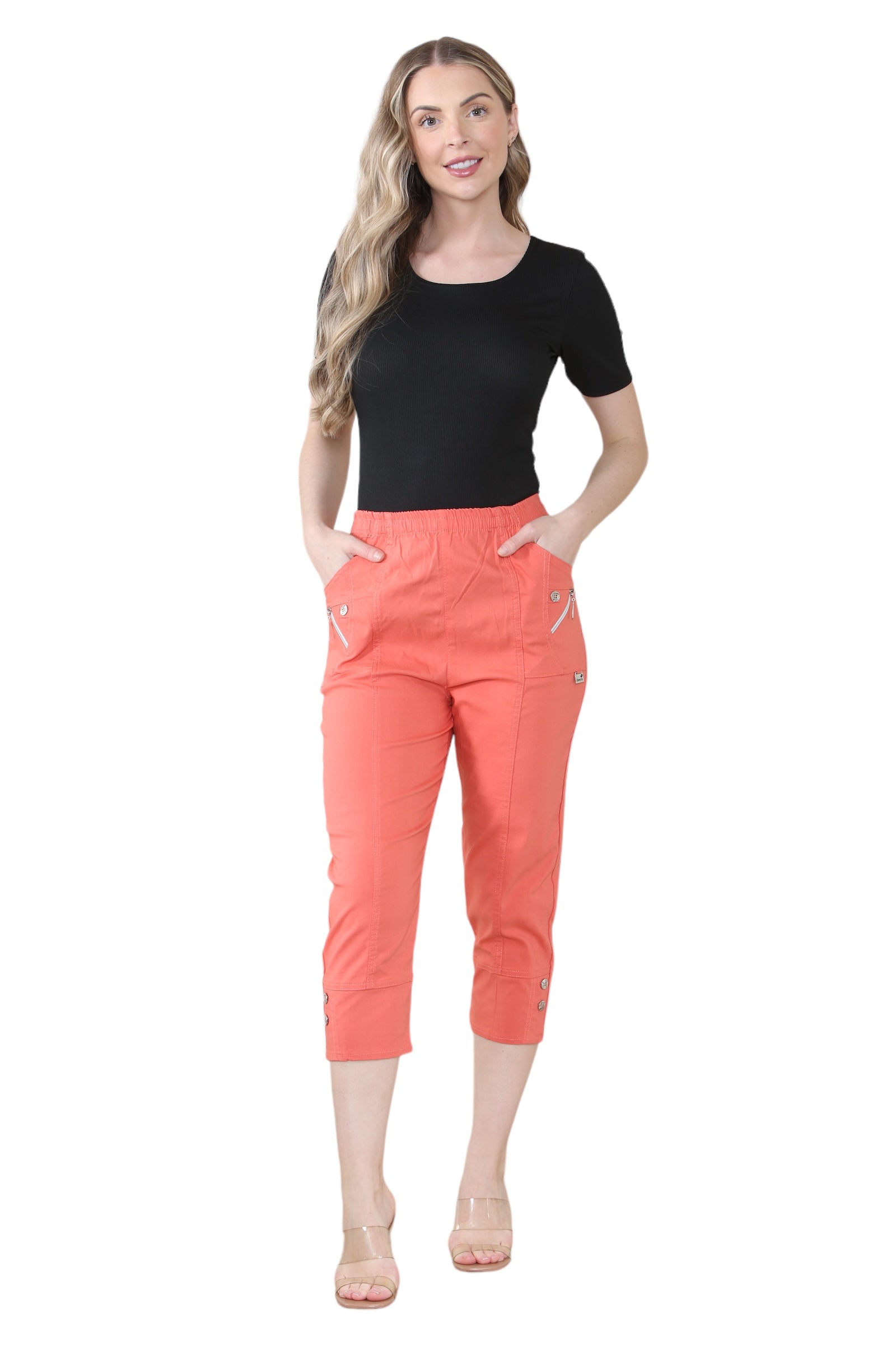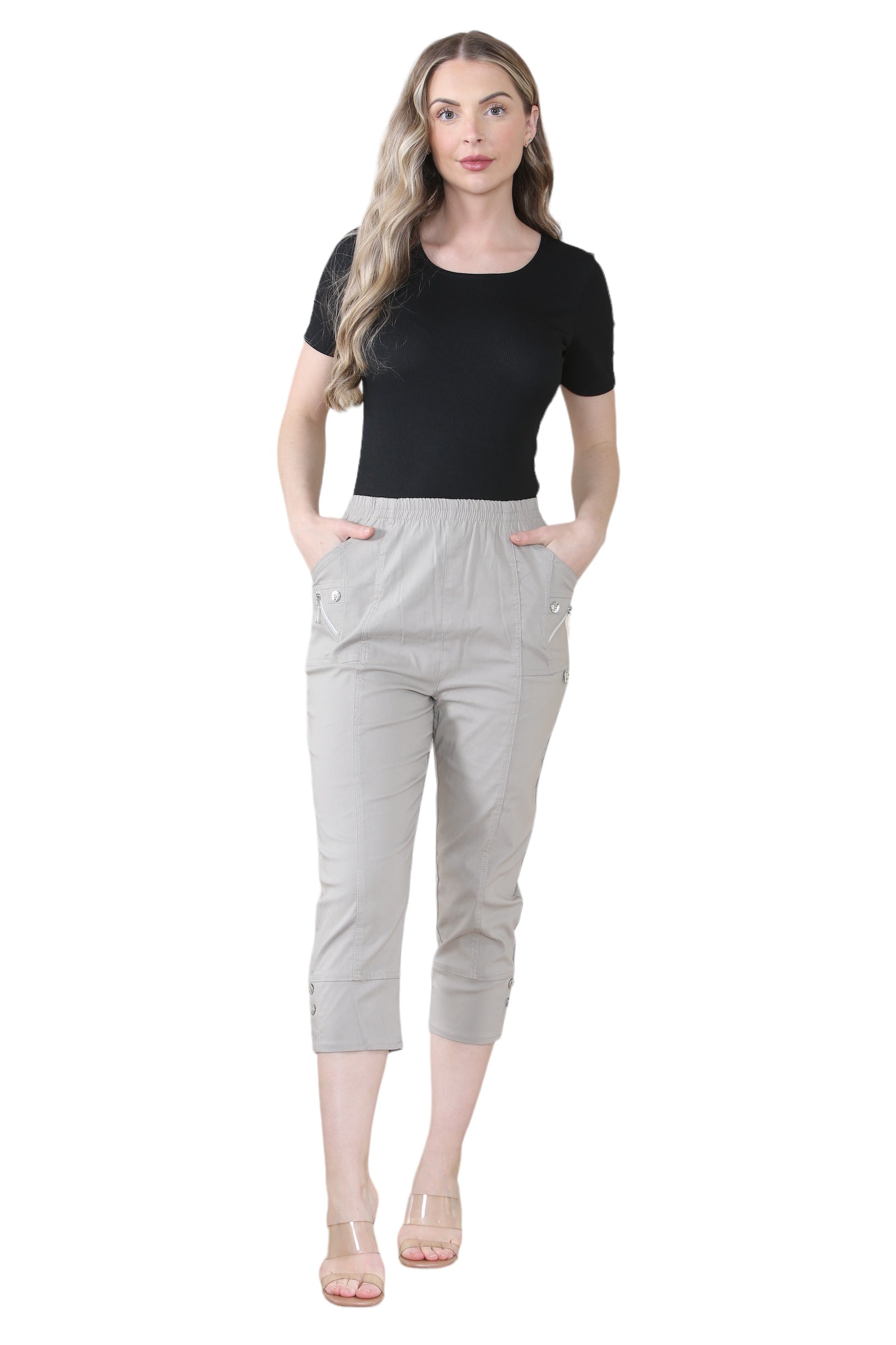 Cargo Pockets Pants Women High Waist Cropped Slim Fit Trouser
