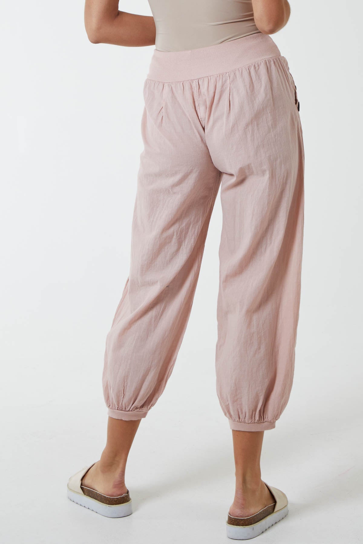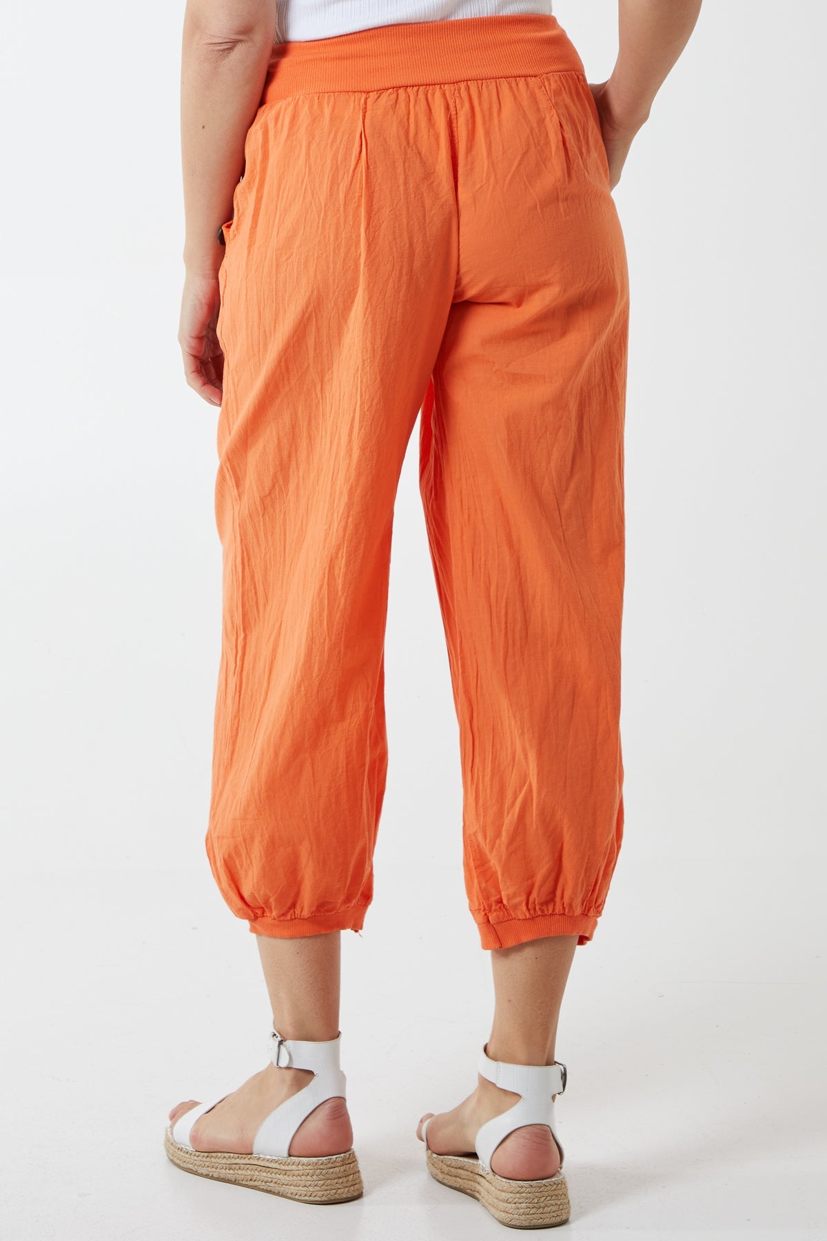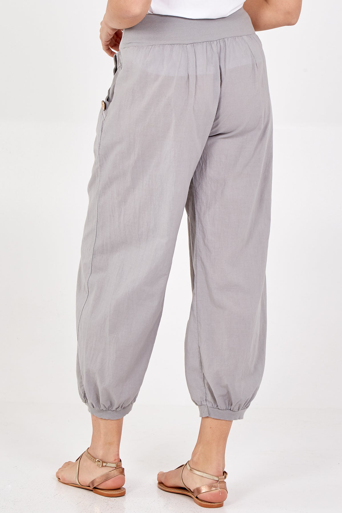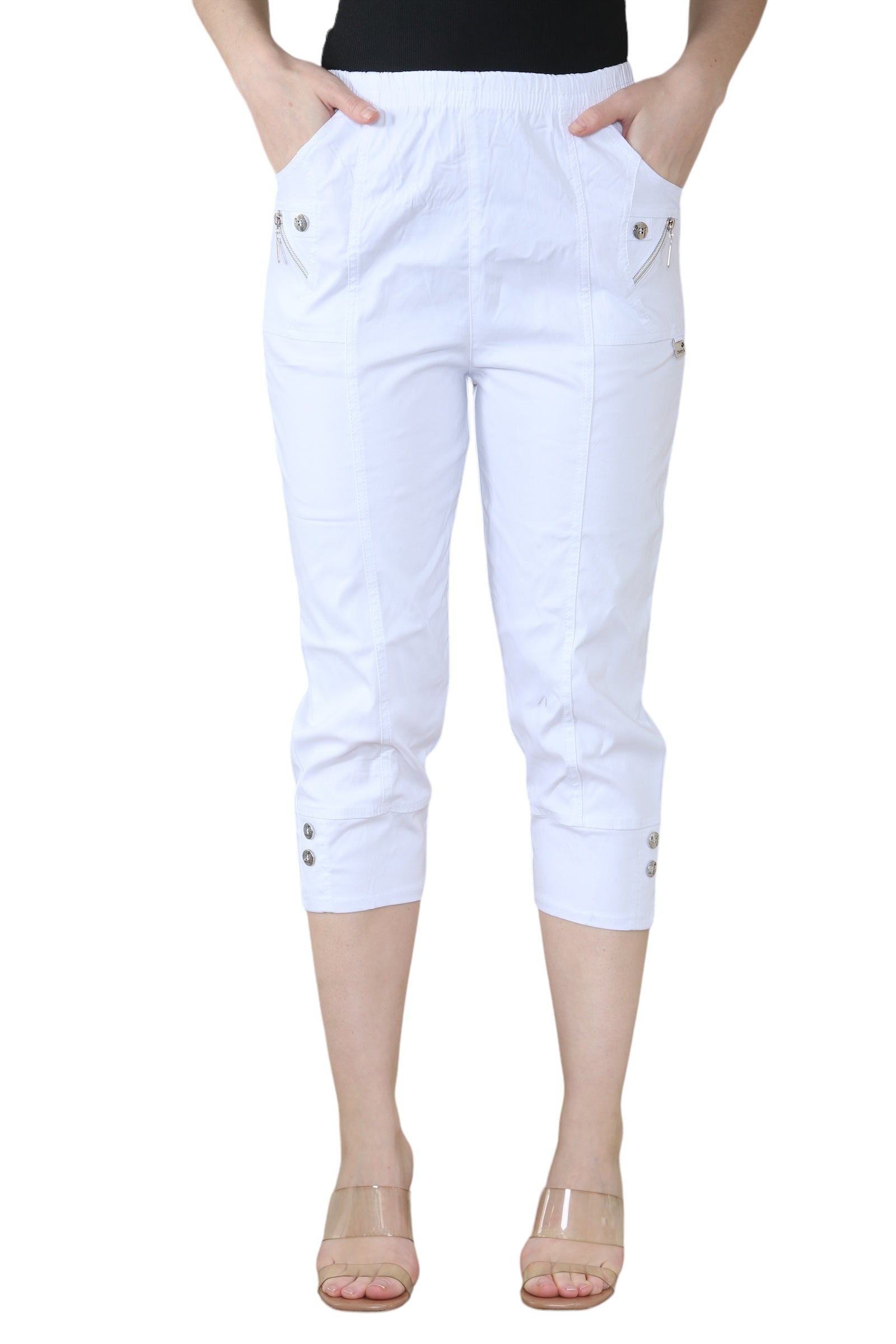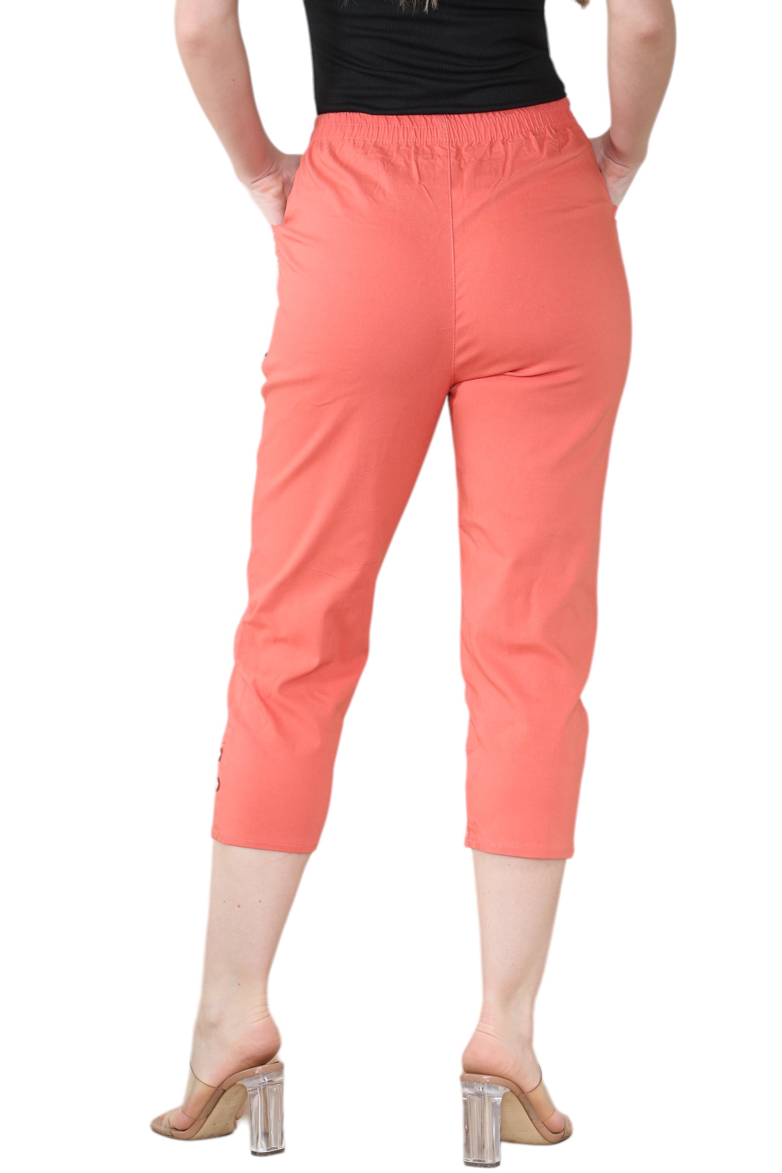 Cargo Pockets Pants Women High Waist Cropped Slim Fit Trouser