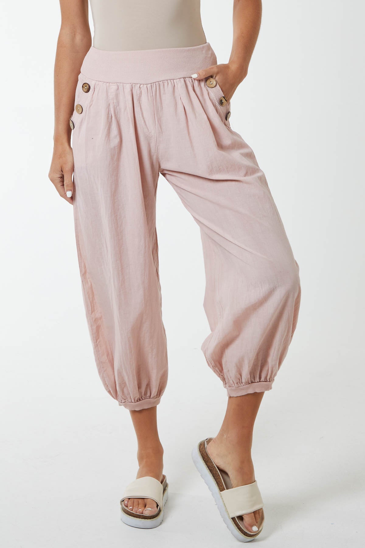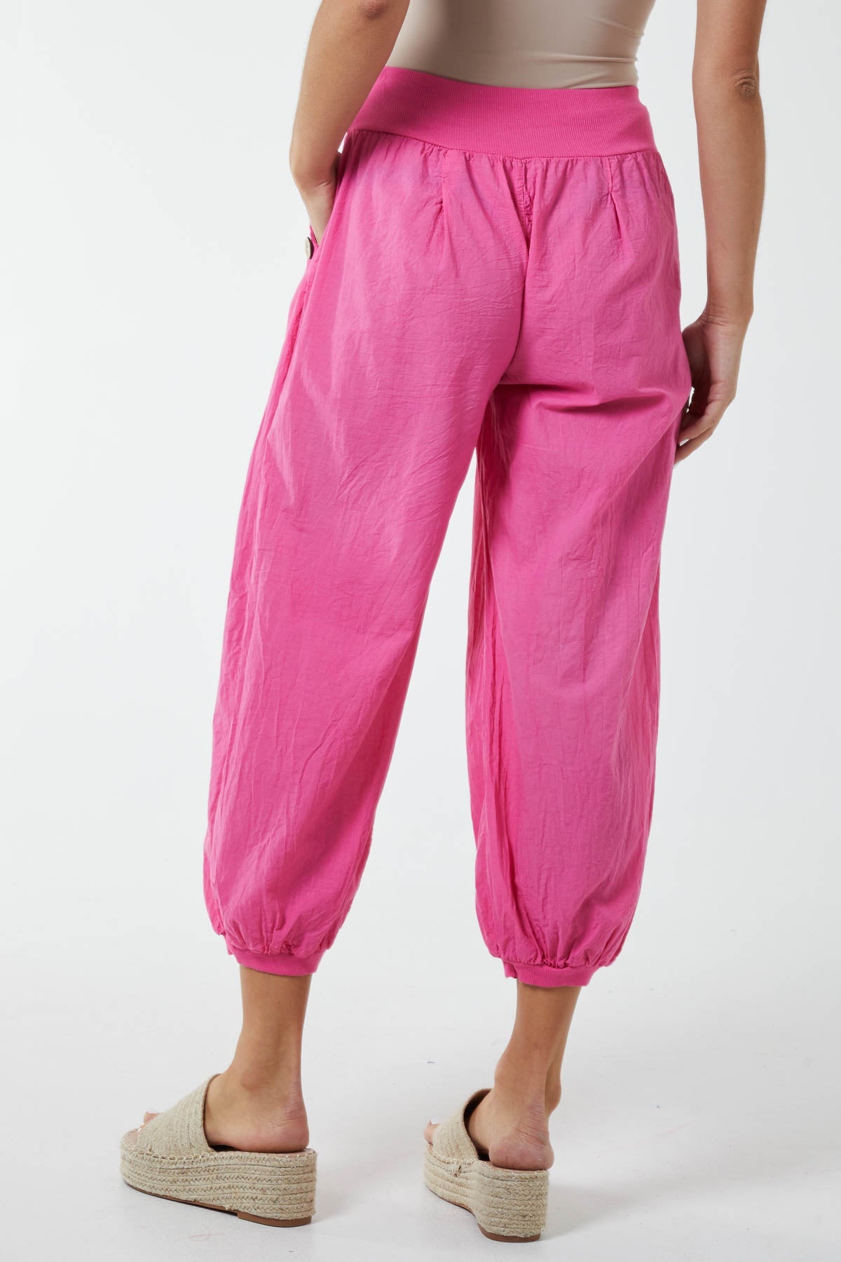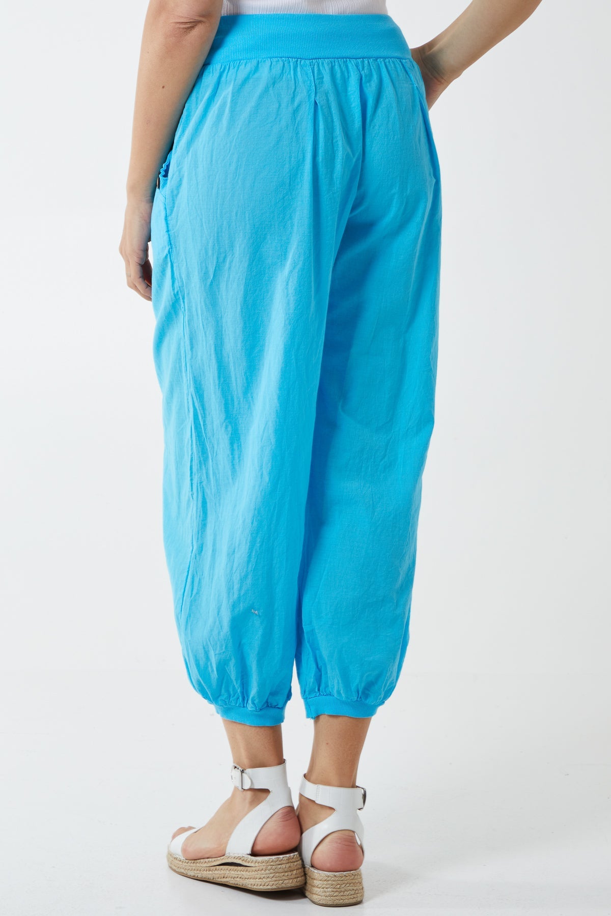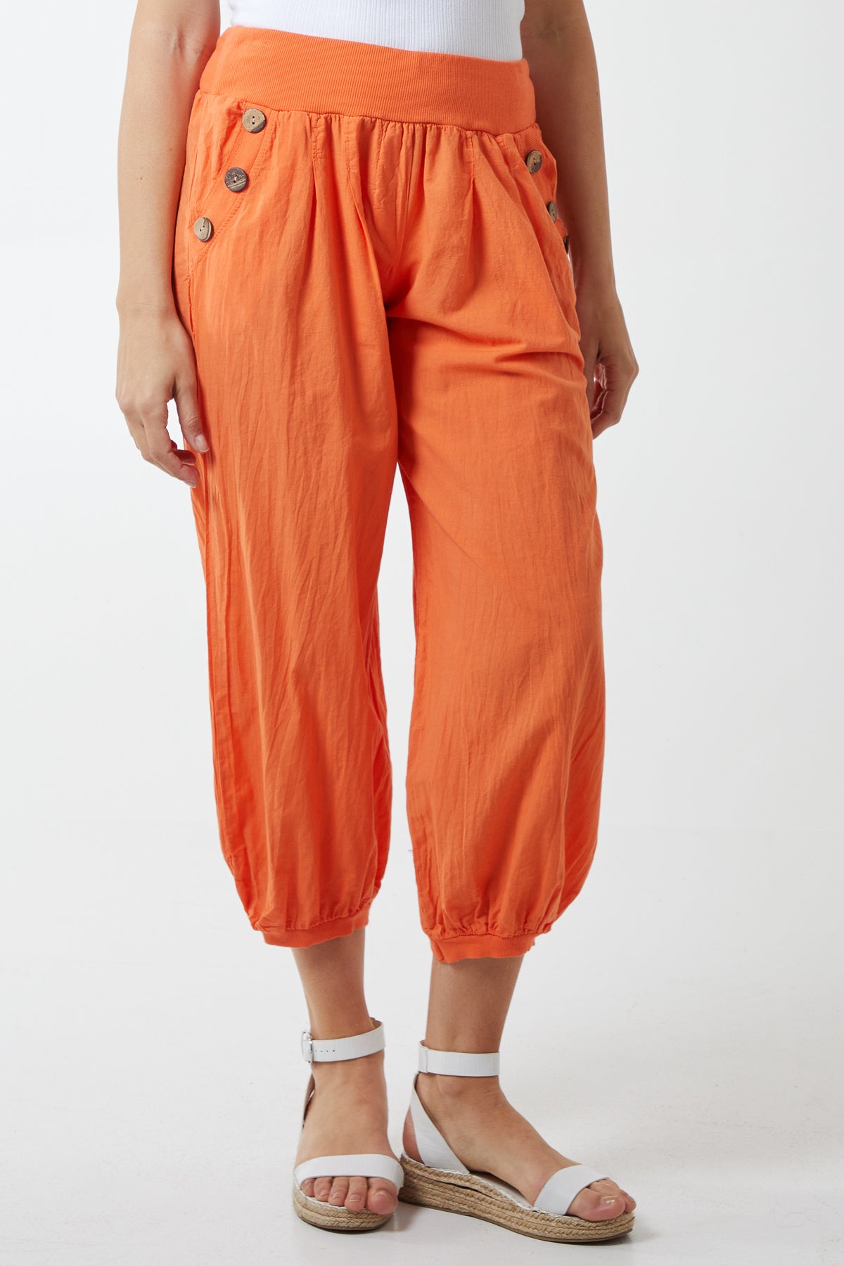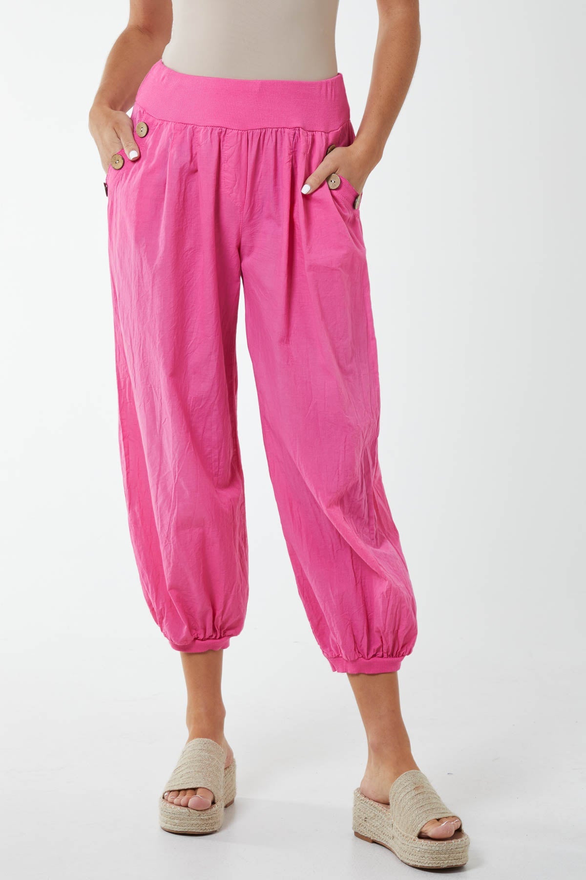 Cargo Pockets Pants Women High Waist Cropped Slim Fit Trouser