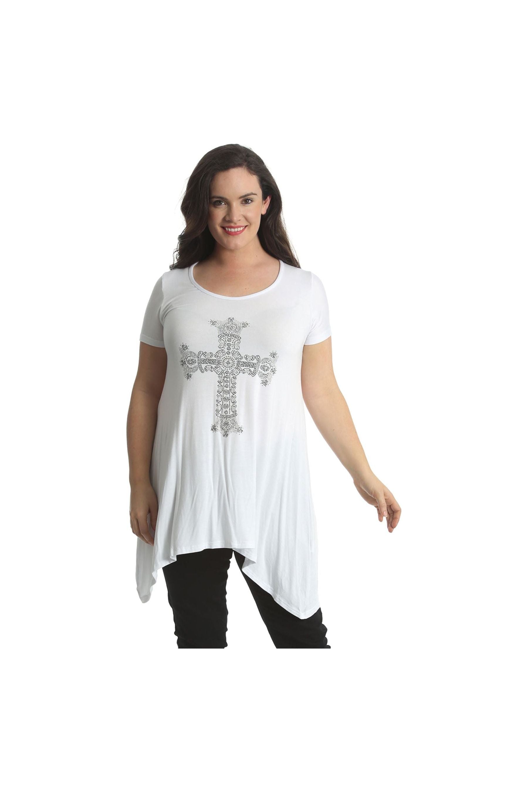 Crown Cross Stud Hanky Hem Short Sleeve Top