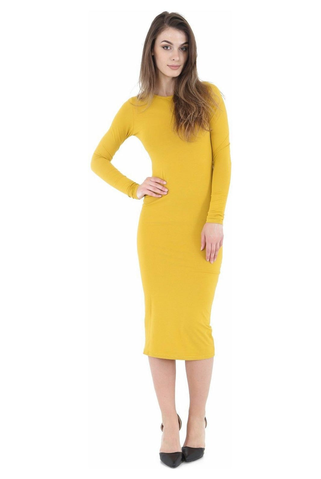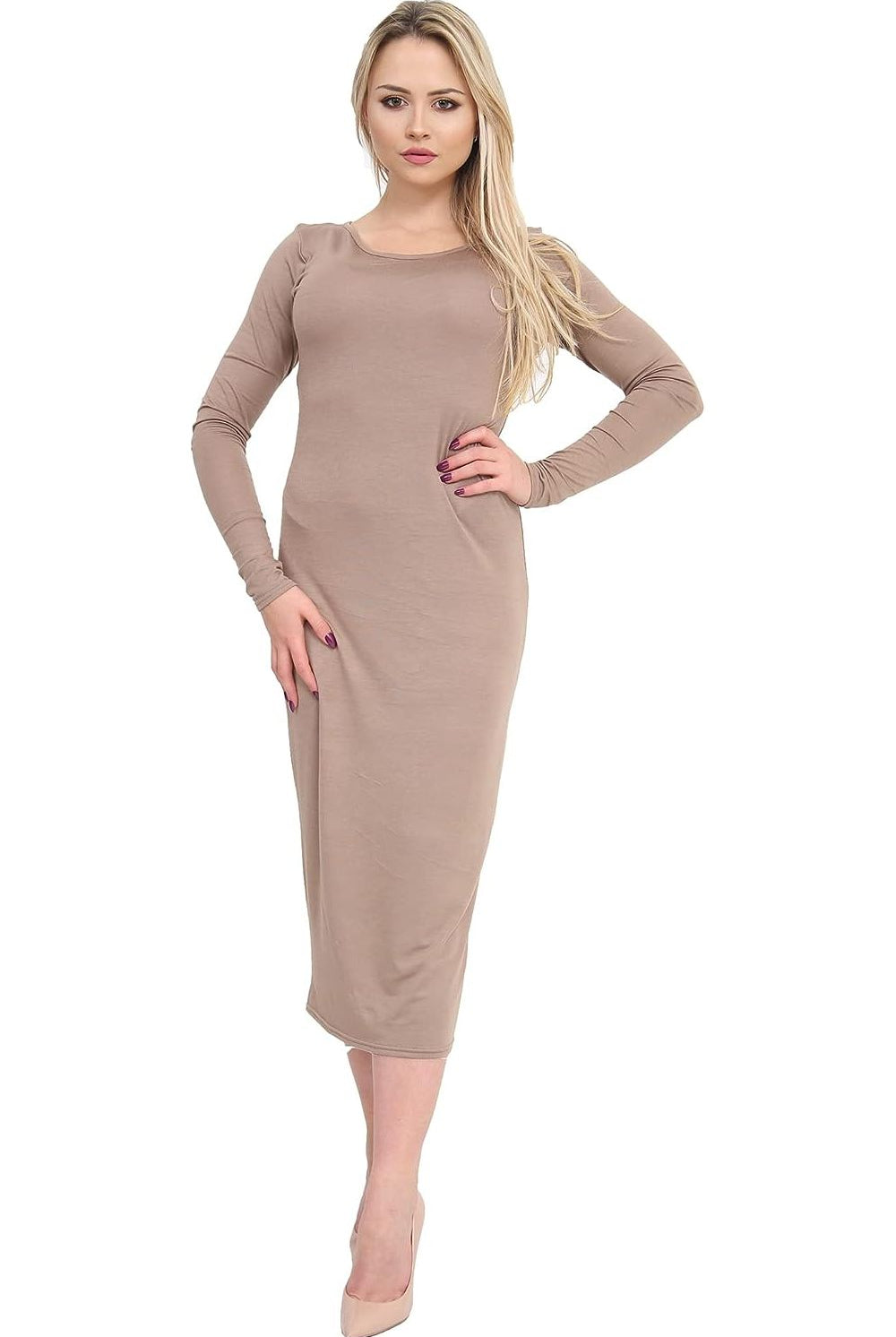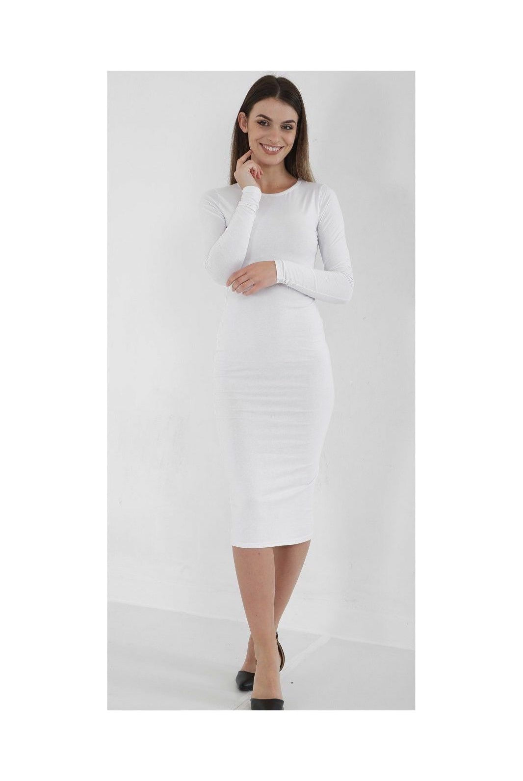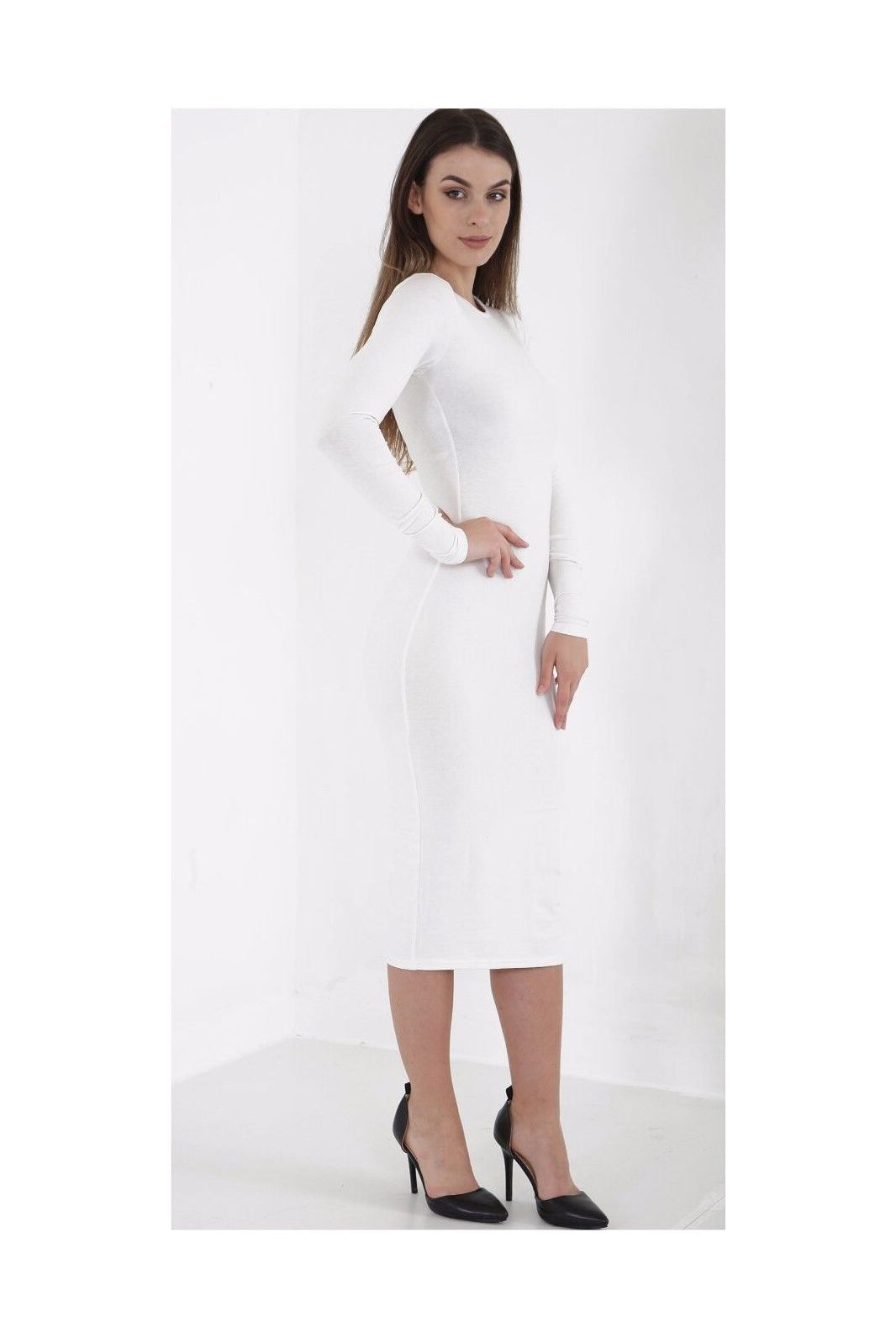 Bodycon Stretch Plain Midi Dress