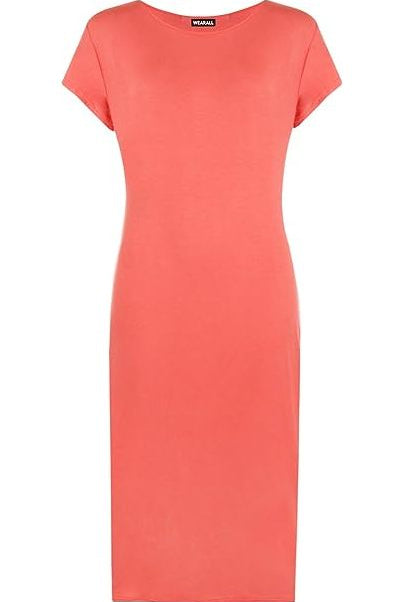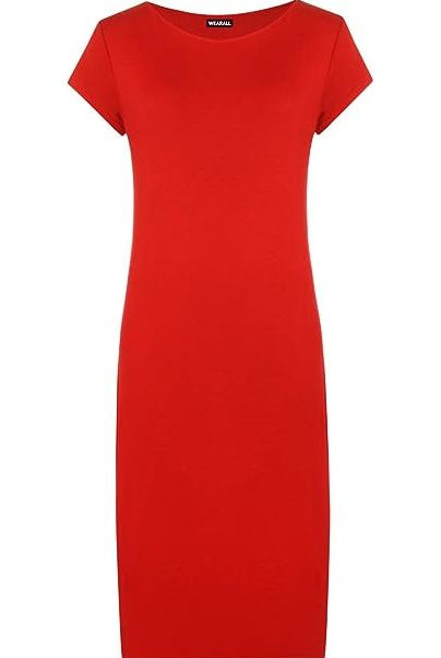 Plain Short Sleeve Jersey Midi Dress