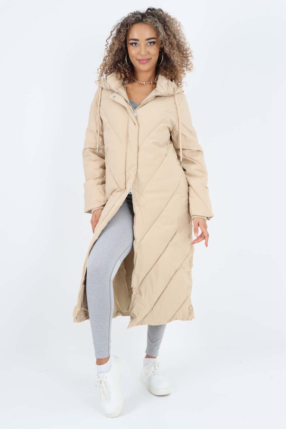 Italian Quilted Hooded Long Jacket Coat