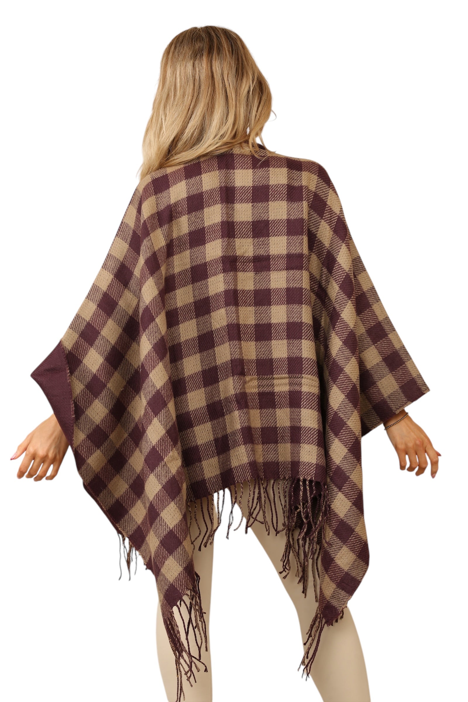Chic Fringed Tassel Detailing: Elevate your style with this cardigan's fashionable fringe tassels at the bottom. These stylish details add movement and texture to the simple, clean lines of the design, making it the perfect accessory to complement any outfit. Whether you're wearing it as a poncho, shawl, or cardigan, the fringes create an eye-catching, trendy look that adds a bohemian touch to your style.