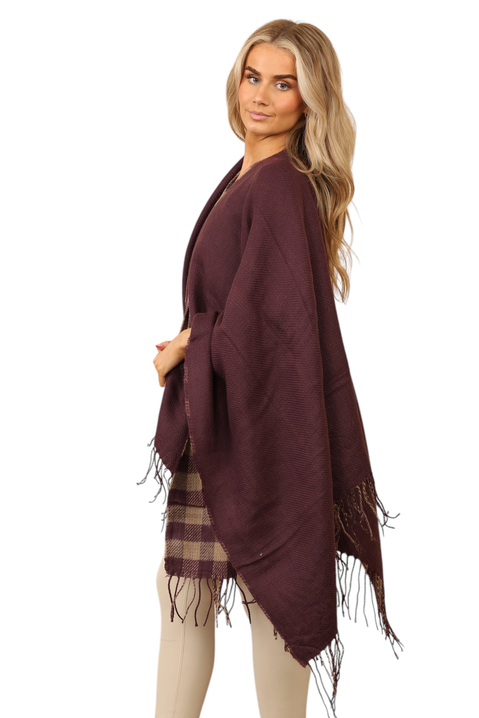 Reversible Plain Check Print Oversized Shawl