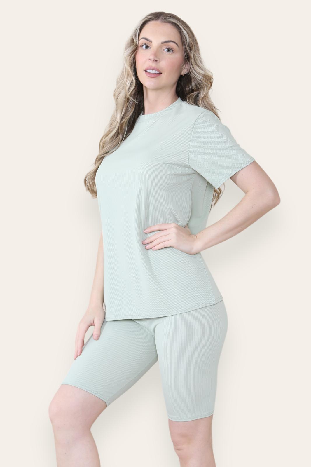 - Embrace the perfect blend of fashion and functionality with the elastic waist shorts that offer a secure yet flexible fit, paired with a classic round neck and short sleeves for timeless appeal.
