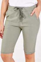Made In Italy Plain Magic Chino Shorts with Tie string adjustable waist. Featuring roll up hem and 2 side pockets for that extra comfort.