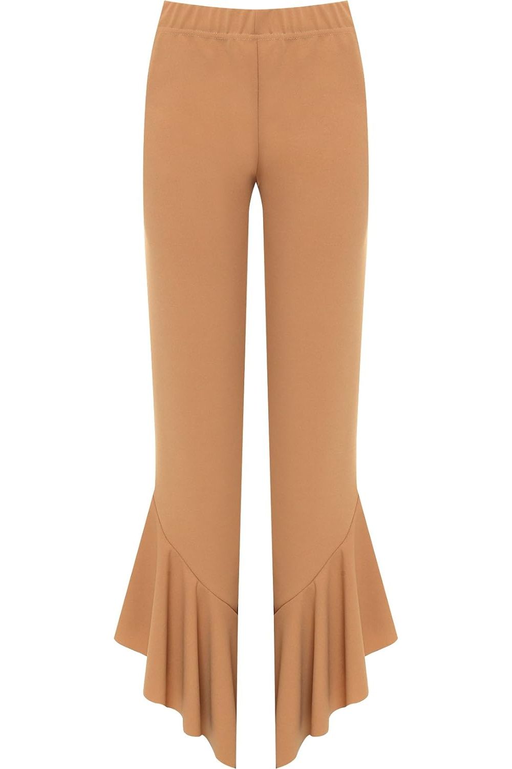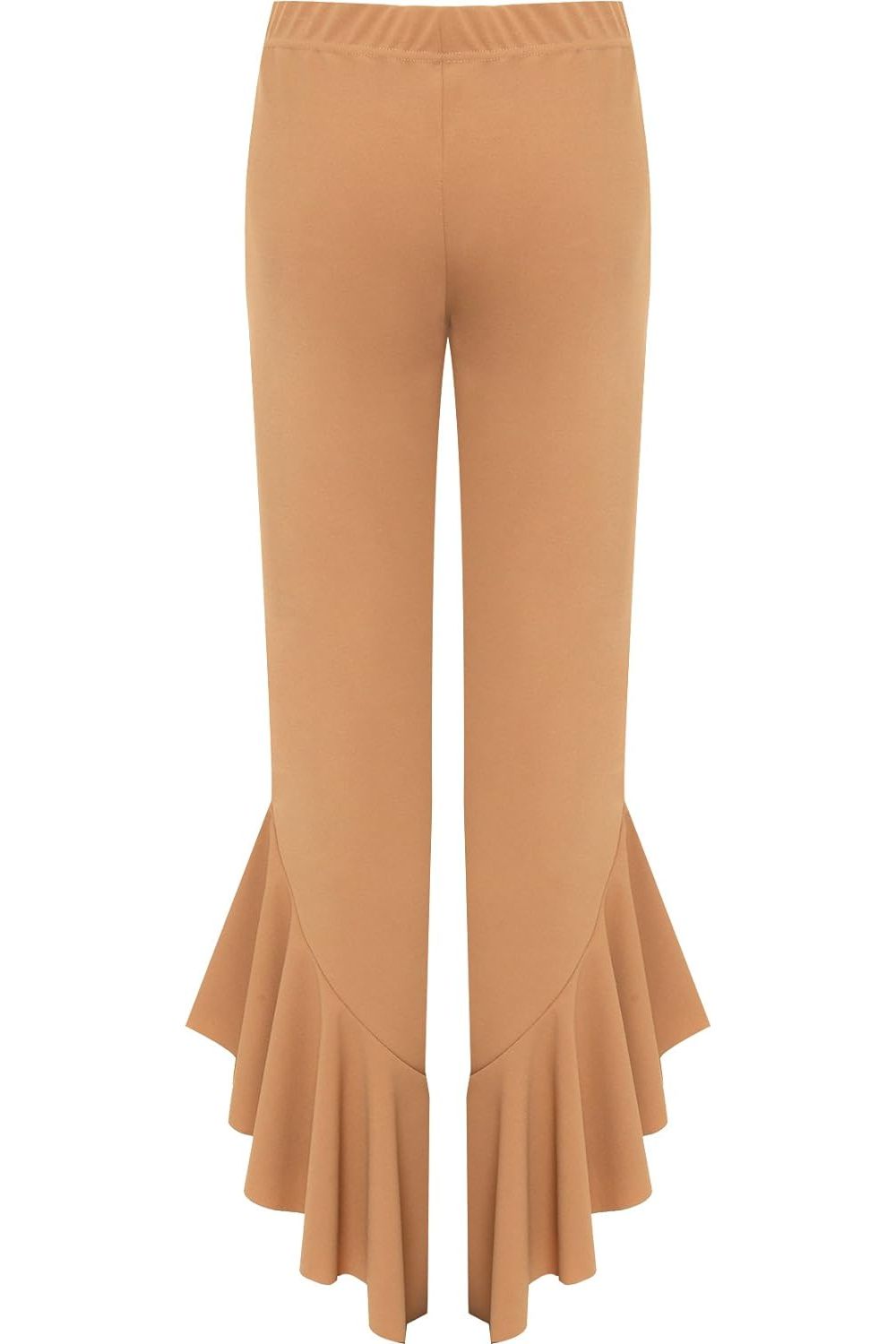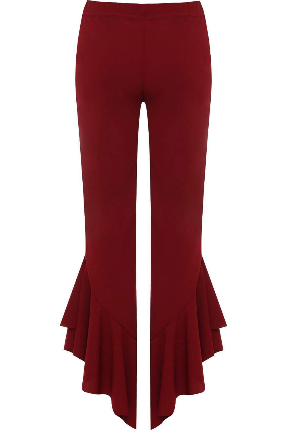 These trousers also feature wide flared frill hems at the ankles, enhancing their fashionable appeal. With a range of bang-on-trend colors available, you can choose your favorite and flaunt your style effortlessly.