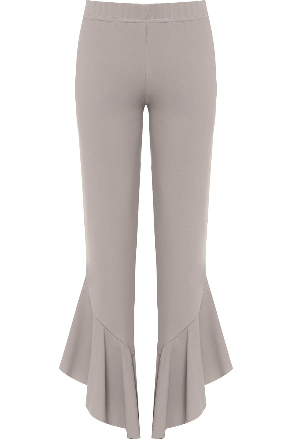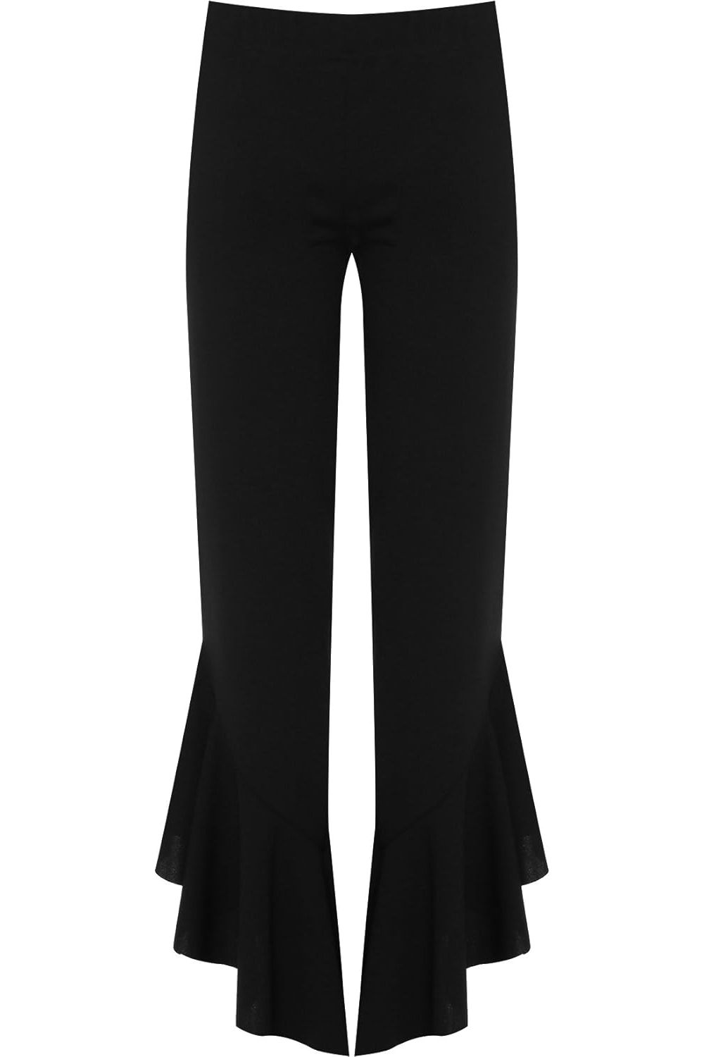 Wide Flared Frill Hem Ankles: These trousers feature wide flared frill hems at the ankles, enhancing their fashionable look.