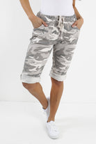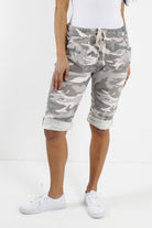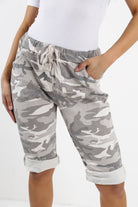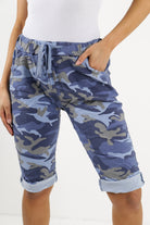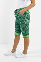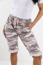 Made In Italy Camouflage Magic Chino Shorts with Tie string adjustable waist. Featuring roll up hem and 2 side pockets for that extra comfort.