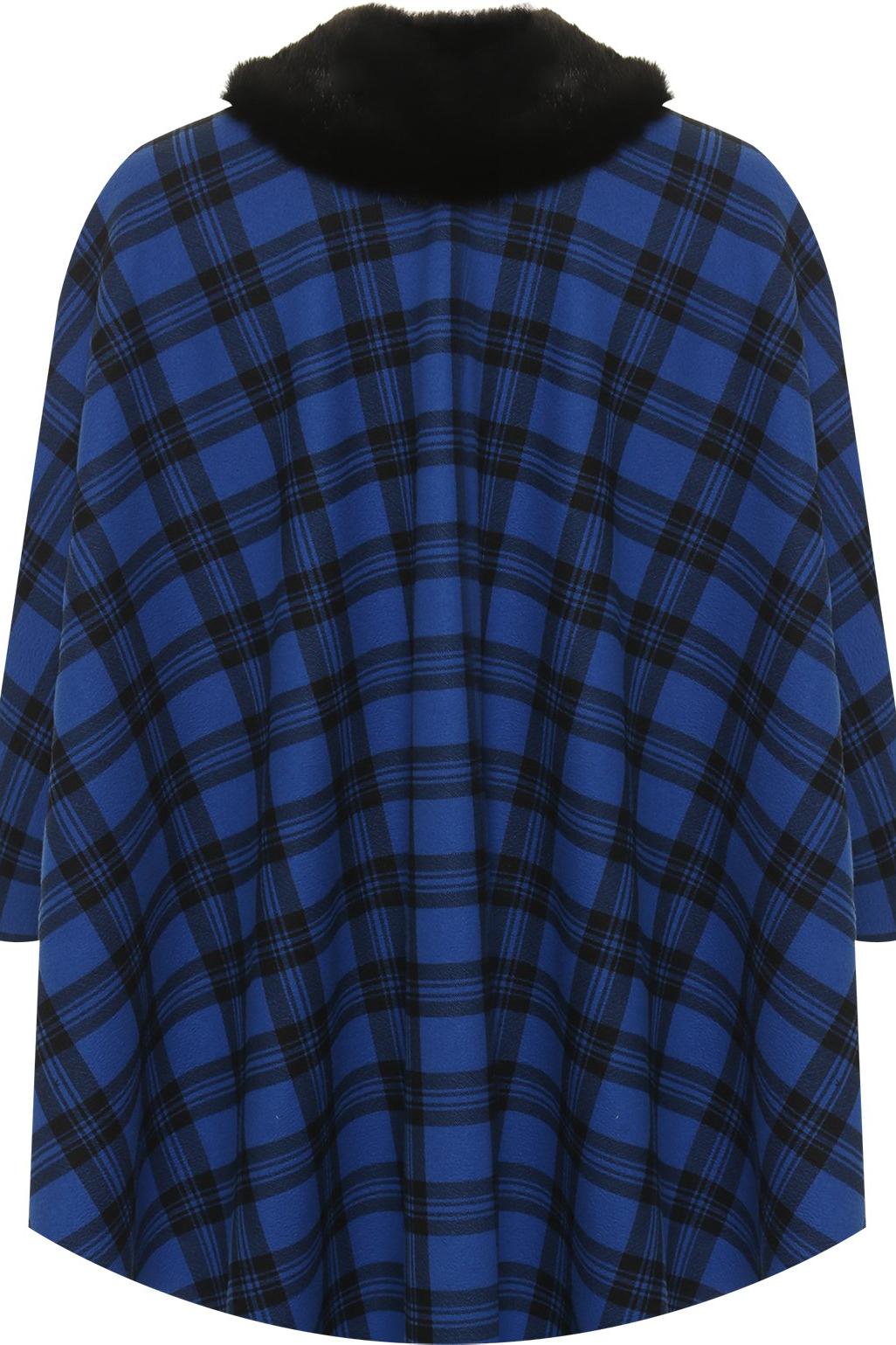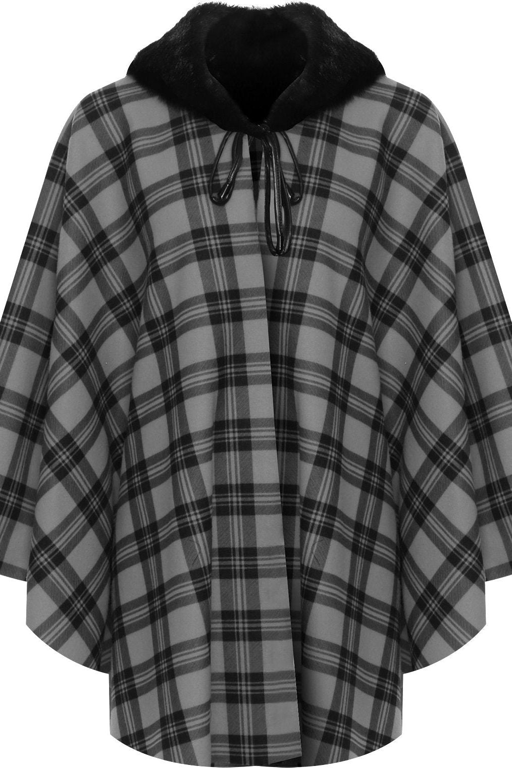 5. Soft Knitted Fabric: Crafted from a soft knitted fabric, this cape provides warmth and comfort while keeping you in vogue with its faux fur collar and tartan check print.